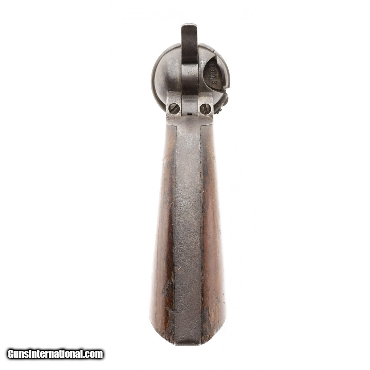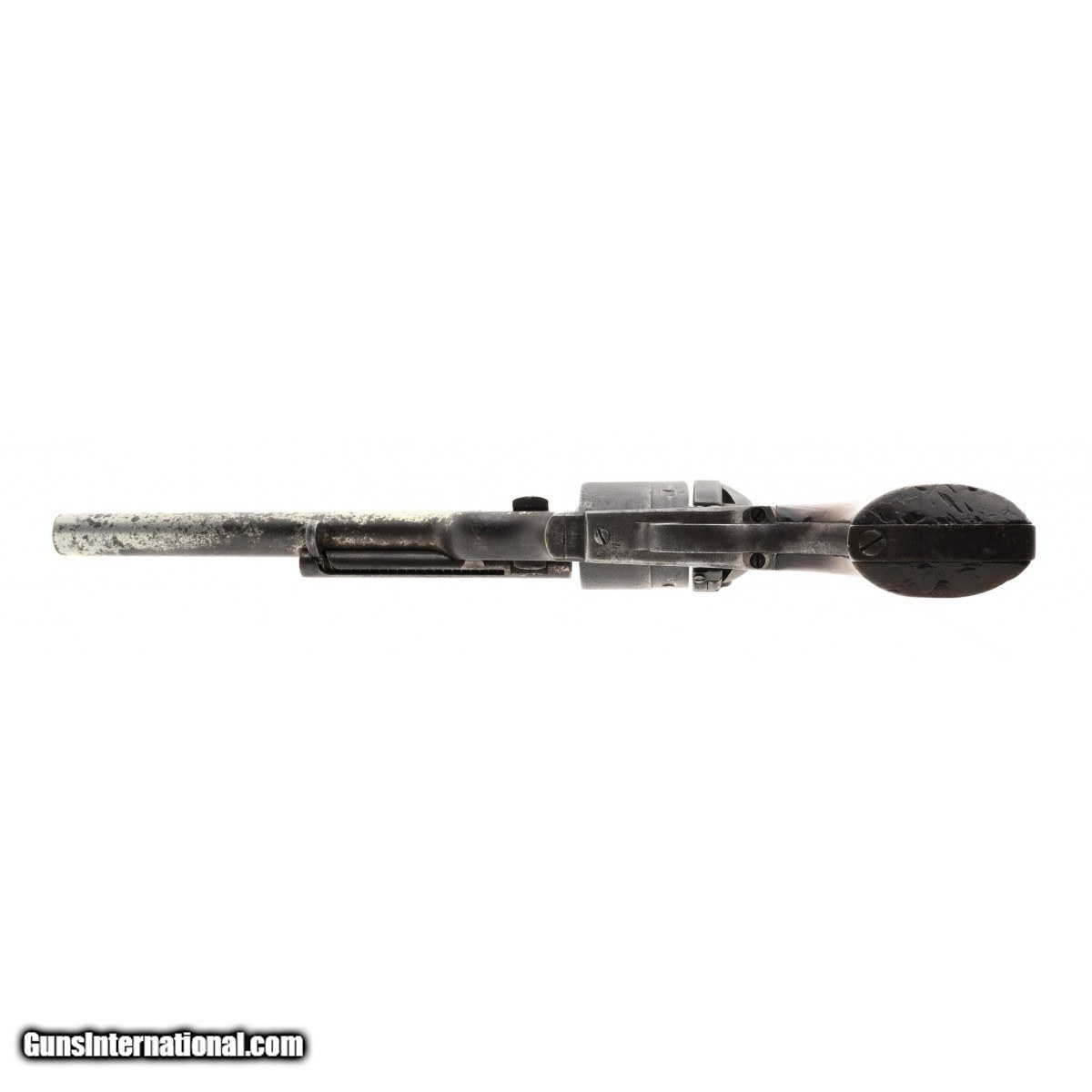 Description: " Serial number 7271. 44 Colt caliber with a 8" barrel. Made circa 1877-1878. Scarce model with only 2100 of these guns made. This gun has roughly 50% of the original nickel finish on the barrel. The frame, cylinder, trigger guard and back strap are a smooth dark brown patina. Cylinder has visible cylinder scene. Grips are very good. All numbers are matching. Action works well. Very nice example of a scarce Colt conversion! SOLD Antique: Yes |