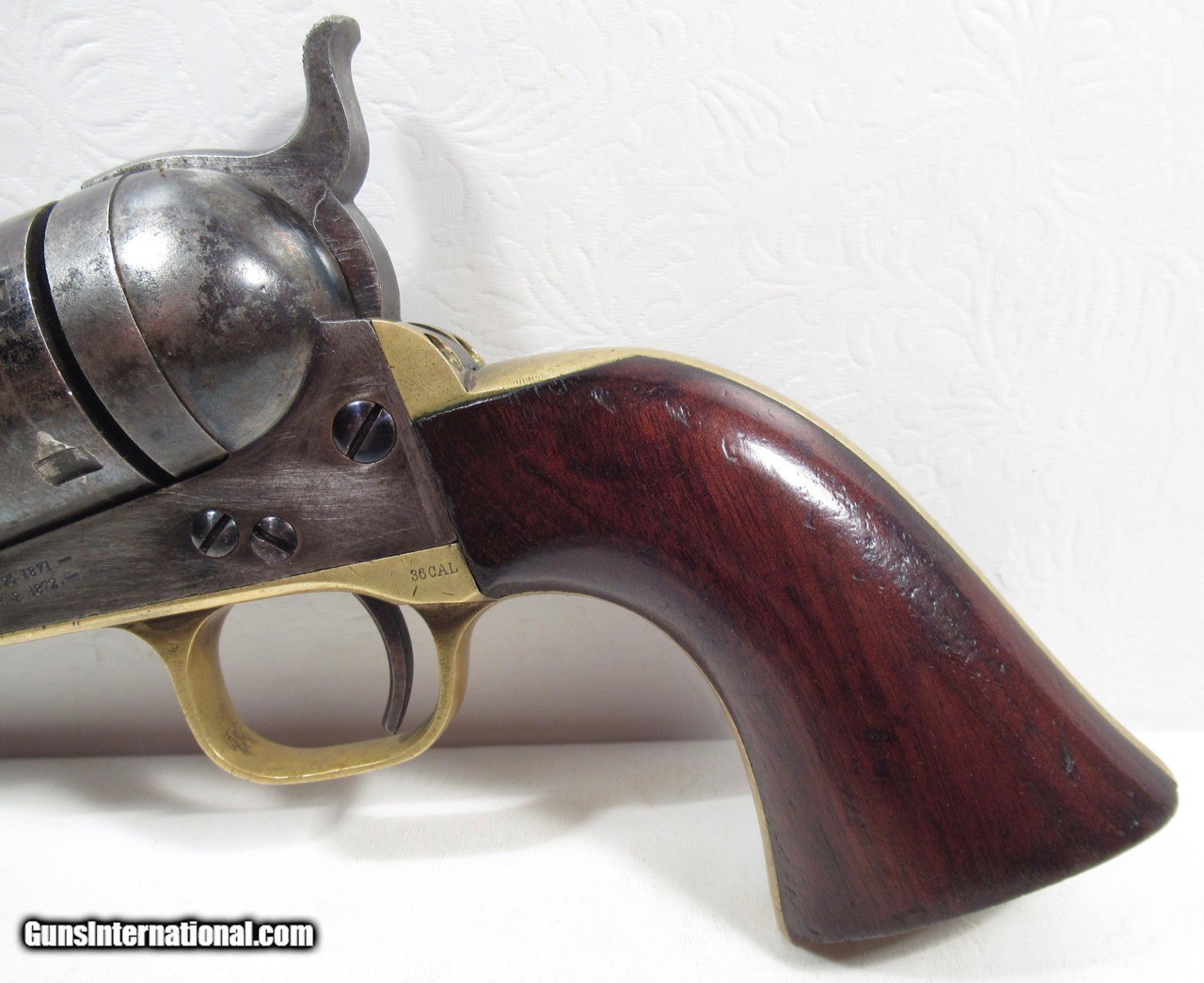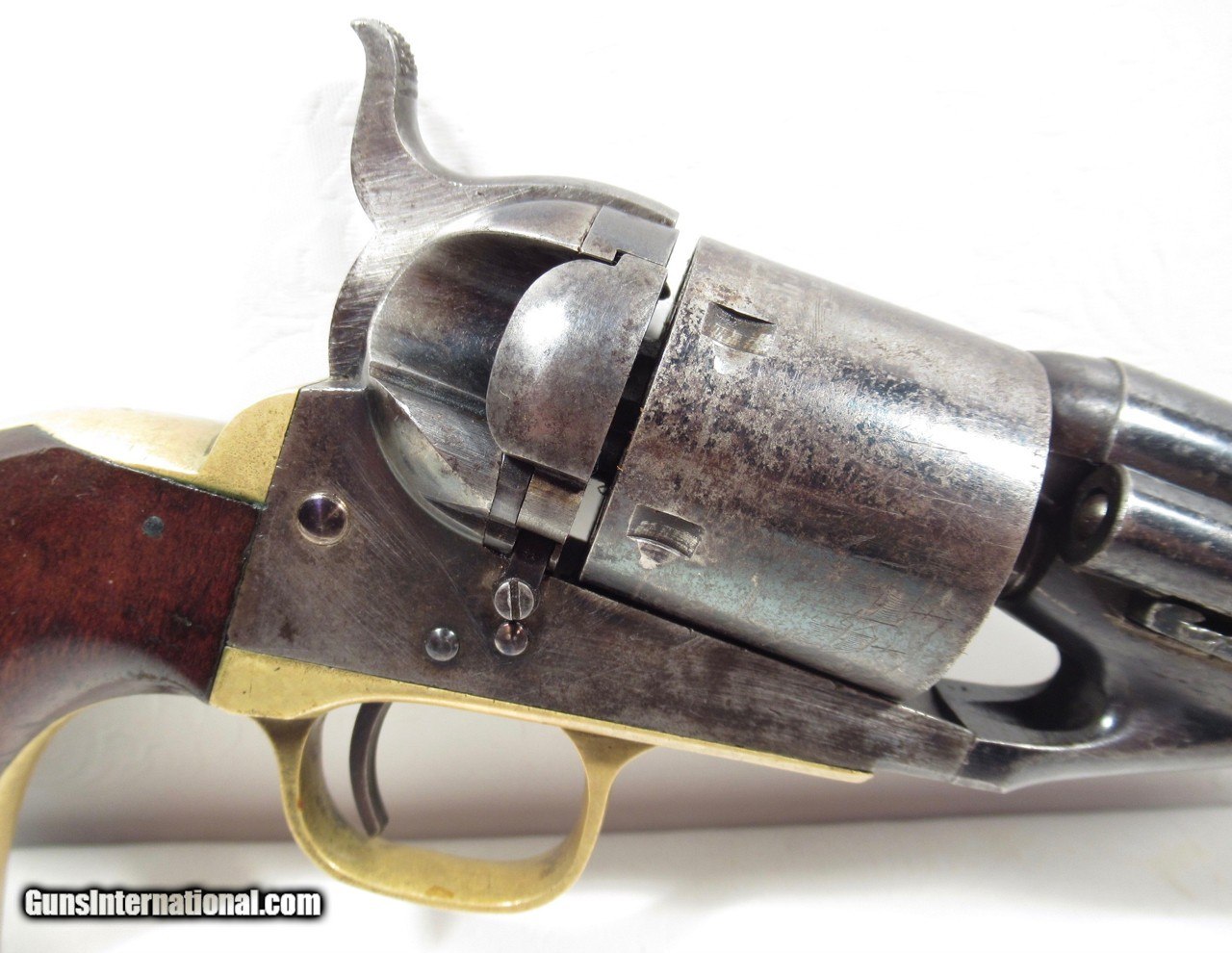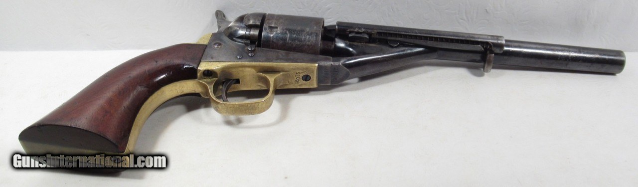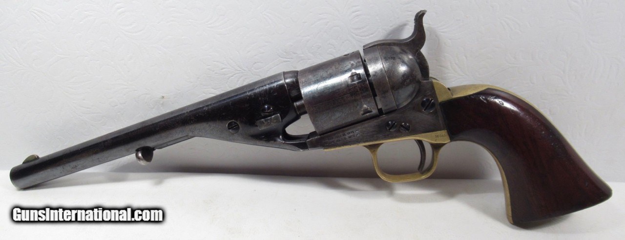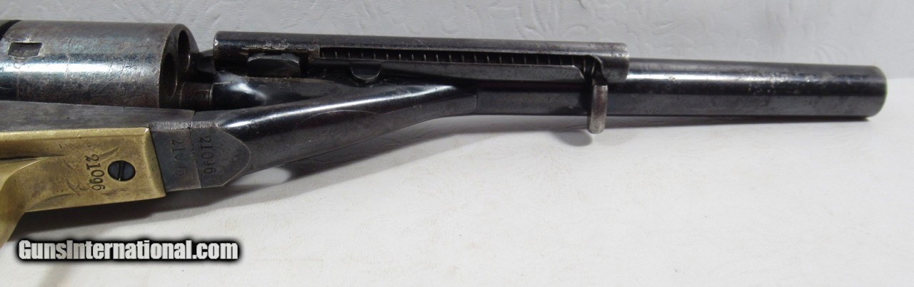 Description: Colt 1861 Navy Conversion; Serial No. 21096; Caliber .38 C.F.; From the Dow & Russelle Heard Collection; 100% Correct and Original with Matching Numbered Wedge; Lots of Original Metal Finish and Varnish Present; Perfect Action and Excellent Bore with only minor flaws; Comes With Original Tooled Slim-Jim Holster; See All Photos for Condition; No Texts; Call (254)541-5765 or Email Only; PERSONAL PROPERTY of Harold Wieser; NOTICE: We Do Not Do Any Consignments - All Items Listed are Owned by Us - NO SALES to New Jersey or New York City - Antiques Only to Massachusetts and California; NOTE: All Modern Firearms Must Go to FFL Dealer who will Accept From Individual with Texas Driver License; Price: $7,000 Shipped; Payment Address: Harold Wieser - 1466 U.S. Hwy 77 - Rosebud, TX 76570; SEND PAYMENTS VIA USPS PRIORITY MAIL; BEWARE of SCAMS!!! - DO NOT SEND MONEY or CORRESPONDENTS ELECTRONICALLY UNLESS YOU HAVE SPOKEN to HAROLD WIESER FIRST! (254)541-5765 SOLD Antique: Yes Manufacturer: Colt Model: 1861 Navy Conversion Serial Number: 21096 |