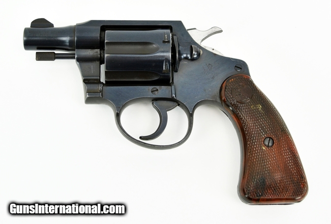 Colt Detective Special .38 Special caliber pistol. Early 2nd issue snubnose made in 1949. Has correct “Colt Wood” plastic grips. Very good condition with some light speckling and about 95% finish.