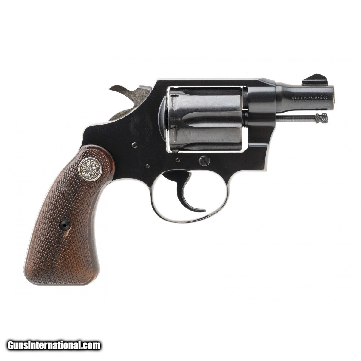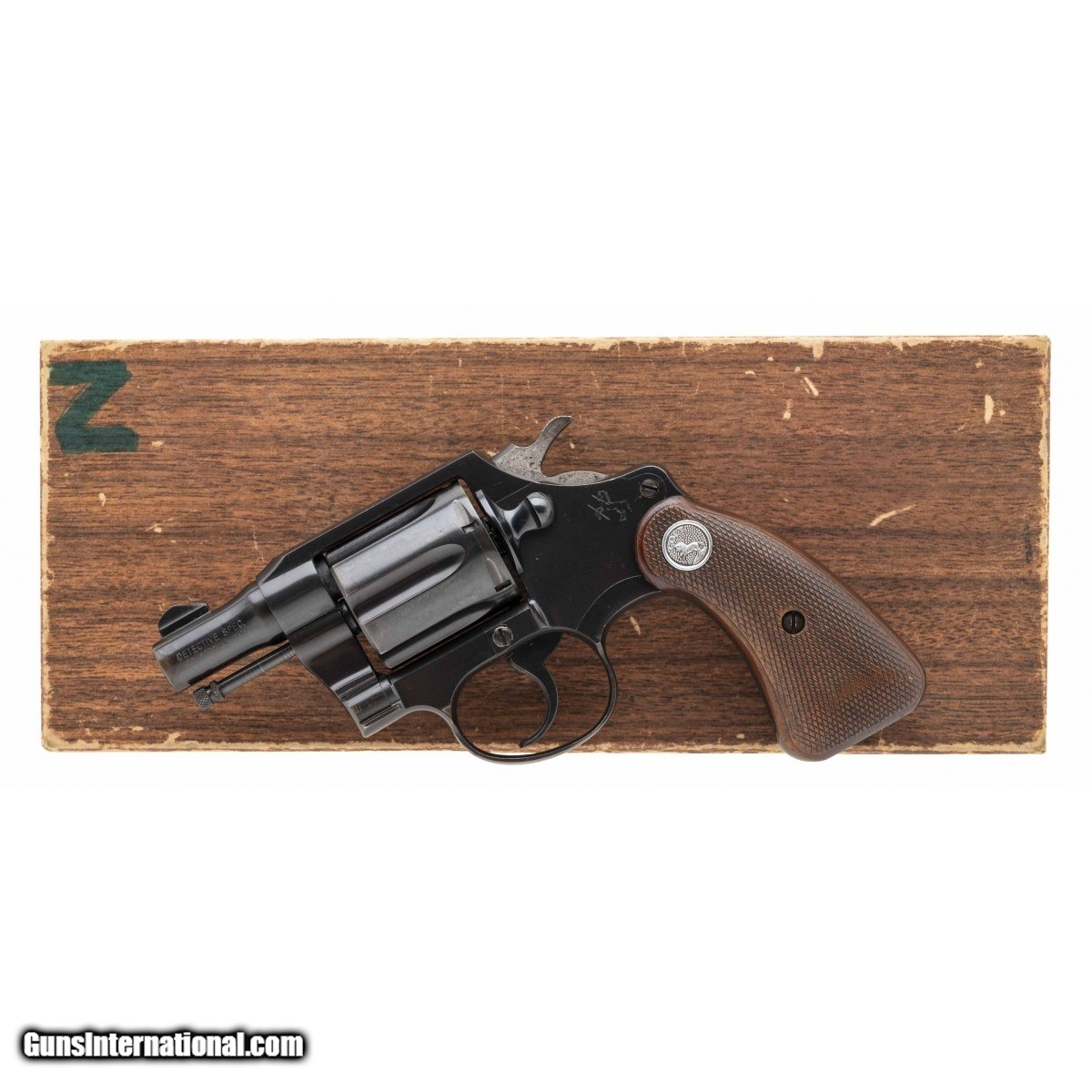 SN: 694112. Made in 1956. .38 Special with a 2"" snub nose barrel. Bore is in very good condition. Colt vintage snub nose double action revolver. Finish is in very good condition with normal muzzle wear. Wood grips are in very good condition with minor handling wear. Overall condition is very good. Comes with box. (Consignment)