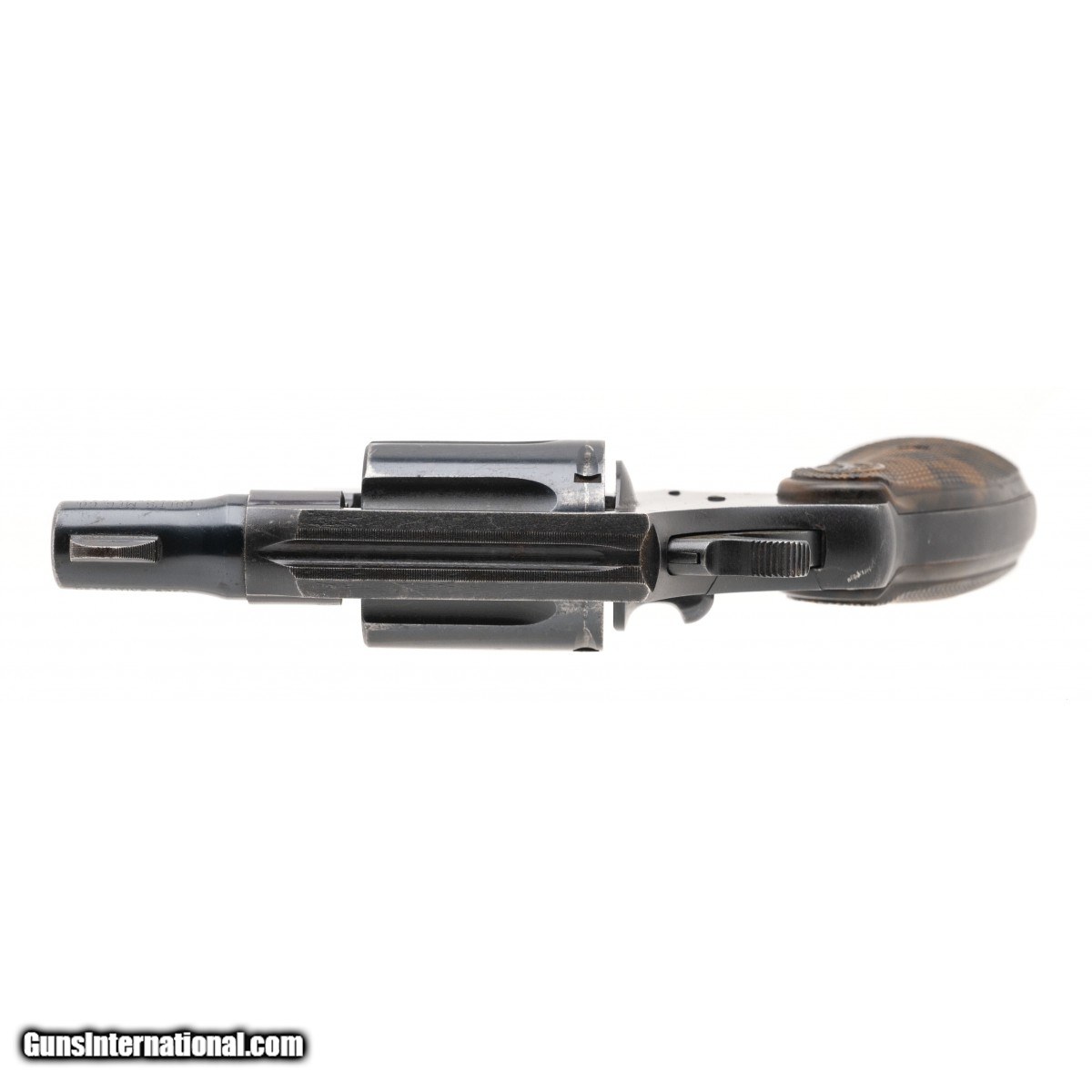 Description: " SN: 582906. Made in 1951, .32 Colt with a 2"" barrel. Bore is very good. Steel frame snubnose revolver, marked .32 Colt but shoots .32 S&W Long. The finish is good, shows carry wear. The grips are correct ""Coltwood"" plastic grips, a bit shrunken and loose. The action locks up tight. Overall good condition. (CONSIGNMENT) SOLD |