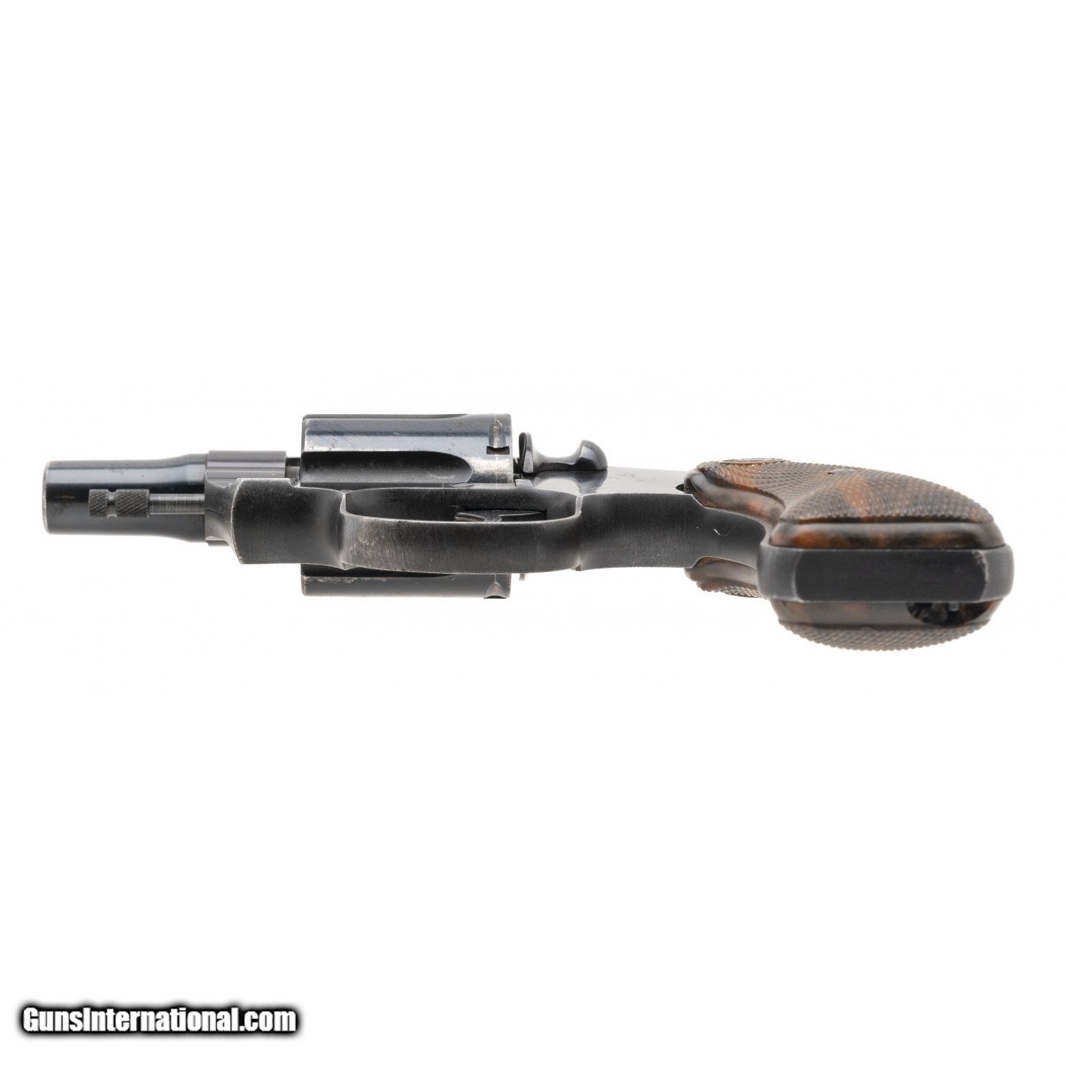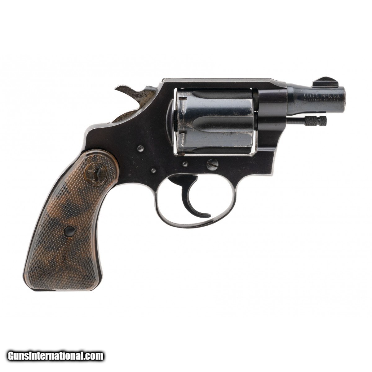 SN: 582906. Made in 1951, .32 Colt with a 2"" barrel. Bore is very good. Steel frame snubnose revolver, marked .32 Colt but shoots .32 S&W Long. The finish is good, shows carry wear. The grips are correct ""Coltwood"" plastic grips, a bit shrunken and loose. The action locks up tight. Overall good condition. (CONSIGNMENT)