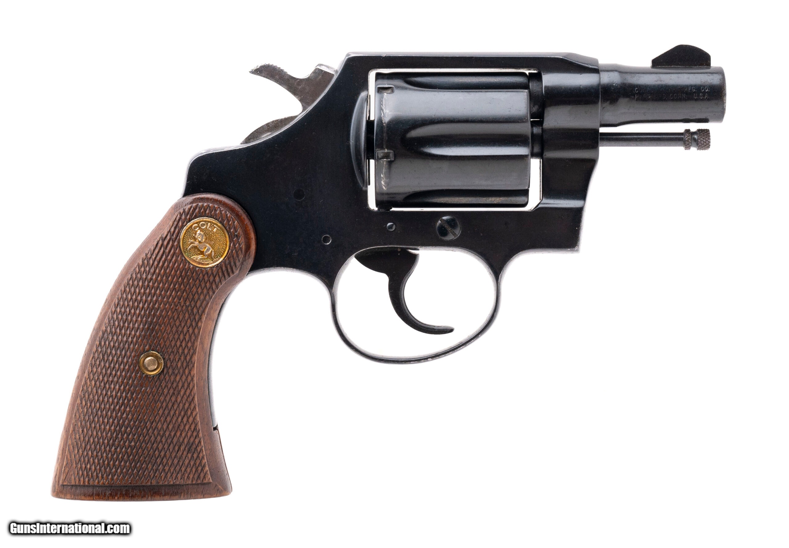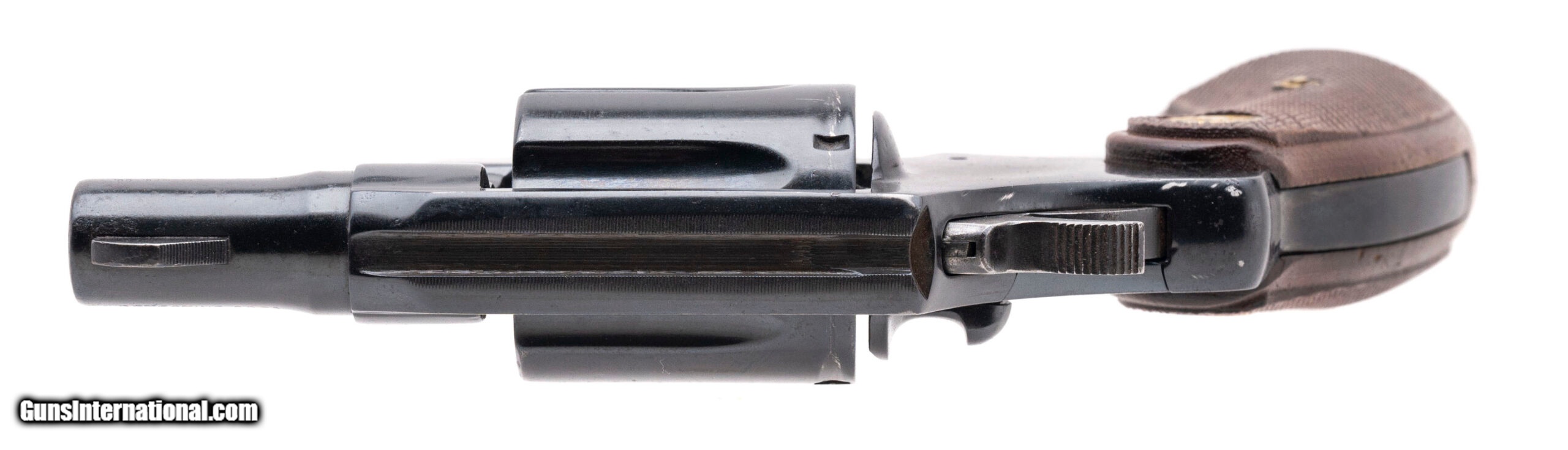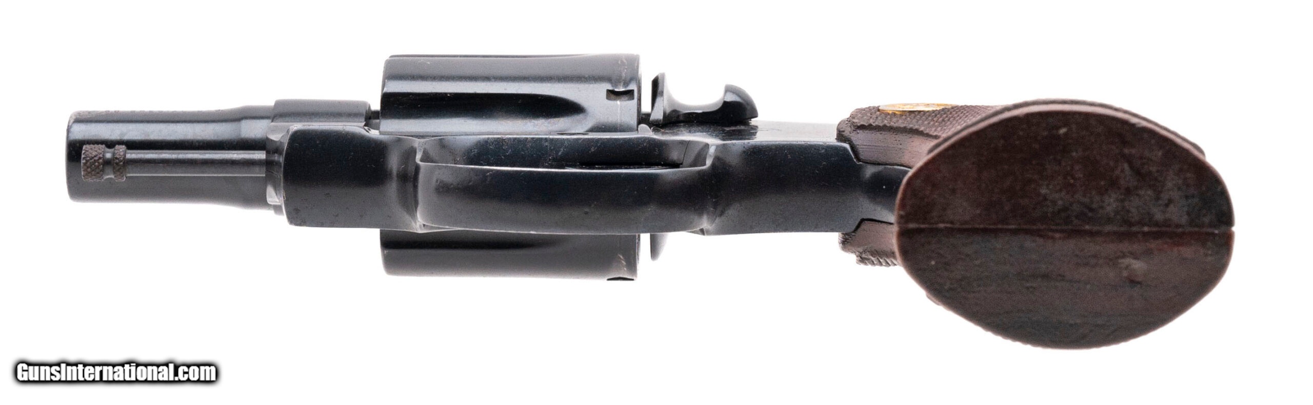 Description: "SN: A47307. Made in 1970, .38 Special with a 2"" barrel. Bore is bright with strong rifling. Snubnose double action revolver. Metal has been reblued and has pitting remaining. Checkered wood grips are very good. Overall condition is fair. SOLD |