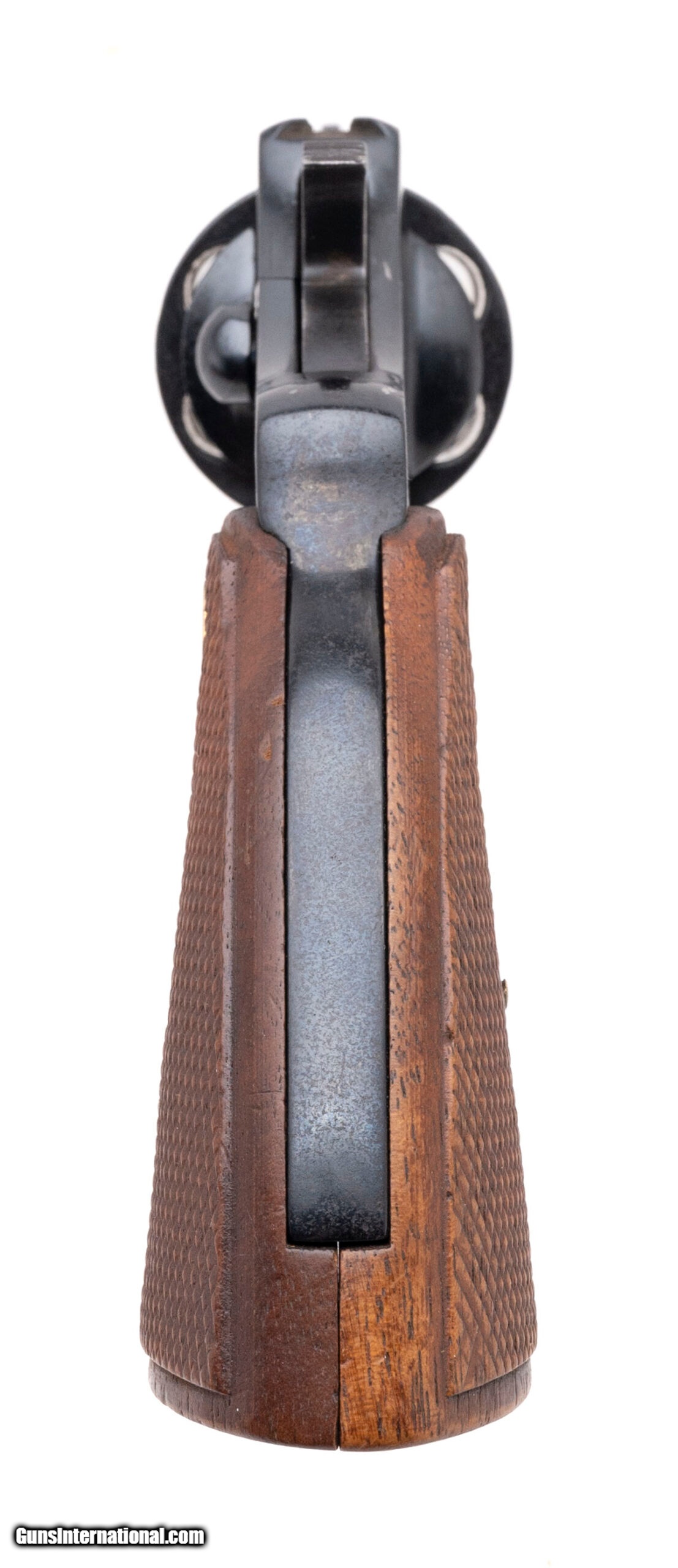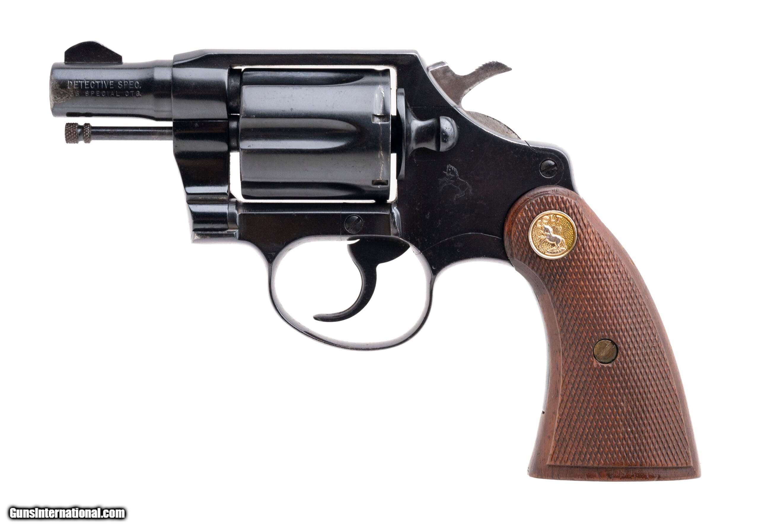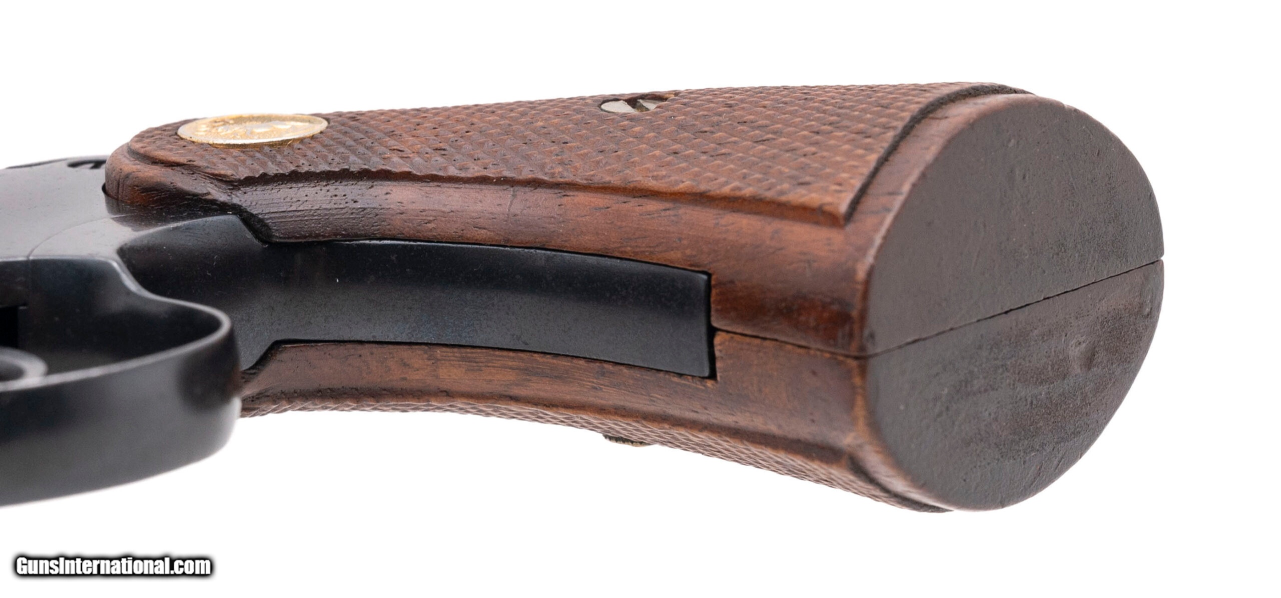 Description: "SN: A47307. Made in 1970, .38 Special with a 2"" barrel. Bore is bright with strong rifling. Snubnose double action revolver. Metal has been reblued and has pitting remaining. Checkered wood grips are very good. Overall condition is fair. SOLD |