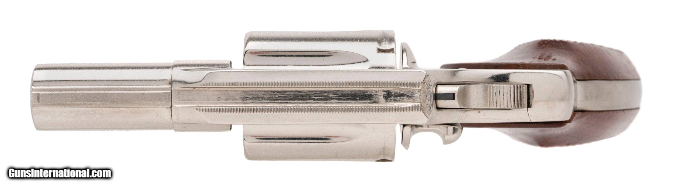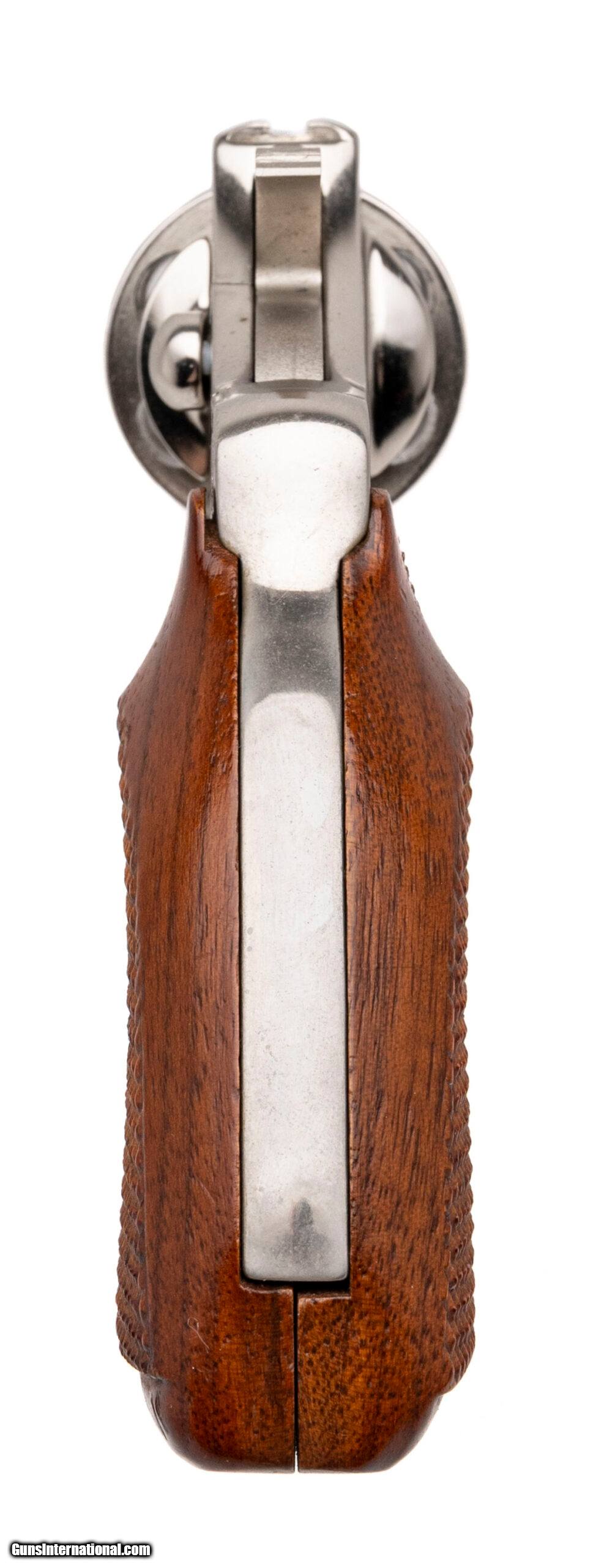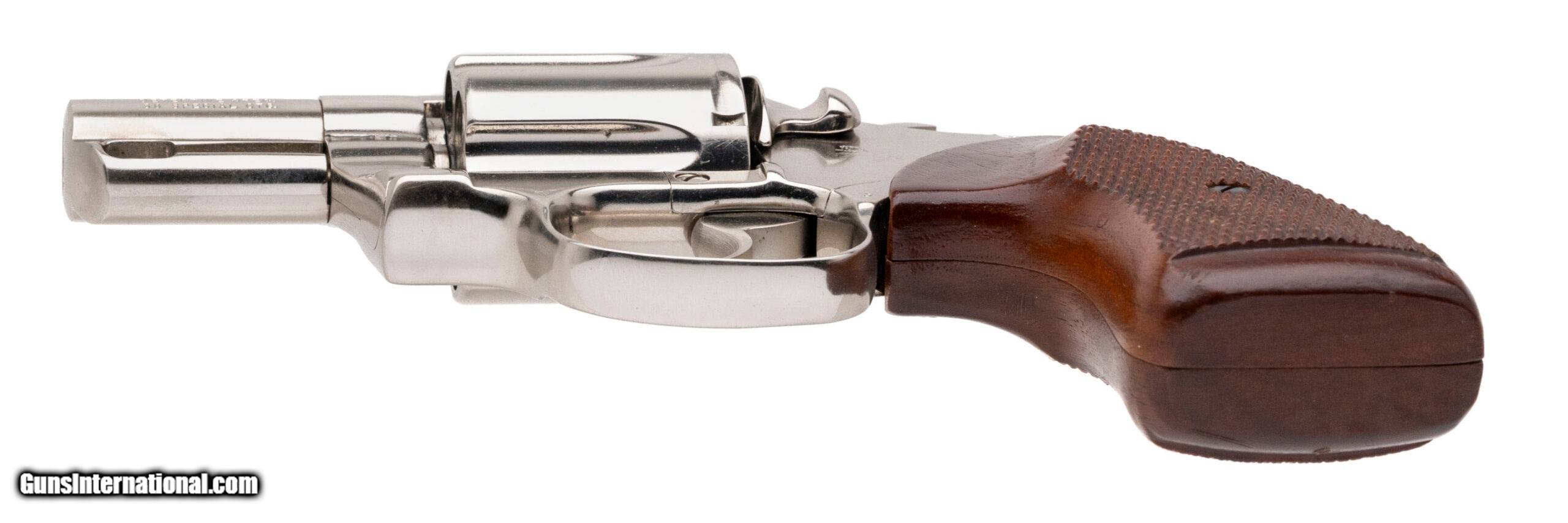 Description: "SN: P39458 made in 1982. 38 special double action snub nose 6 shot revolver with a 2" barrel, trench sights, nickel finish and checkered walnut grips in very good overall condition. Price: $995.00 Contact Seller |