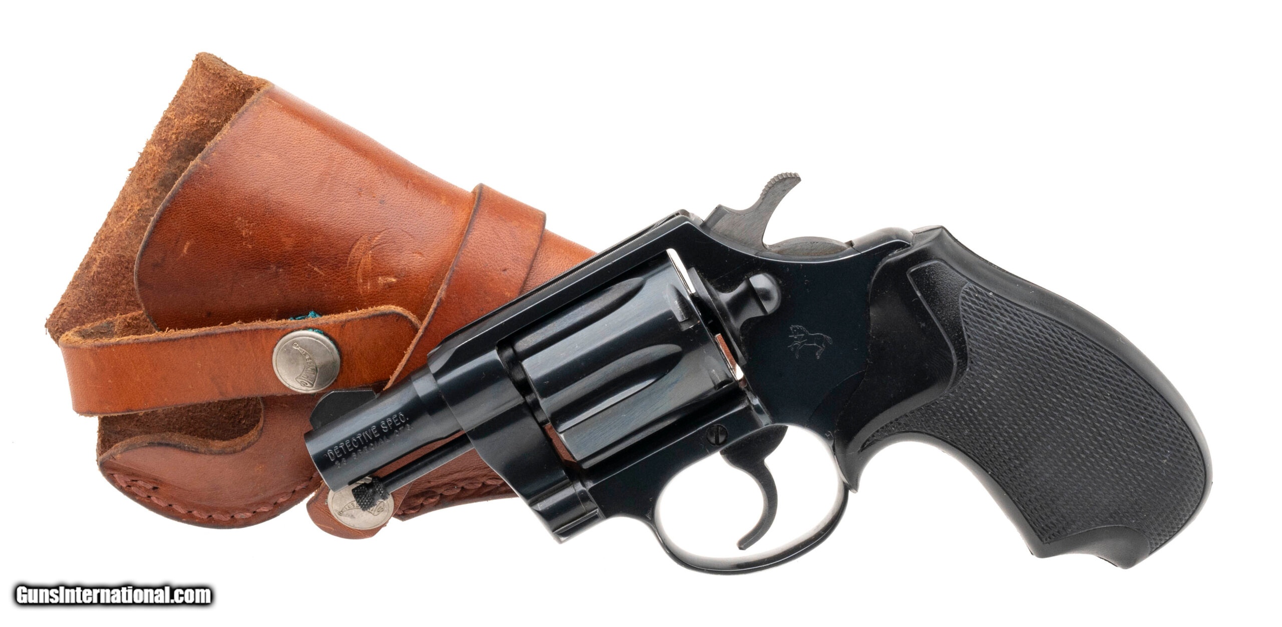 Description: "SN: B32962. Snub-nose revolver made by Colt in 1971. 2"" barrel chambered for .38 Special. Great overall condition with small handling marks in the dark blue finish. Bore is excellent. Replacement Pachmayr Presentation/Compac grip. Comes with holster. SOLD |