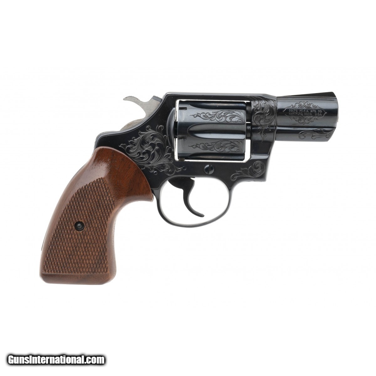 SN: P28630. Made in 1981. 38 Special with a 2"" barrel. Snubnose revolver factory engraved by the late Master Engraver Ken Hurst and signed ""K. Hurst"" on the grip frame. Excellent condition.