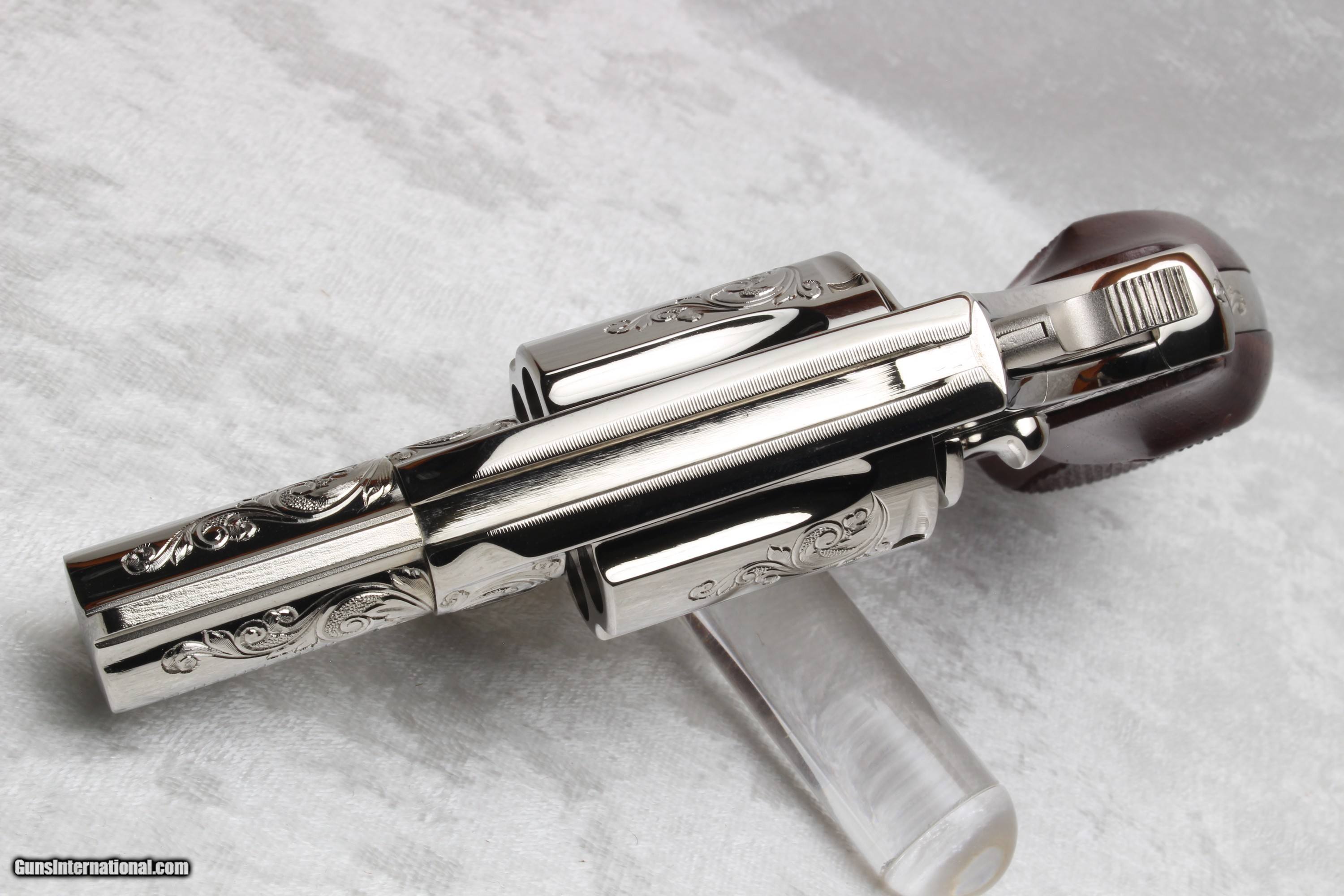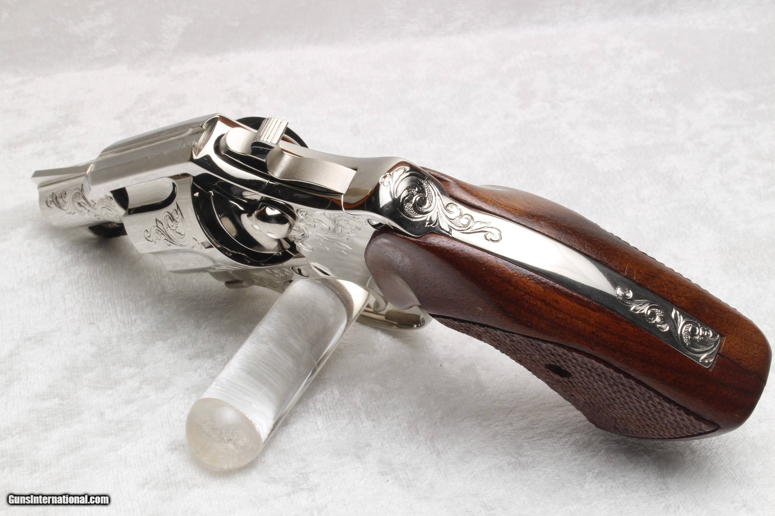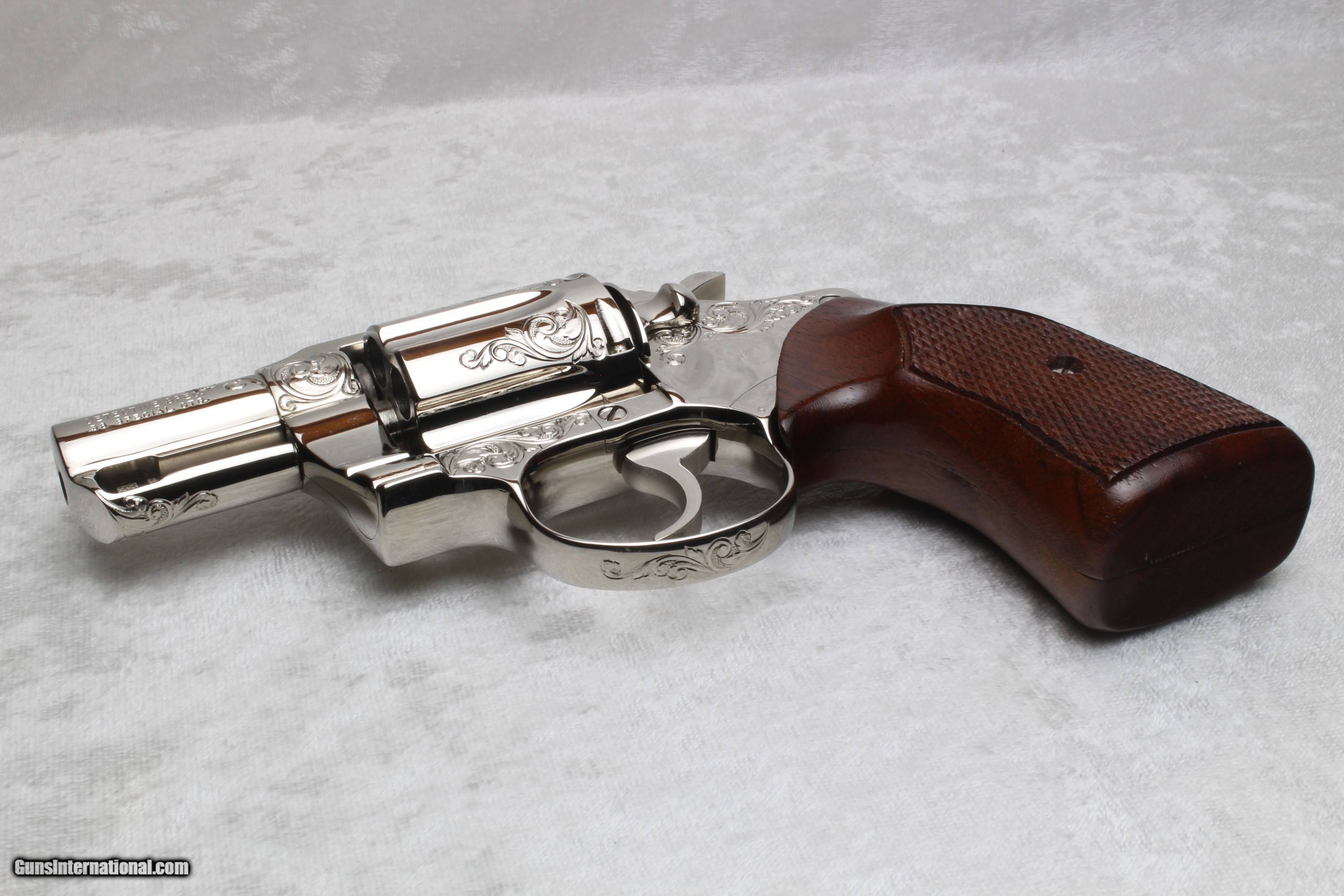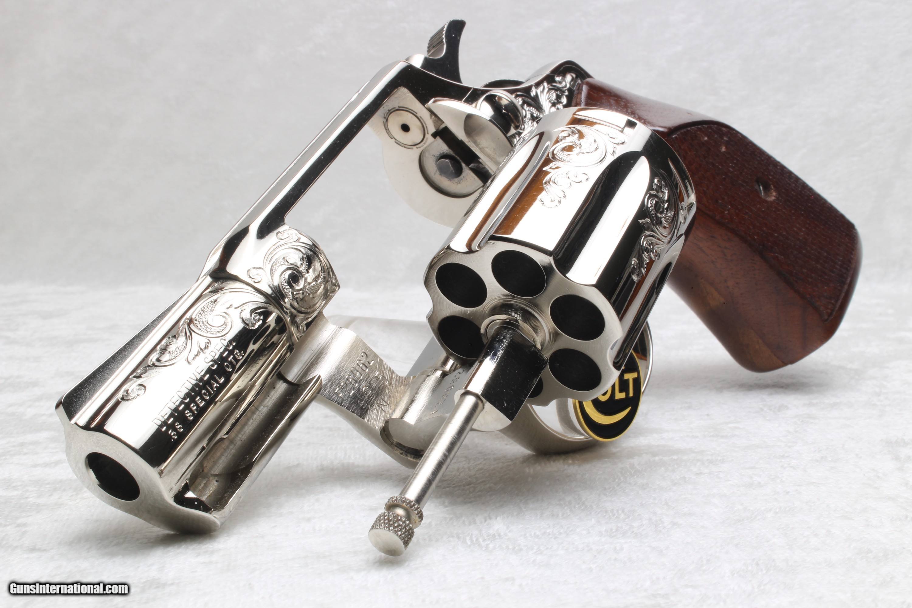 Description: Extremely Rare Factory Engraved 2" Colt Detective Special chambered in .38 Special with serial number matching original box dating production to 1974. This revolver remains in "as new" unfired condition with no detractions. The stunning original nickel finish still retains a deep shine over the entire frame. Overall the condition rates 99+%. The cylinder face, recoil shield, and forcing cone appear as new with no discernable turn line on the cylinder itself. The action is crisp with tight lock up, and the bore is clean with strong lands/grooves. The factory walnut grips are excellent. The box itself is in fair condition with tape repair. A Colt Archive letter, along with all the original paperwork is included. A seldom encountered, complete and original factory engraved Colt collector package that would be difficult to improve on at any price. Free Shipping FFL to FFL. Note: These are only being offered for a limited time (10/6). SOLD Handgun Caliber: .38 Special Manufacturer: Colt Model: Detective Special Condition: NIB Item Location: Arizona |