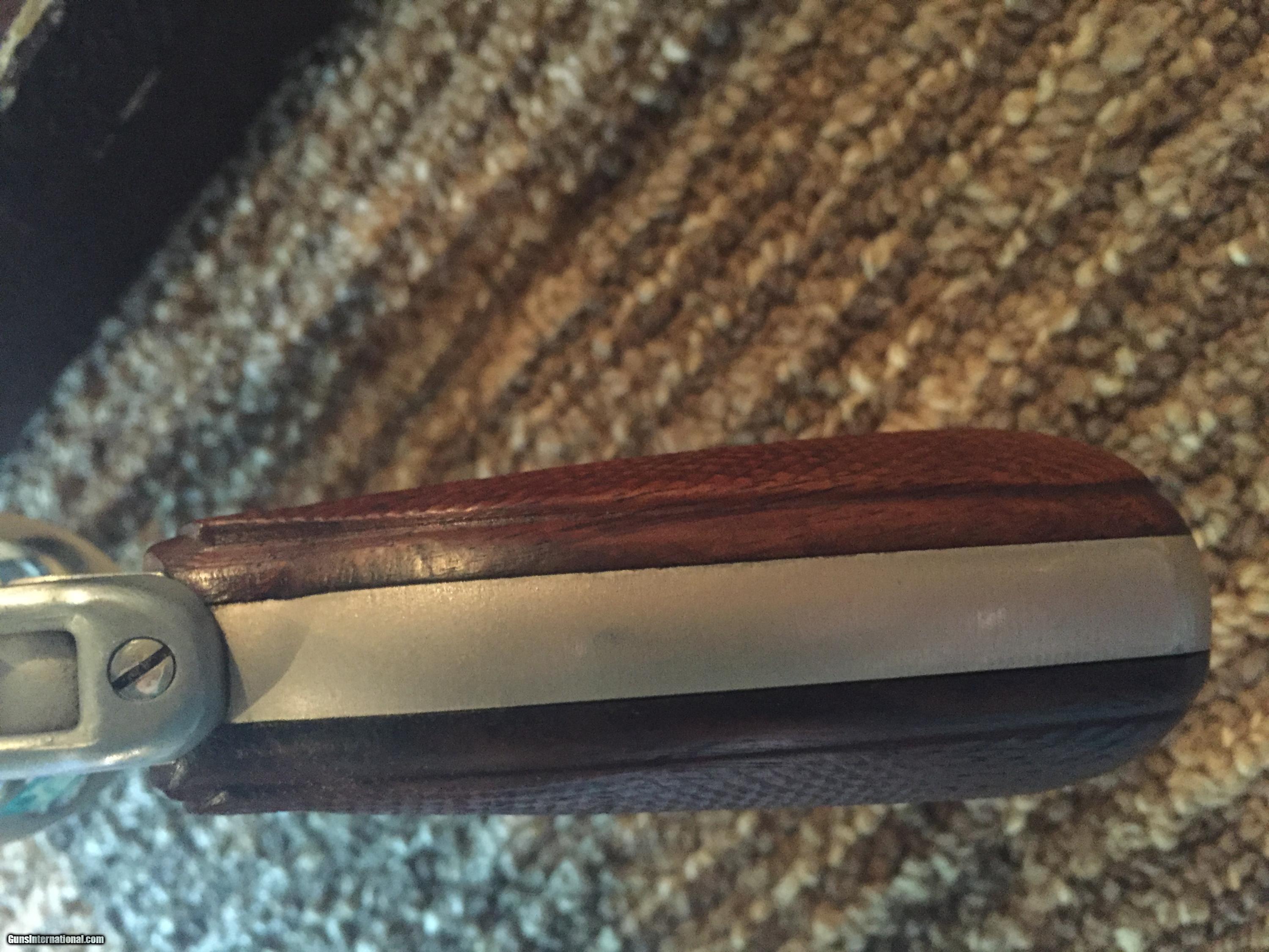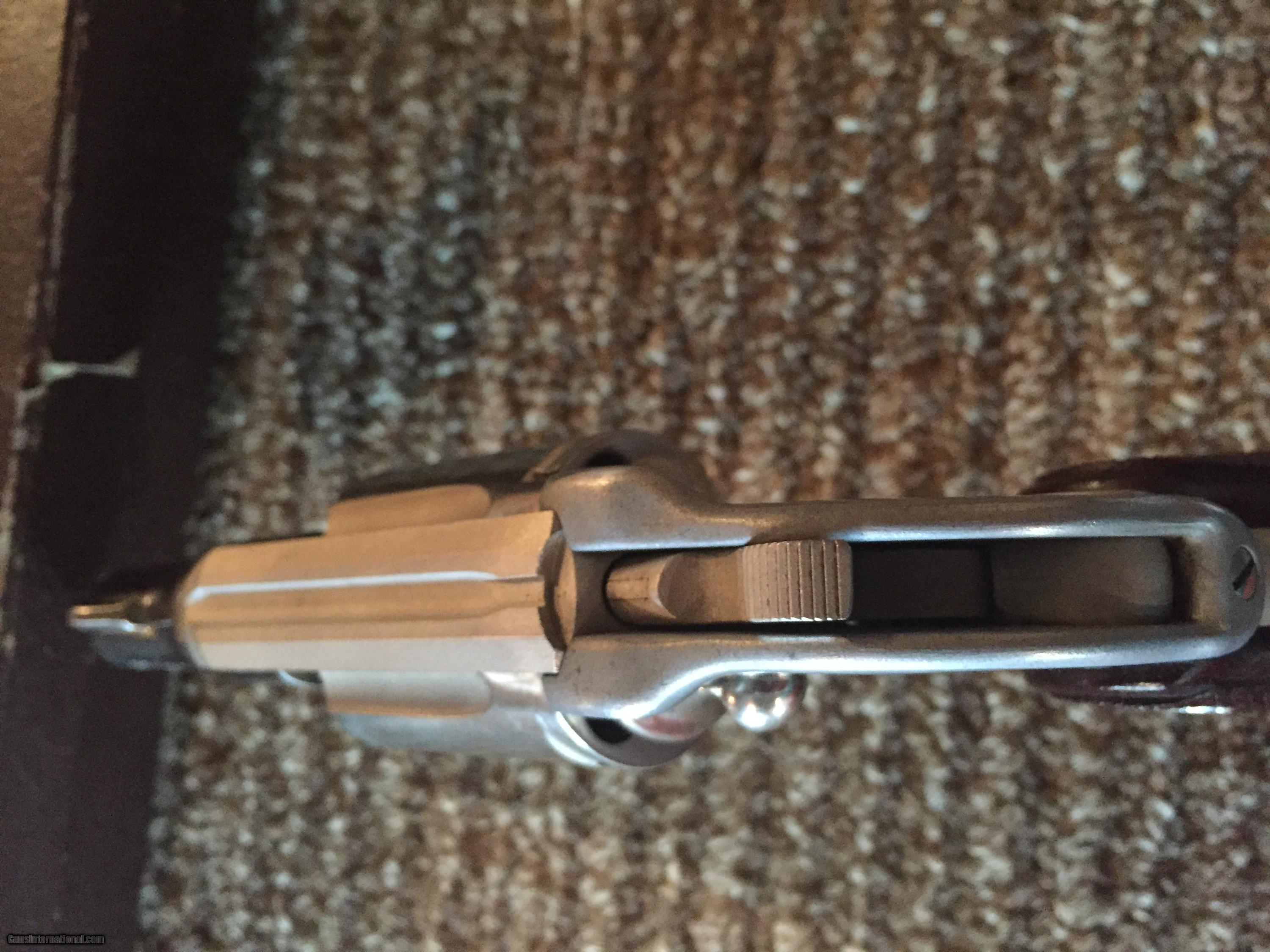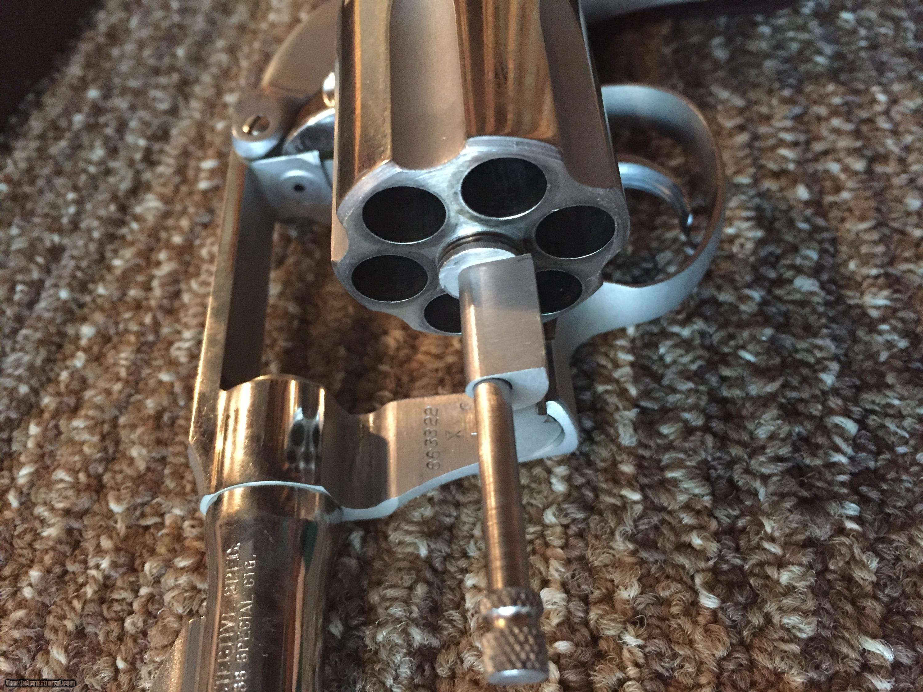 Description: 2nd Issue Nickel Colt Detective Special with Factory Shroud. 1955 Manufacture. 2" barrel. .38 Special. Original Wood Grips in excellent condition. Some minor scratches and wear to nickel, see photos. It has been fired but not much, perhaps only the test shots at Colt. With Original Box and Accessories. Box lid has separated, original serial number in box. Pamphlet by Colt with 1954 date. Original Cleaning tool. Excellent original condition, a perfect collectable! SOLD Manufacturer: Colt Model: Detective Special Serial Number: 663322 Caliber Info: .38 Special |