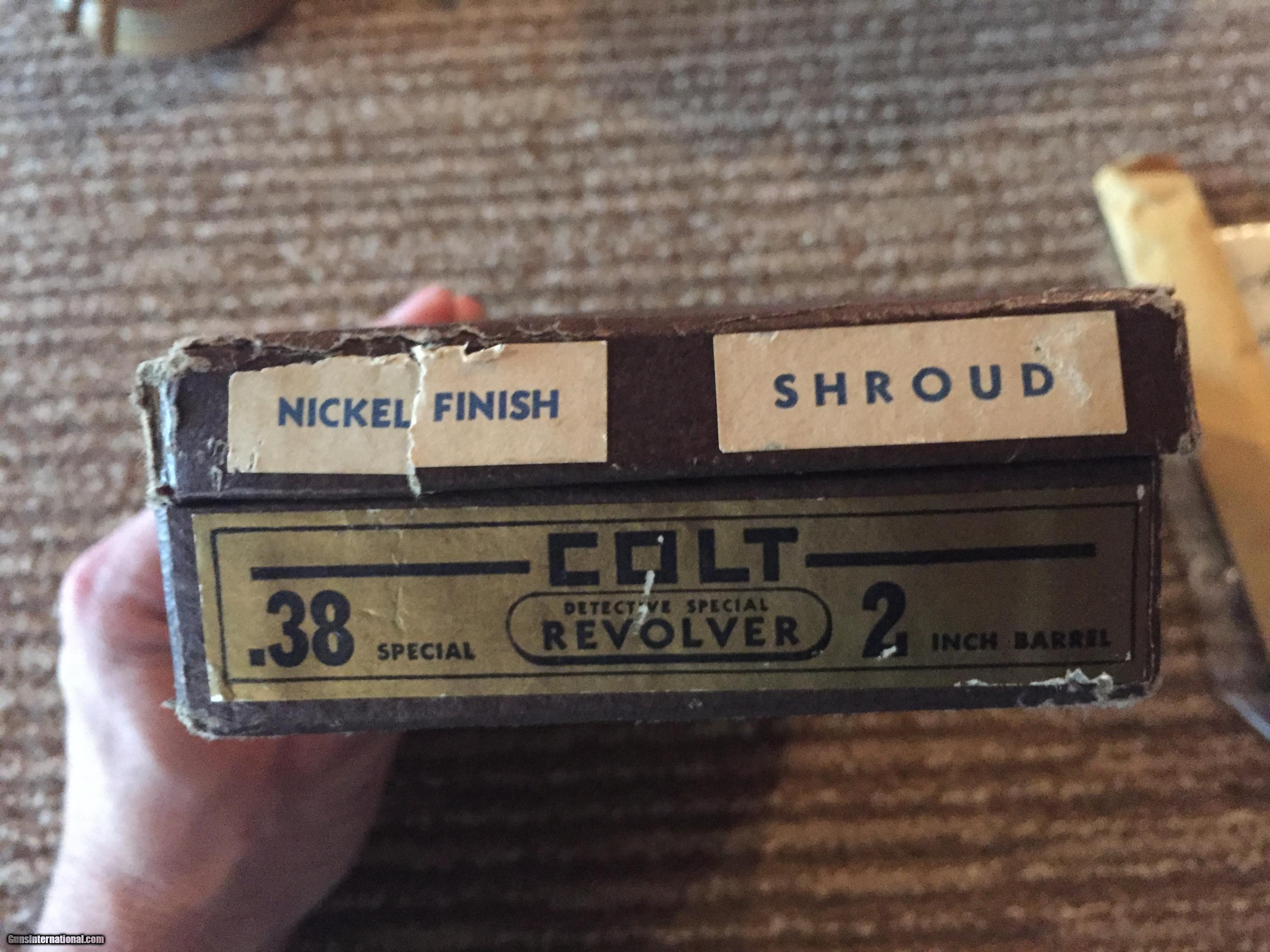 2nd Issue Nickel Colt Detective Special with Factory Shroud 1955 Manufacture With Original Box and Accessories