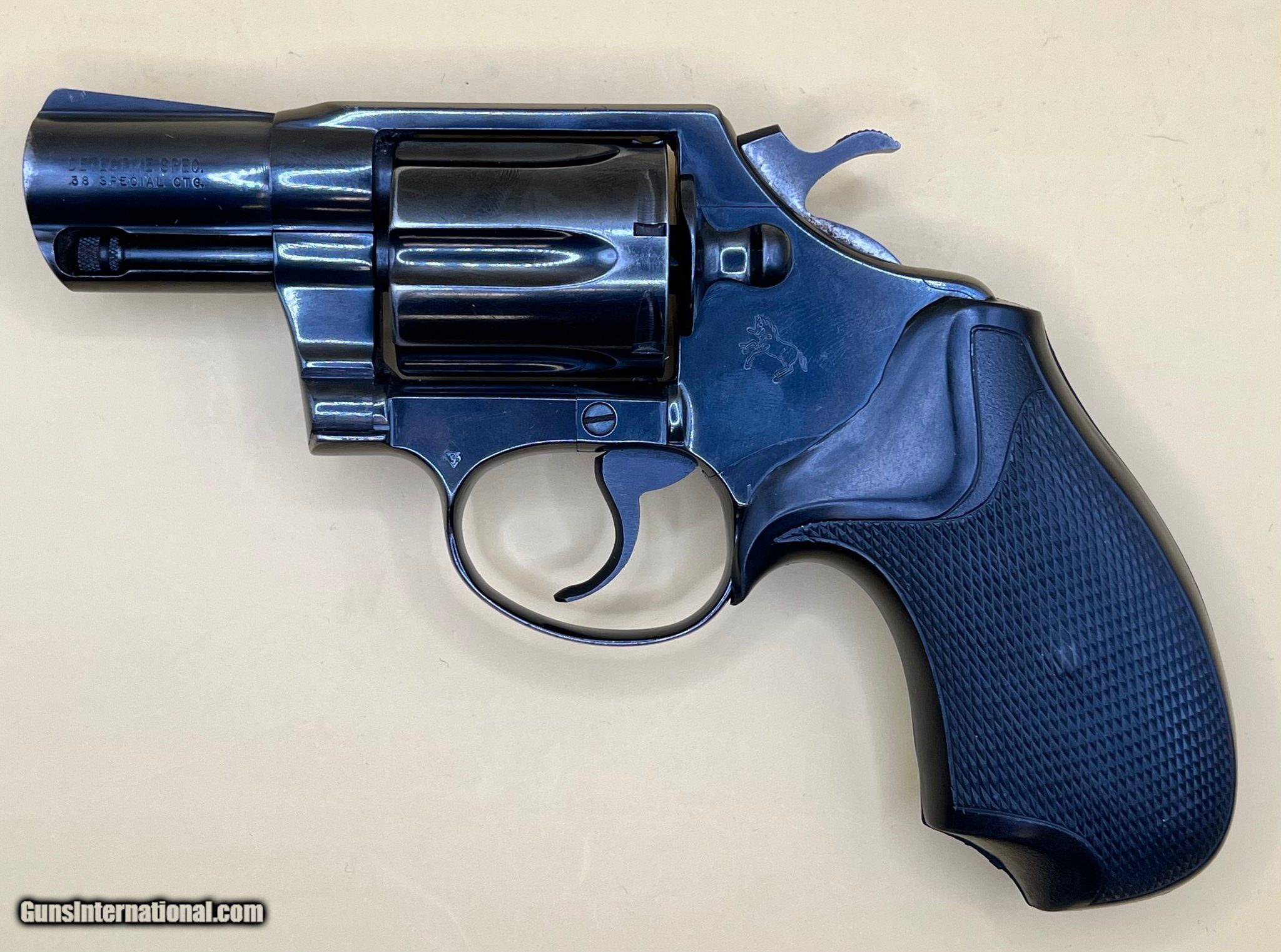 Description: Guns Listing ID: 1415084 The Colt Detective Special is a six-shot, carbon steel framed, 2-inch (5.1 cm) or 3-inch (7.6 cm) barreled, double-action revolver, and the first example of a class of firearms known as \"snubnose revolvers\". Made by Colt‚‚s Manufacturing Company, this model revolver, as the name \"Detective Special\" suggests, was intended to be a concealed weapon used by plainclothes police detective SOLD Manufacturer: COLT Model: .38 Detective Special Caliber Info: .38 SPL Condition: Used - Non-Certified Barrels: 2 BARREL Finish: BLACK |