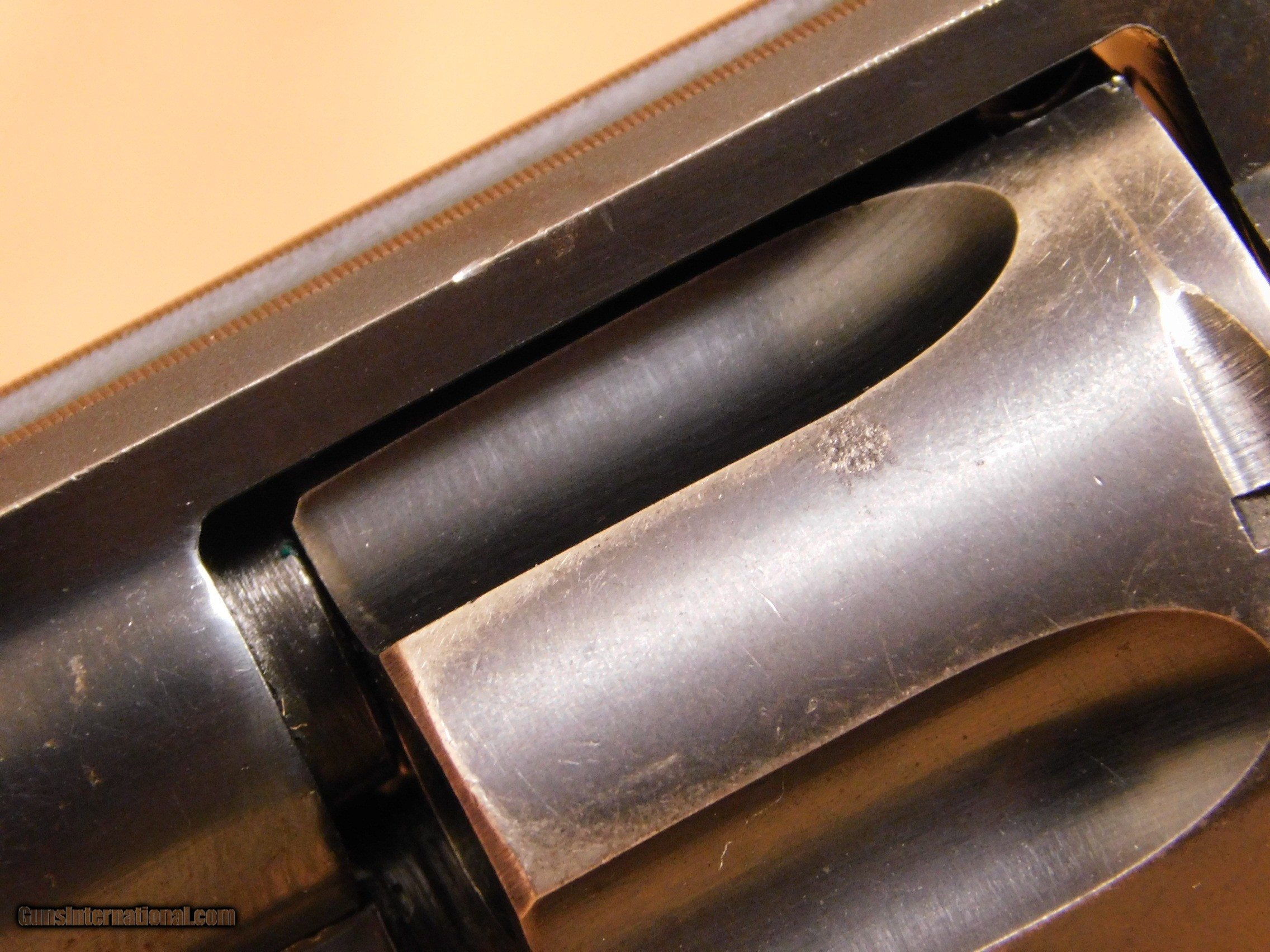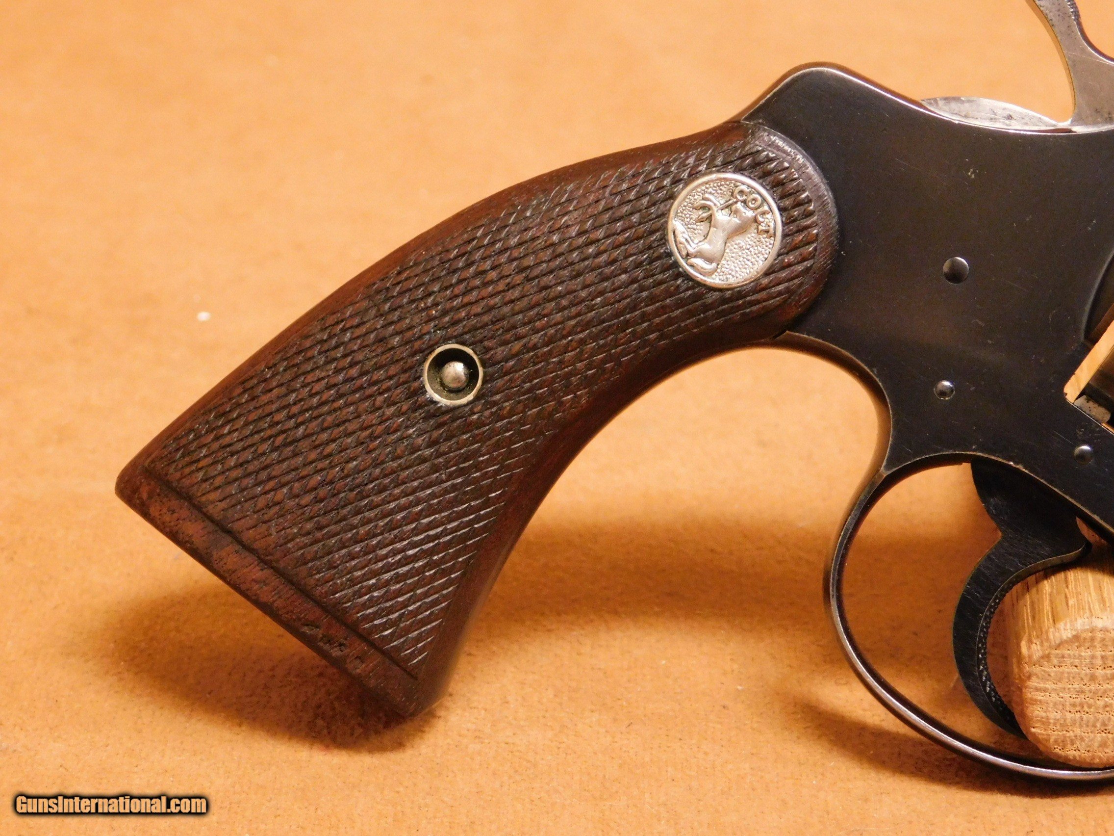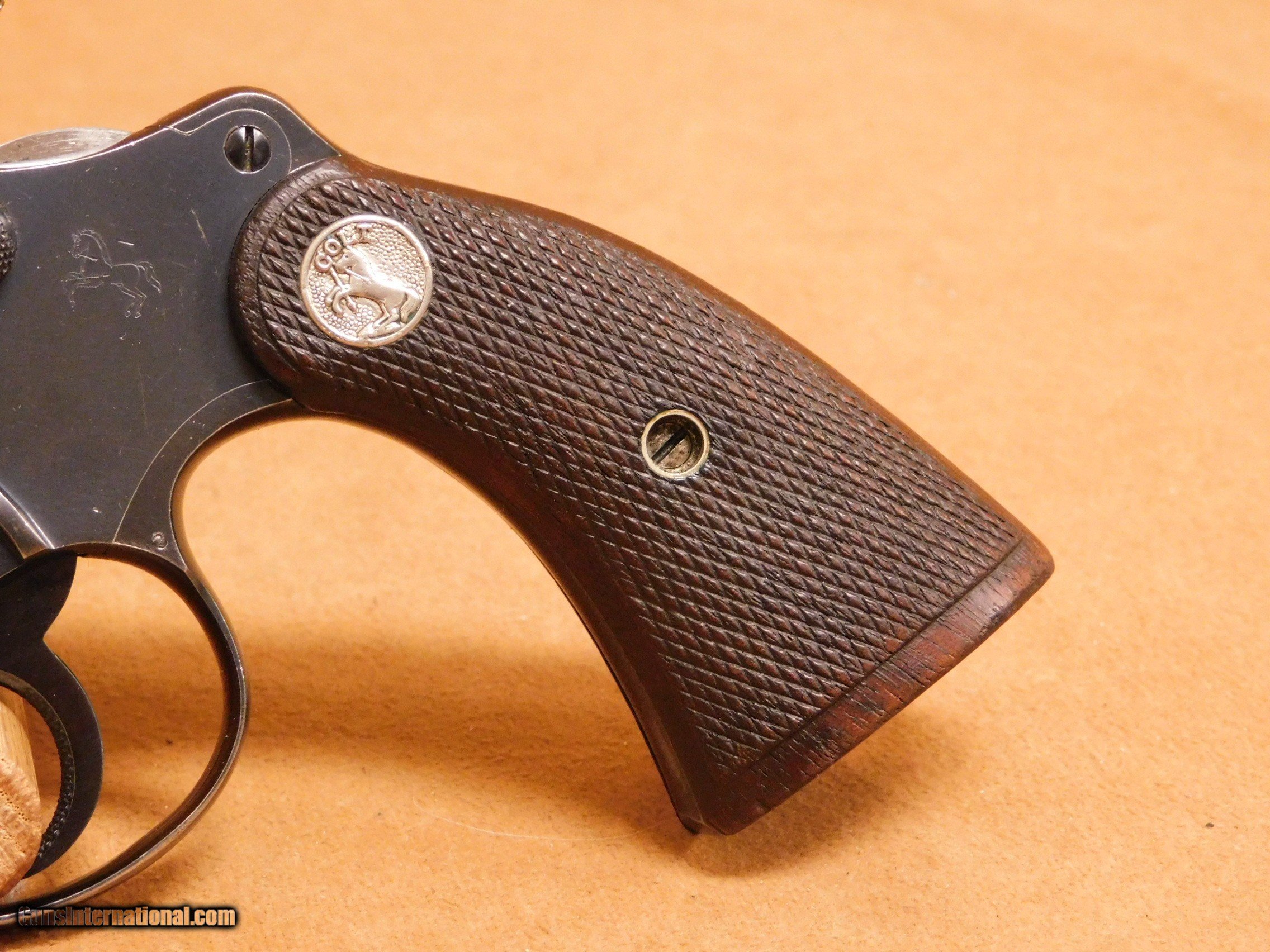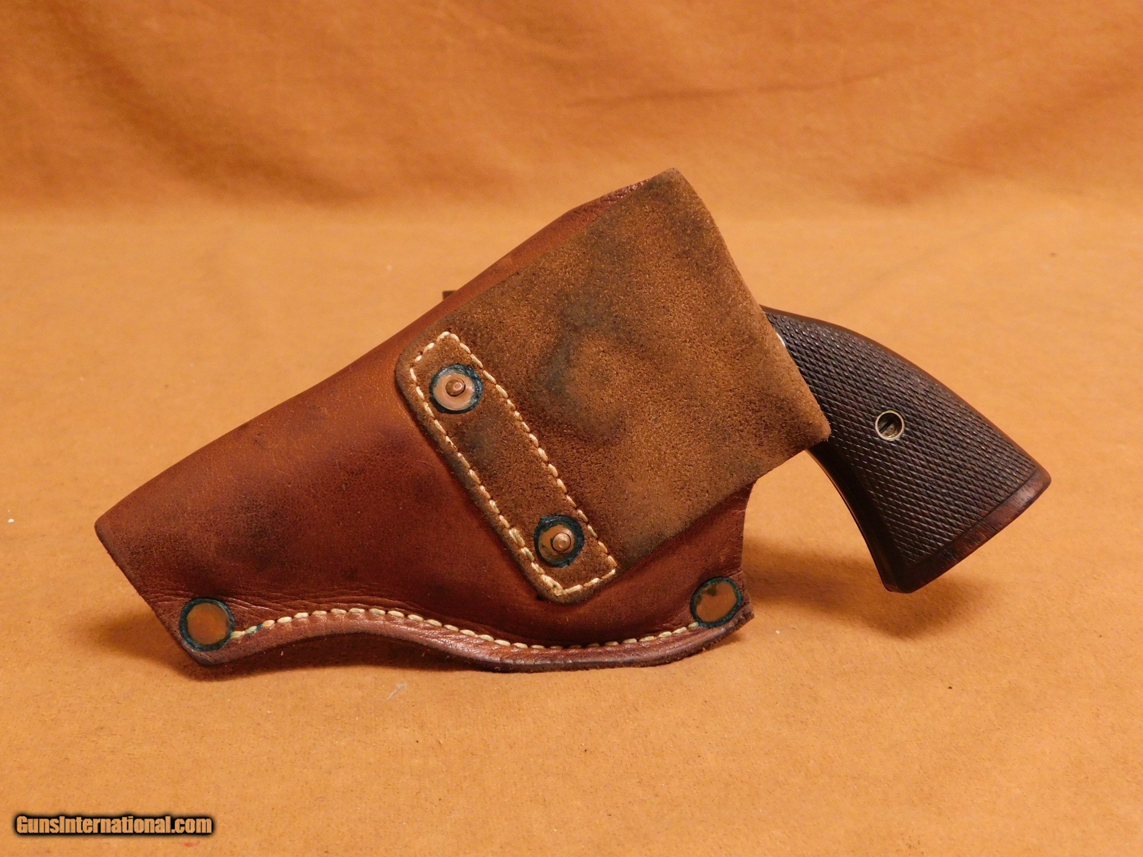 Description: This is a Colt .38 Banker's Special that was sold to the United States Government prior to WWII. The Banker's Special can be considered the baby brother to the more common Detective Special and it features a smaller frame and shorter cylinder to accommodate the .38 Colt New Police cartridge (aka the .38 S&W). With its 2-inch barrel, the Banker's Special was ideal for concealed carry as a personal defense handgun. Interestingly, one of the biggest buyers of the Banker's Special was the U.S. Government for issue to the Post Office. Prior to WWII, much of the mail was carried by rail car. The "roaring twenties" had produced a number of infamous bank robbers and protecting mail shipments of cash, gold, and other valuables was considered high priority. It was decided that each U.S. Mail rail car would have two armed guards. These guards were largely armed with Colt Banker's Special revolvers. These revolvers were procured through U.S. military channels and carry military inspection markings. Additionally, the back straps were factory marked "R.M.S. P.O. DEPT." and the butts were factory marked with Post Office property numbers that ran sequentially from 1 to approximately 20,000. Considering that total production of the Banker's Special is estimated at about 35,000 it appears that the Post Office purchased well over half of the total made! These revolvers remained in Post Office inventory & service into the 1960's when most Post Office employees were required to turn them in. They were never sold to the public and were eventually destroyed in 1992. Those few that are in circulation today were somehow "liberated" along the way. Many of those had their Post Office markings removed out of fear of prosecution (it was a felony to be found in possession of Gov't property at the time). Relatively few remain with their original markings intact. This example also has a US Property-marked, Post Office-marked and dated holster, making for an incredibly rare rig! SOLD Curio/Relic: Yes Manufacturer: Colt Model: Banker's Special Serial Number: 325353 Caliber Info: .38 S&W Condition: Used |