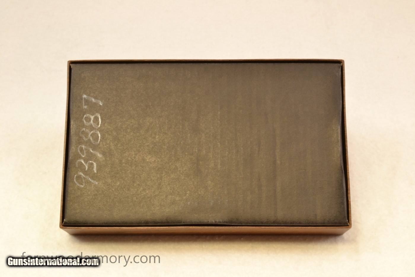 Description: SOLD Colt Detective Special revolver, serial number 939887, made in 1967. This is a 2nd issue Detective, blued with two inch barrel. Cylinder holds six rounds of .38 Special. Checkered walnut grips with Colt medallions. One of the finer examples we have come across, this Detective Special has been a safe queen. We see no drag line on the cylinder, and no evidence of the gun being fired other than a factory test. Bluing is perfect, no scratches or dings in the metal. Bore is mirror bright. Grips are in as new condition, and are marked with the last three digits of the serial number. Box, manual and warranty card are included. Ships Free to FFL. C & R FFL is ok. No credit card fees. See additional terms below. TERMS We are an FFL dealer. Please read through the terms below before or purchasing. PAYMENT -Checks, money orders and credit cards accepted. No fees for credit cards. -Payments and FFL information must be received within 5 business days or item will be relisted. -Buyer is responsible for contacting their FFL and making arrangements for the transfer. -Sales Tax charged to Florida residents only. SHIPPING -Free ground shipping to FFL in lower 48 states. -Firearms ship insured to FFLs and require signatures for delivery. Items usually ship 1 to 2 business days after payment clears and FFL information is received. -No Local Pickup. We are an internet only dealer and do not offer in store pickup. RETURNS -Used Firearms: 3 day inspection policy. Item may be returned if in same condition as when it left our facility. Returns are subject to a $35.00 restocking fee. Buyer is responsible for return shipping charges (must include insurance and signature requirement) and any transfer fees. -In the event of shipping damage please contact us for a return authorization number. OTHER To purchase a handgun: You must be 21 years of age or older To purchase a long gun (shotguns and rifles): You must be 18 years of age or older. (21 and over for Florida residents) Please verify the firearm you wish to purchase meets the laws of your state, county, or city. No Trades No Layaways QUESTIONS? Customer service hours: Monday-Friday 9am-5pm Eastern Phone: 888-319-4811 SOLD Curio/Relic: Yes Manufacturer: Colt Model: Detective Special Caliber Info: .38 Special Metal Condition: Mint Bore Condition: Mint Barrels: 2 Inch Action: Double Action Manufacture Date: 1967 Extras: Factory box, papers |