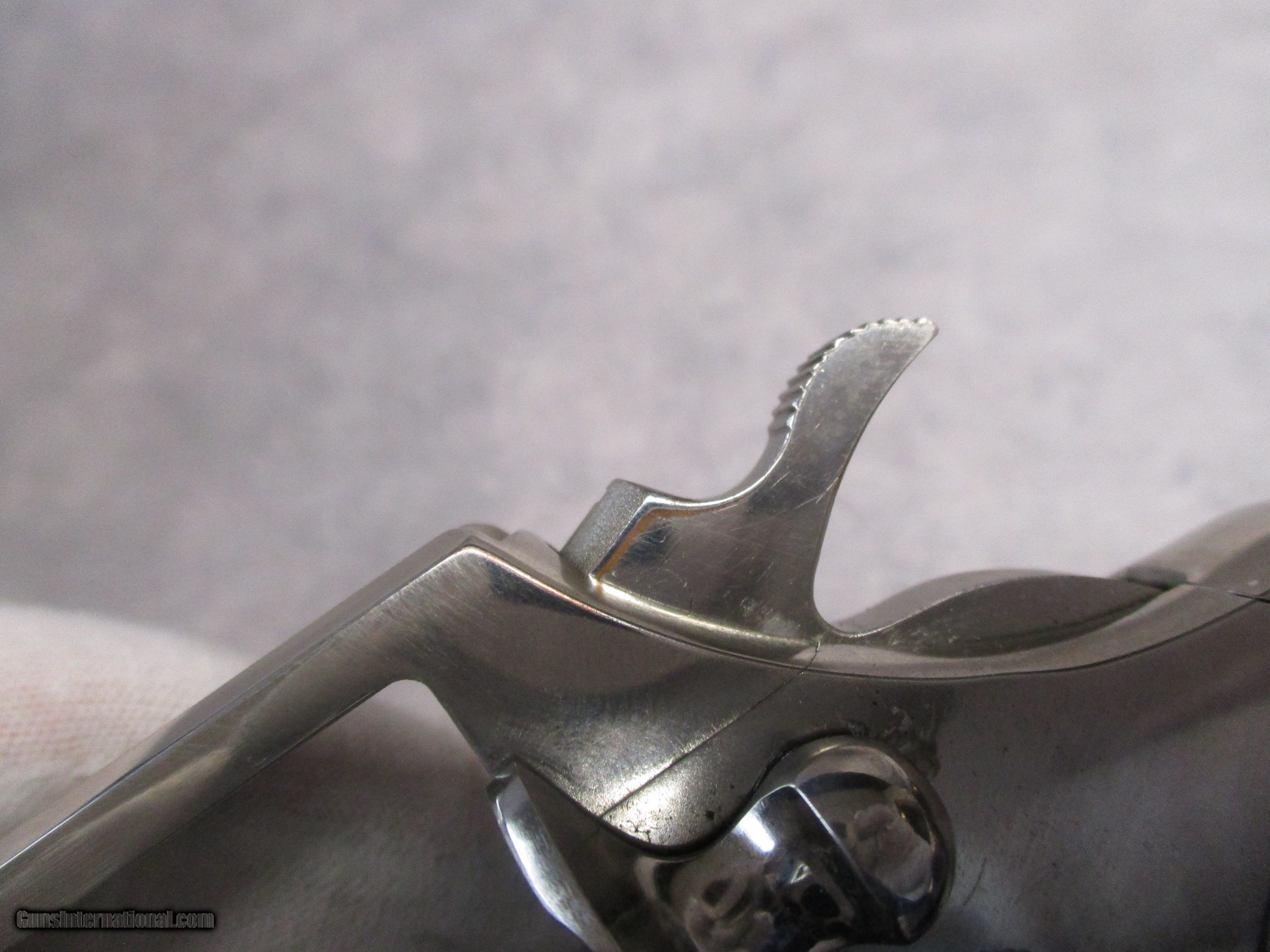 Description: The Detective Special was one of the most popular conceal/defense revolvers of its time, and certainly one of the most famous. Unlike its Smith & Wesson counterpart the Chief’s Special (later the Model 36), the Detective Special held six shots instead of five. Colt was always more than willing to play up this fact in its advertisements. The reason behind this lay in the design of each revolver. Colt’s D frame was designed to be large enough to allow six cartridges in the .38 S&W/.38 Special class while Smith & Wesson’s I and J-frame revolvers were designed around having capacity for six .32-caliber cartridges or, alternatively, five of the .38’s. In the end, for a slightly larger size, the Detective special offered the buyer a better capacity for the firepower provided than its competitor. This example has a beautiful nickel finish. The bore is in excellent condition. On the cylinder there is a small group of tiny spots of pitting over one chamber, and one singular spot on the other side. These are shown in the pictures. The face of the cylinder has light powder burns. There is a thin line of wear in the nickel finish on the left side of the hammer. Mechanically, the Detective Special is in superb condition and locks up perfectly. According to the Colt serial number database, this revolver left the factory in 1972. It also comes with its original Colt box and nice Galco leather holster (not pictured). It would make a very nice addition to any Police Firearms or Colt collection. SOLD Handgun Caliber: .38 Special Manufacturer: Colt's PT. F.A. Mfg. Co. Model: Detective Special Serial Number: C24849 Bore: Rifled Chambers: 6 Ejectors: Manual, simultaneous 6-round ejection Condition: Excellent Barrel Type: Shrouded Action: Double/Single Action Triggers: .250" (6.35 mm) smooth trigger Stock: Checkered walnut Finish: Nickel Sights: Fixed, square notch rear, ramp front, Sight Radius 3.75 inches (95 mm) Manufacture Date: 1972 Extras: Galco leather holster Case: Colt box |