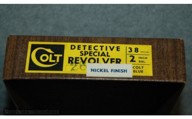 Description: Colt Detective Special revolver .38 Spec. Appears as new, with very nice original box and outer carton with a Colt shipping label. Rare find for Colt collectors SOLD Caliber Info: .38 Special Metal Condition: Excellent, Appears As New Wood Condition: Grips Are Excellent, Appear As New Bore Condition: Bright Barrels: 2" Barrel, Bright Nickel Finish Triggers: Single and Double Action Stock: Colt Wood Grips Weight: 1 Lb 8 ozs Sights: Fixed Rear Sight Channel, Ramp Front Sight Extras: With original box and shipping carton Item Location: La Vista, NE |
