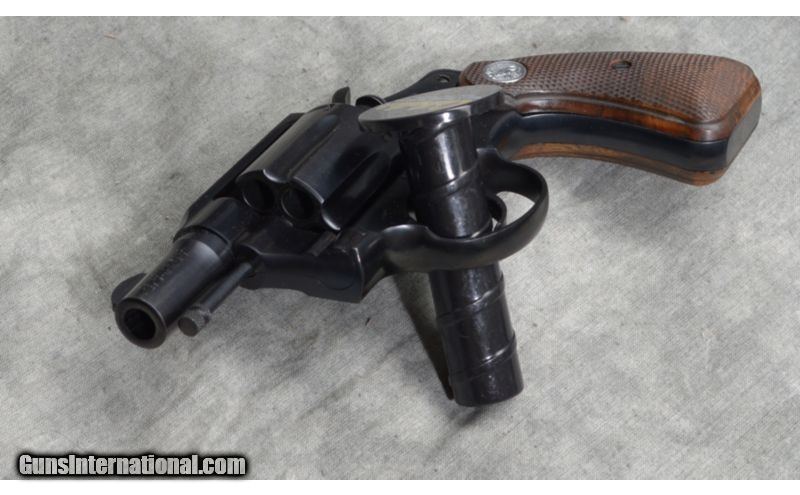 Description: SOLD Curio/Relic: Yes Manufacturer: 1956 based upon the S/N 856xxx Caliber Info: .38 Special Chambers: 6 shot revolver. Metal Condition: Excellent, with very minimal signs of wear. Note: It is a re-blued gun. The only way to tell is the bluing on the sides of the hammer and the front sight has been filed down to raise point of impact. Wood Condition: Excellent, a few very light handling marks Bore Condition: Bright and shiny Barrels: 2 inch Stock: Checkered walnut Weight: 23 oz. Sights: Post and top strap groove Item Location: Rogers,, MN |