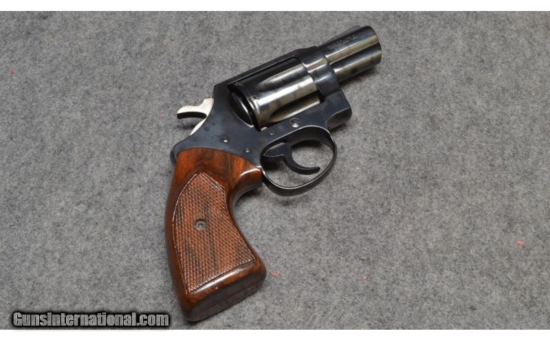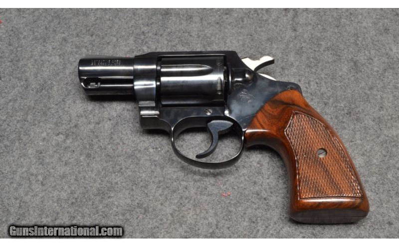 Description: SOLD Caliber Info: .38 Special. Chambers: Six-shot revolving cylinder. Metal Condition: Very good. Wood Condition: Very good. Bore Condition: Very good. Barrels: 2" blued steel barrel. Triggers: Single metal trigger. Stock: Finished checkered walnut grips. Weight: 24oz. Sights: Front blade sight. Extras: Comes with original box. Item Location: Wichita, KS |