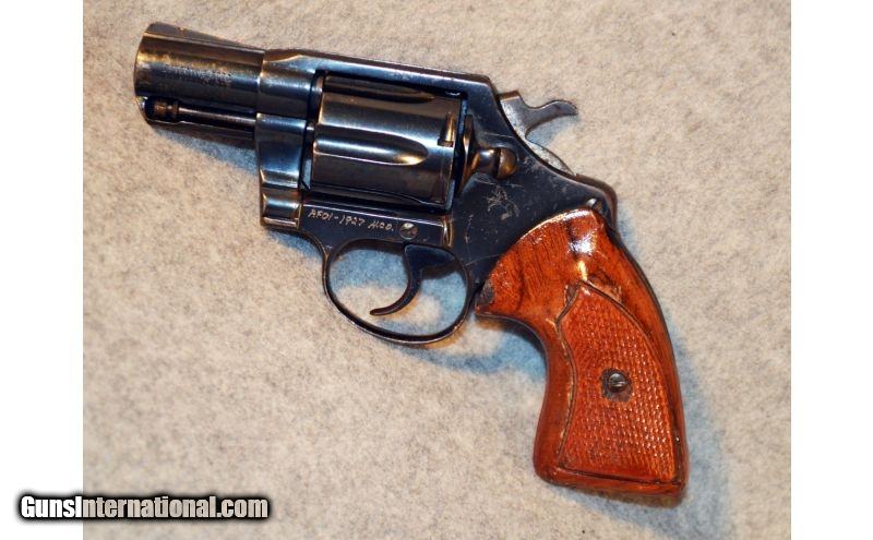 Description: Colt Detective Special in .38 Special caliber manufactured in 1976 per the serial number. Firearm bluing is weak with some wear spots and some surface pitting. Wood grips are worn with numerous dents and dings and a couple of spots are chipped, especially around the grip screw. Wood grips are a little loose. SOLD Manufacturer: 1976. Caliber Info: .38 Special. Chambers: Revolver. Metal Condition: Bluing is worn and some surface pitting. Wood Condition: Wood grips have numerous dents and dings and a couple of chipped areas. Bore Condition: Clean, grooves and lands sharp. Barrels: 2" Barrel. Triggers: Single. Weight: 22 Oz. Sights: Ramp front sight. Extras: Comes with box. Item Location: Lexington, KY |