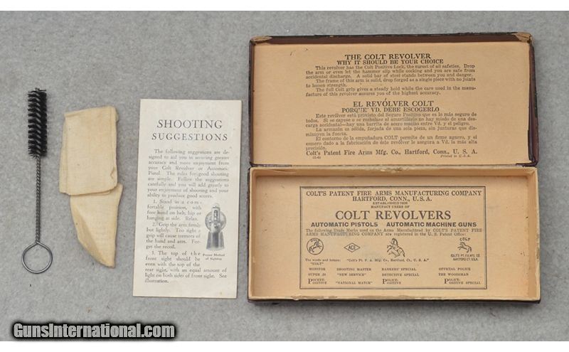 Description: Colt Detective Special chambered in .38 special is in excellent condition. It features a 2" blued barrel, blued frame and cylinder, wooden checkered grips with a Colt medallion on each side. It comes with the original box and has very few handling marks on the frame and cylinder. It also has some bluing loss on the front of the barrel. .38 Special SOLD Metal Condition: Excellent condition with handling marks Wood Condition: Excellent condition Bore Condition: Clean and shiny Barrels: 2 Butt Pad: Wooden textured grip Weight: 1 lb 4 oz Item Location: Fort Worth, TX |