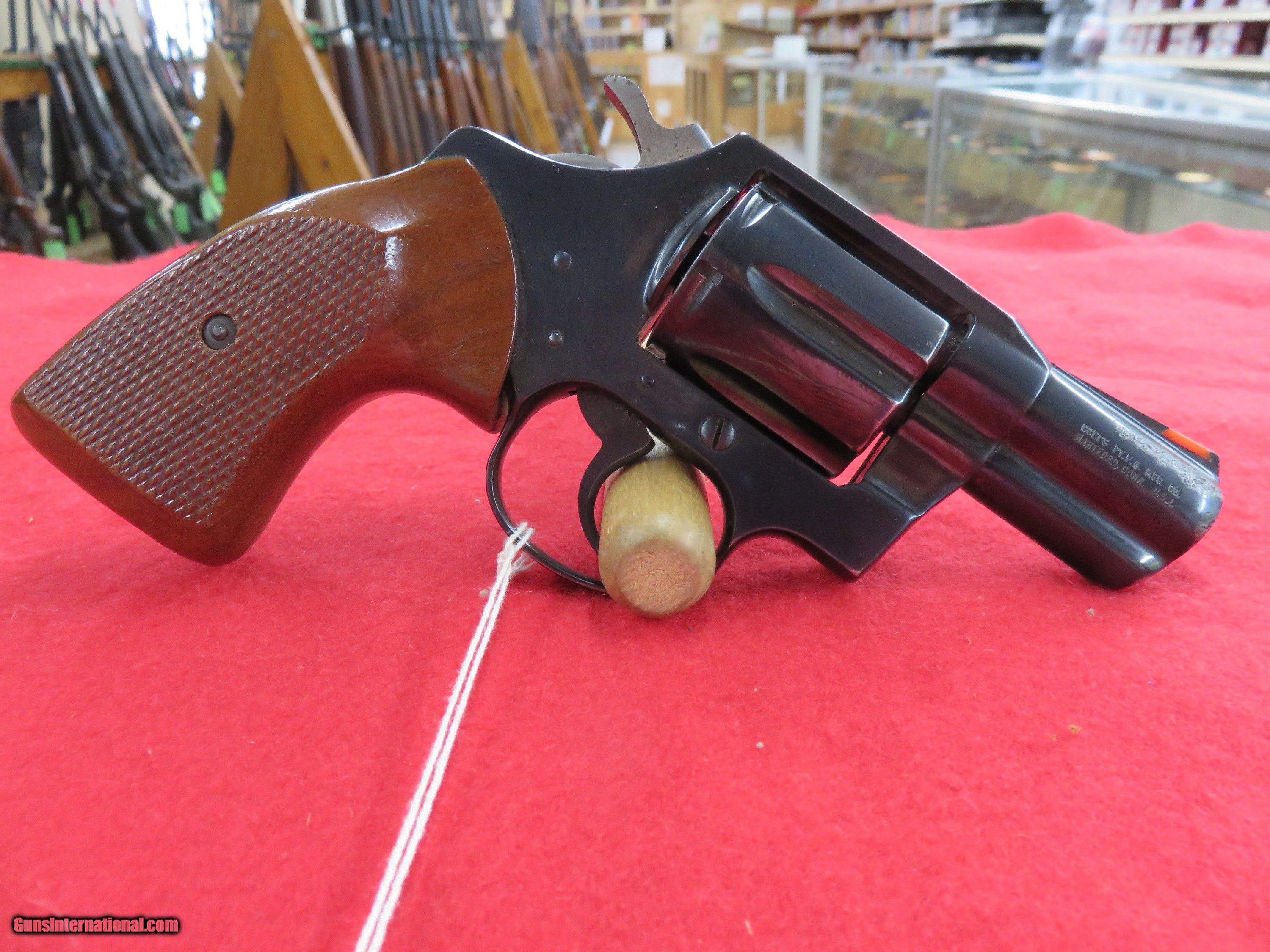 Description: Colt Detective Special, 38 Special, 2" barrel, blued, wood grips, red ramp front sight, holster wear on barrel muzzle and cylinder, pitting on right side of barrel, overall condition 90%, $695.00 + $50.00 Shipping SOLD |