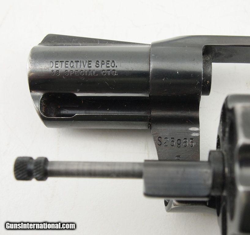 Description: Colt Detective Special .38 SPL, 2" bbl, shiny bore, good rifling, blued finish, light holster wear - use marks, with Pachmayr checkered grips. Add 3% for Credit Card Shipping $25.00 SOLD |