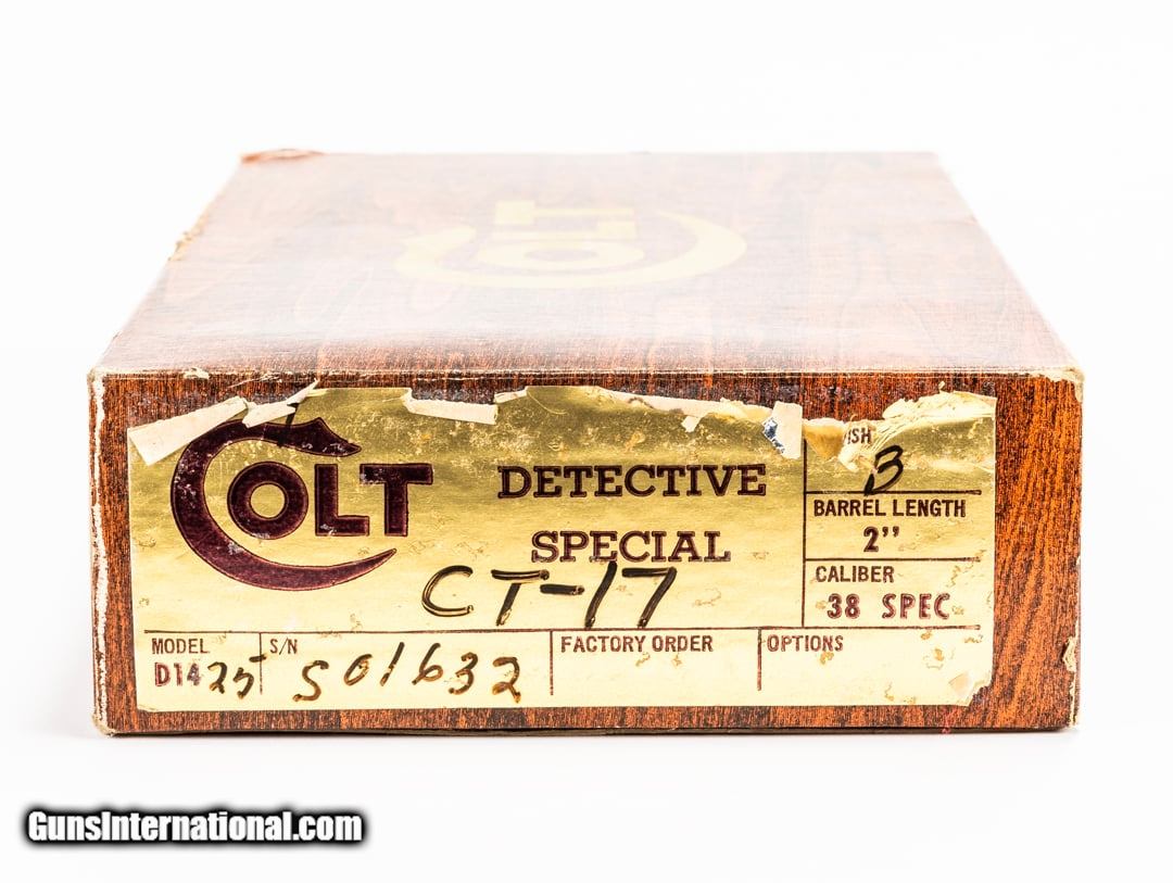 Description: Guns Listing ID: 1371002 1979 Colt Detective Special .38spl 6 Shot w/ Original Box! Manufacturer: Colt Model: Detective Special Condition: Excellent, w/ Box Caliber: 38 Special Action: DA/SA Barrel Length: 2 inch Capacity: 6 Shot Features: Checkered wood grips, blued finish, shrouded ejector rod Inventory: Firearm, original Colt box, original manual • Please be aware that we have not test fired this gun. Unless otherwise stated, expect this firearm to fire and function safely. • All sales are final. Any discrepancies between the gun and our description should be communicated to us prior to the transfer. • Returns will not be accepted after the transfer process has been submitted or completed. SOLD Manufacturer: COLT Model: Detective Special Caliber Info: .38 SPL Condition: Used - Non-Certified Barrels: 2 BARREL Finish: BLUED |
