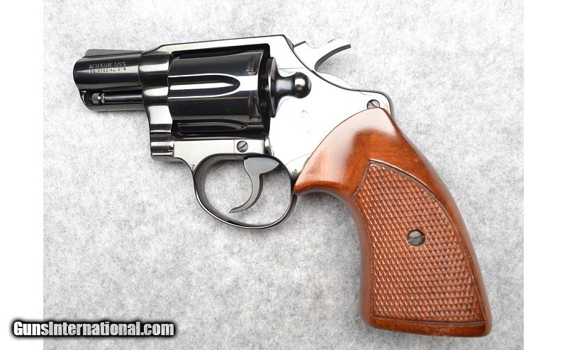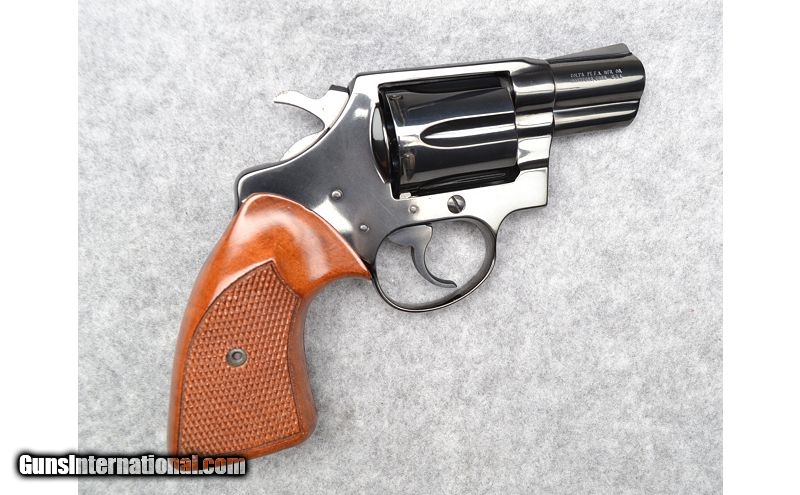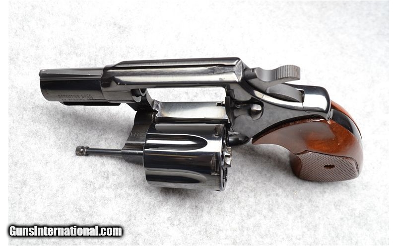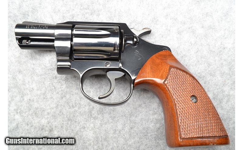 Description: SOLD Manufacturer: S/N F17226 Mfg.1974 Caliber Info: .38 Special Chambers: 6-shot Metal Condition: Very Good; faint cylinder turn ring, bluing wear and minor pit on top front ramp; few pits on hammer Wood Condition: Very Good; some dents on grip butts; checkering is sharp; no cracks, tight fit Bore Condition: Clean Barrels: 2 1/8 inches Triggers: Factory DA/SA Stock: Factory Wood grips, checkered Weight: 23 oz Sights: factory Extras: No box Item Location: Greenville, SC |