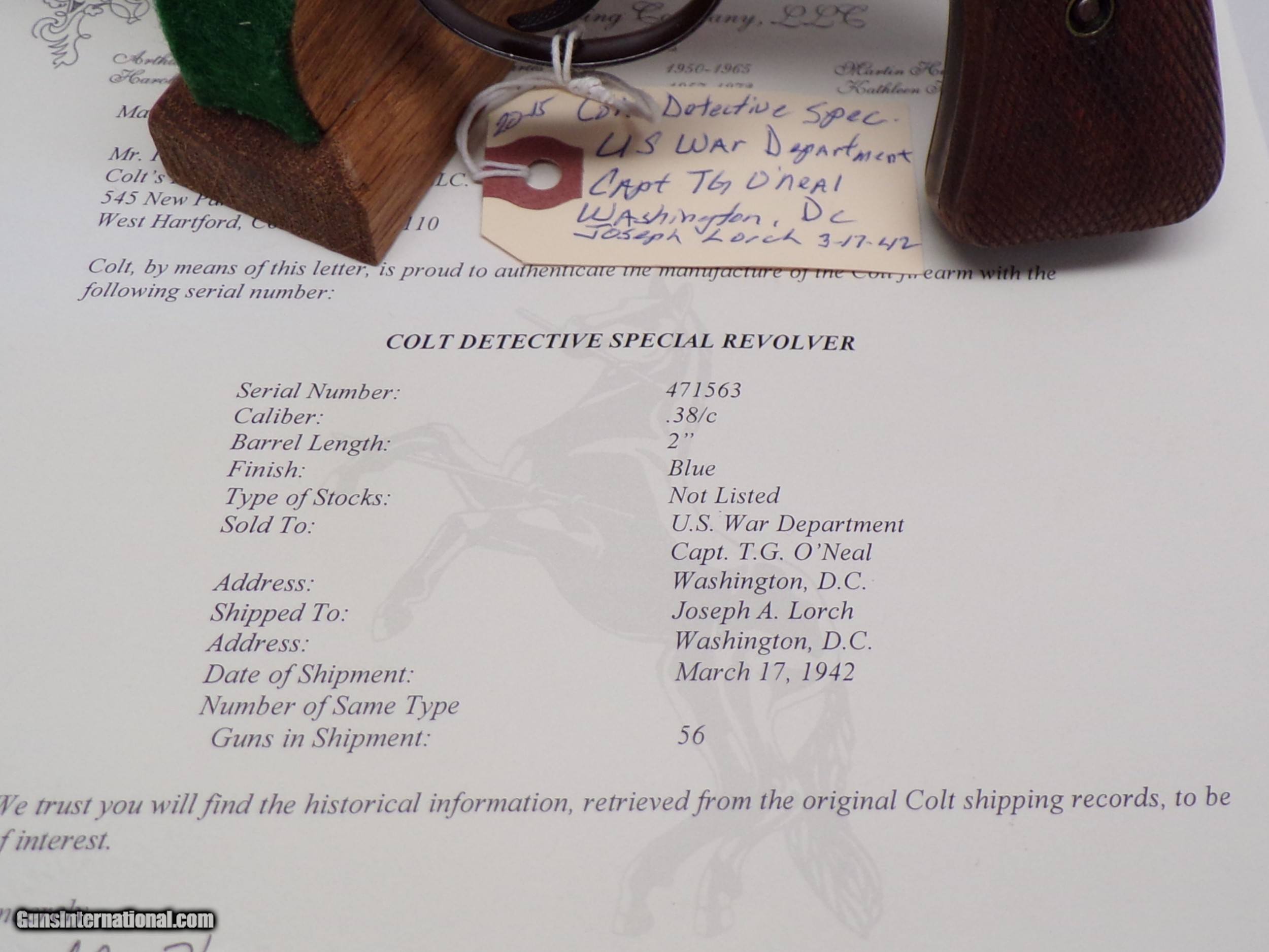 COLT DETECTIVE SPECIAL GREAT LETTER U.S. WAR DEPARTMENT