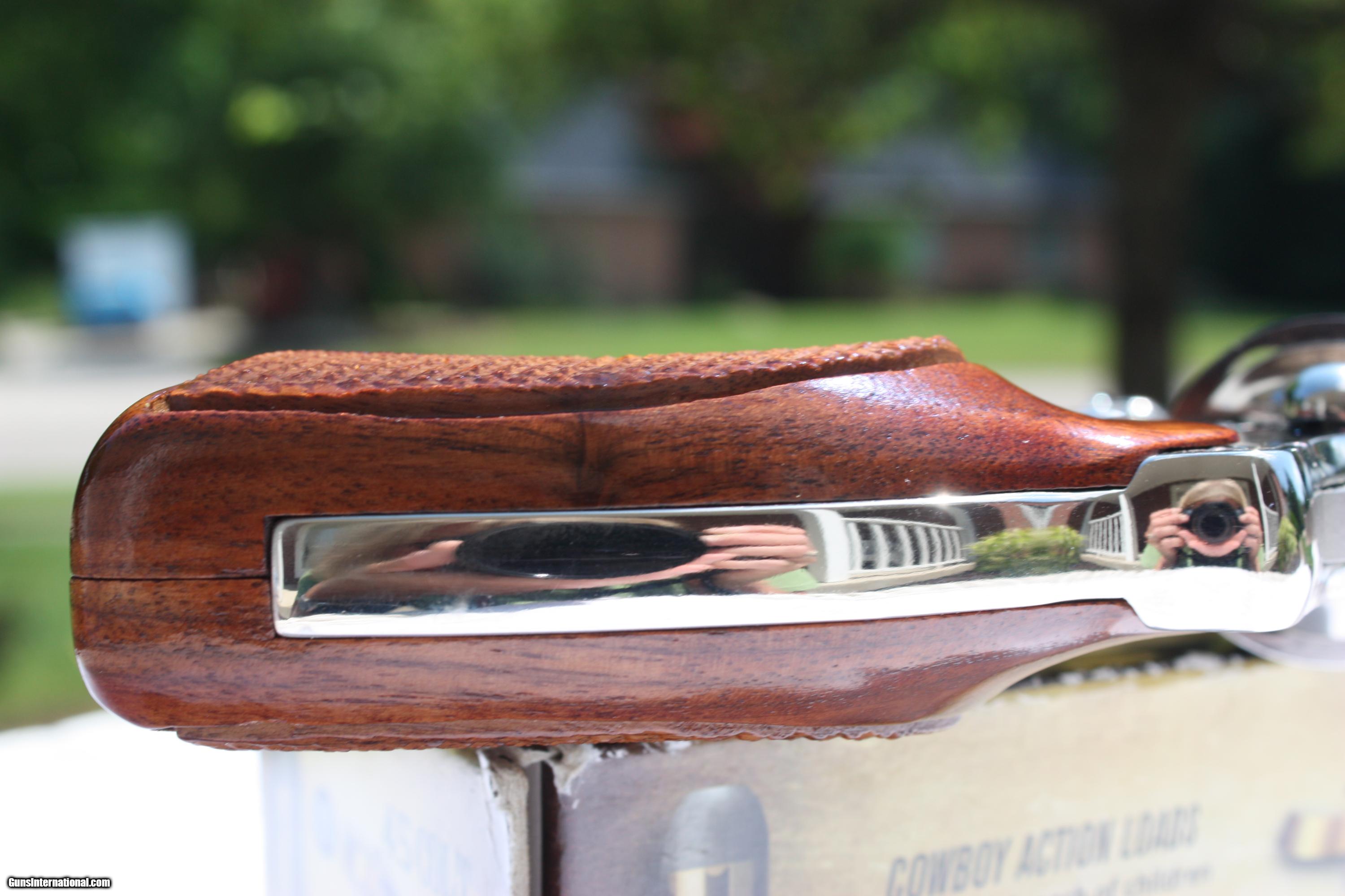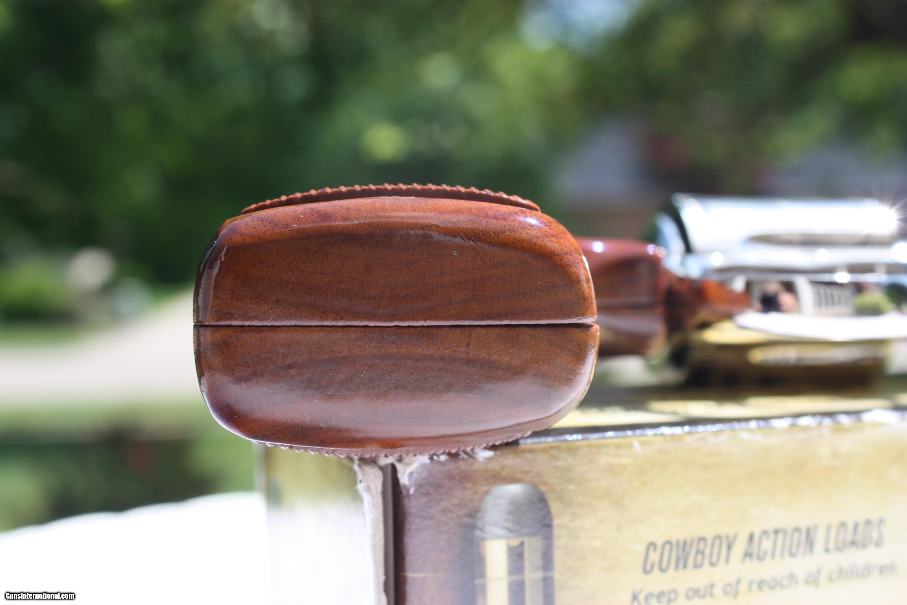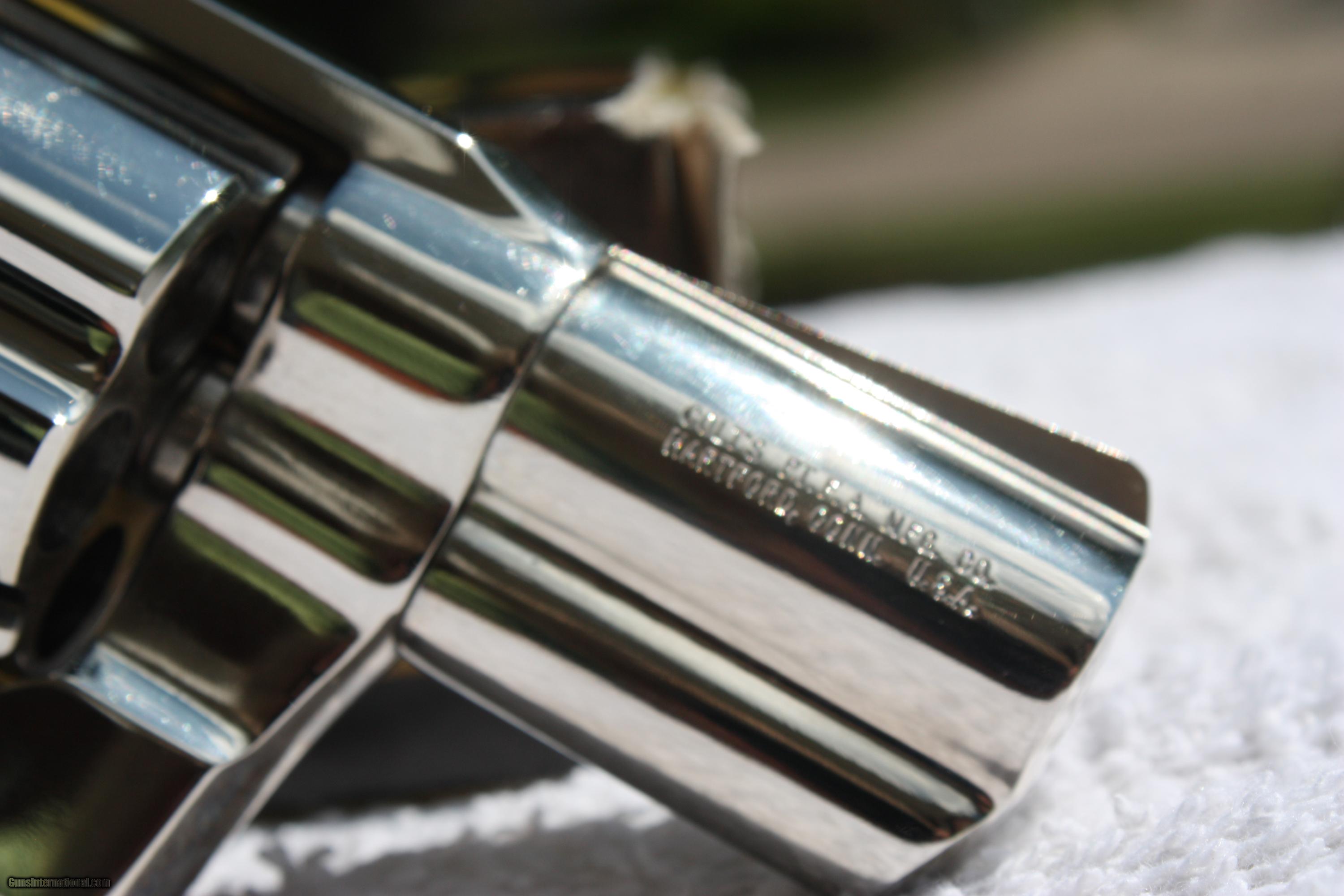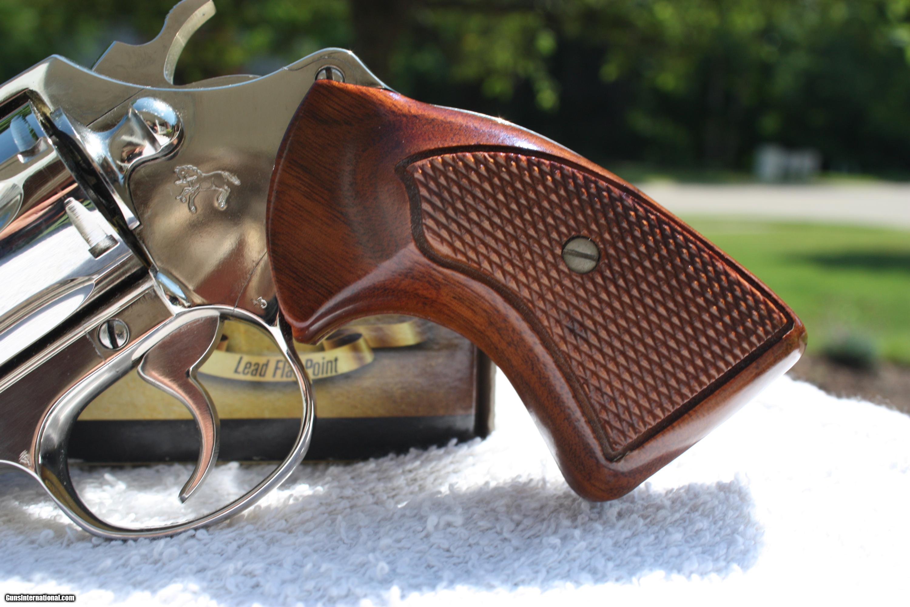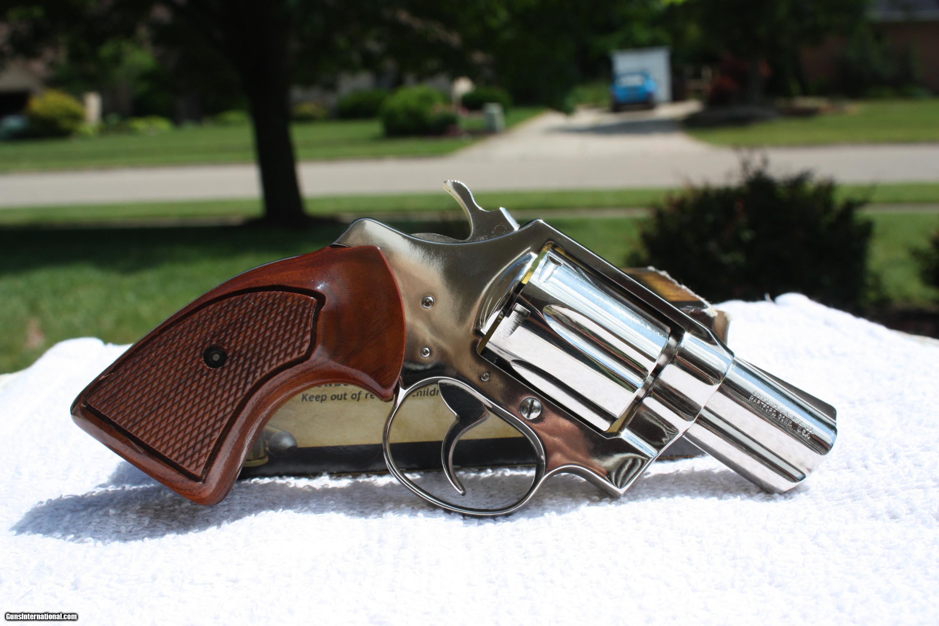 Description: Colt Detective Special chambered in .38 special. Original nickel finish with original wood grips. Gun is serialized to original colt box, with all paperwork and hangtag. Gun is near perfect, box is a bit tattered and has some tape on it. But its all there.!! Nice collector piece. 50.00 ship/insured fee SOLD |