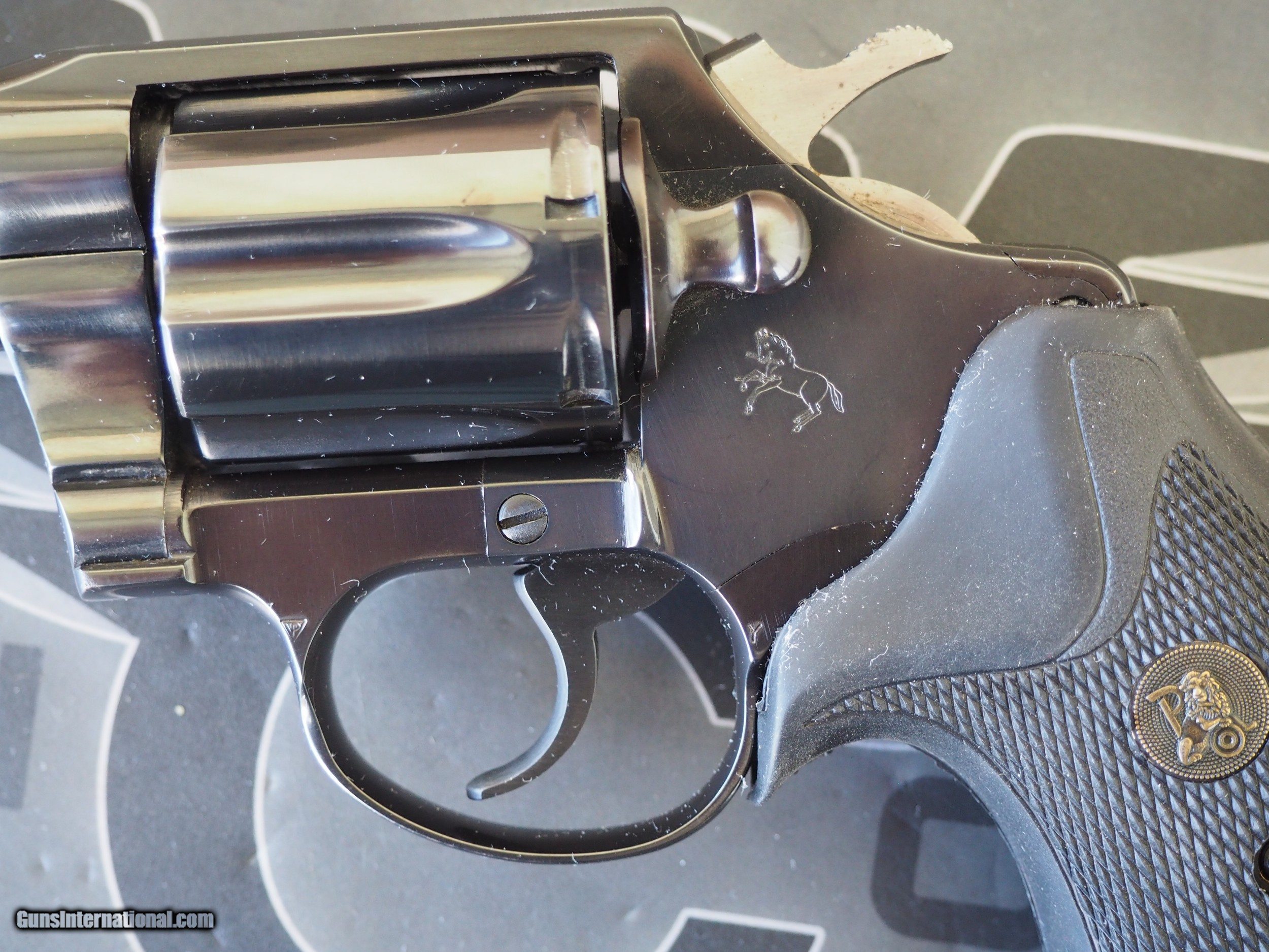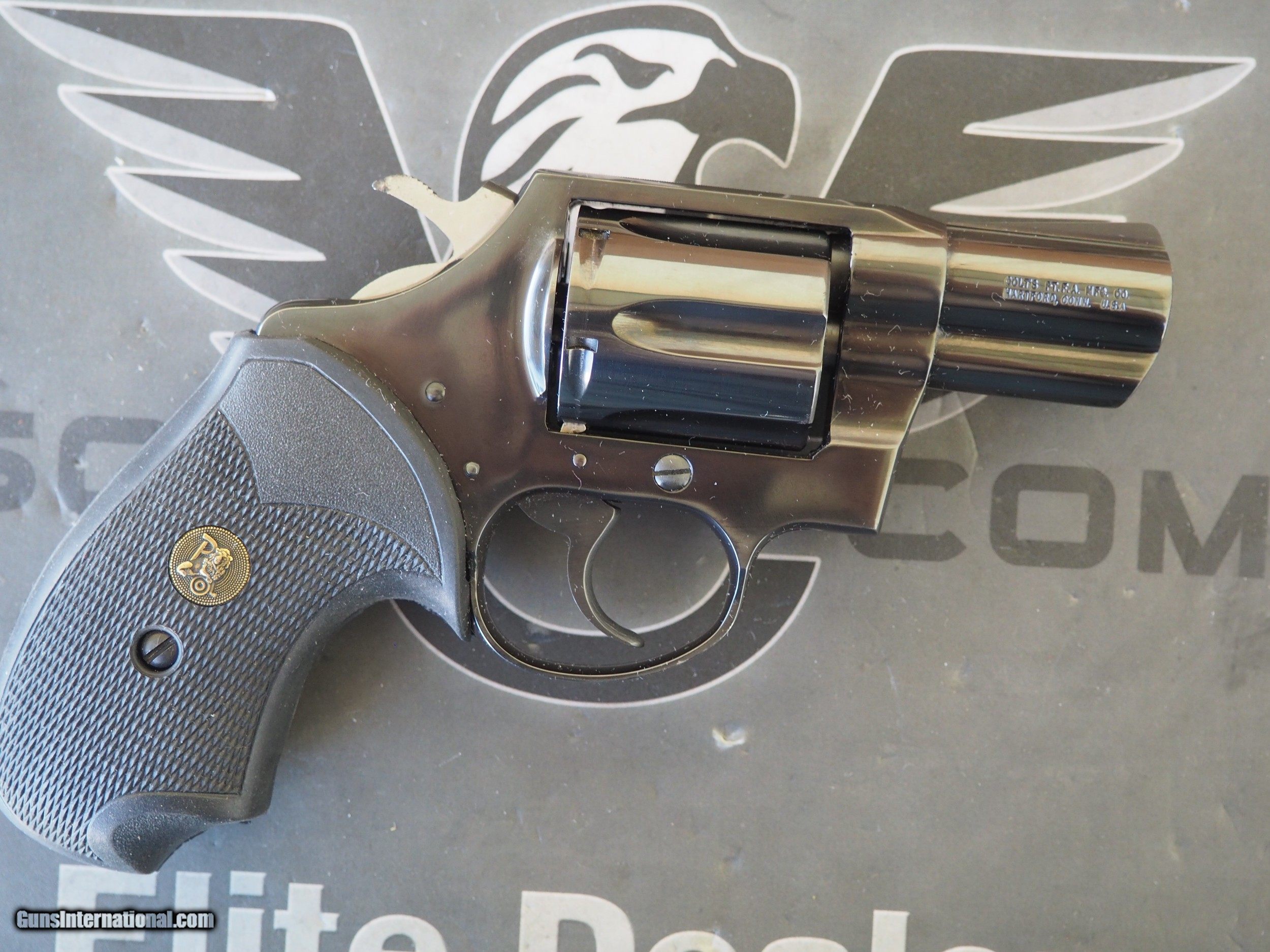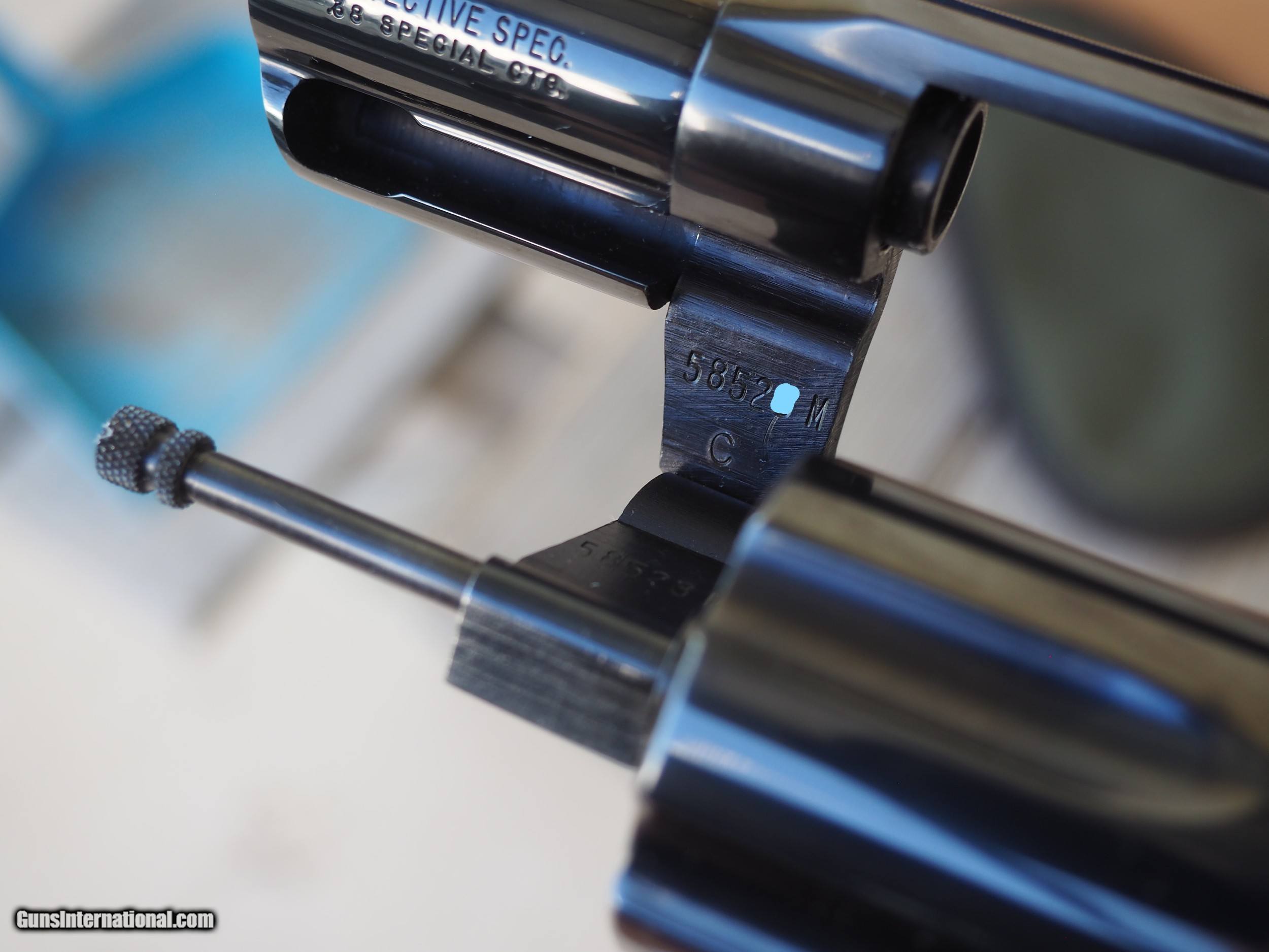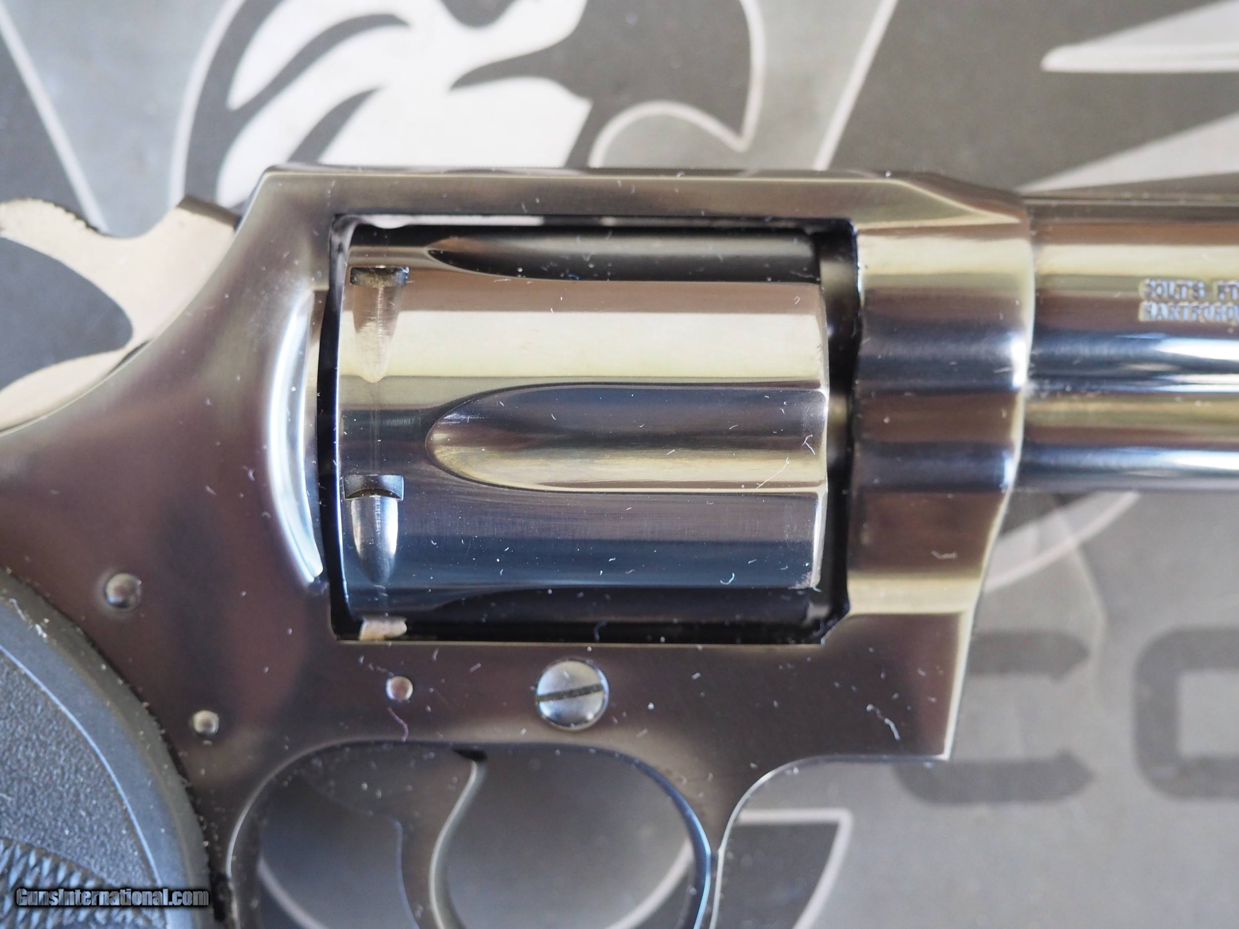 Description: Colt Detective Special, .38 Special. This blue, 2", six shot double action revolver is in excellent condition. This is one small spot of freckling on the cylinder, and some finish loss on the front of the cylinder, which I've pictured. No holster wear or heavy drag marks on the cylinder. My limited research says this is a 1977 production. No box, or papers, just the revolver as you see it. Action is tight, and locks up properly. Satisfaction guaranteed on this long discontinued Colt revolver. NO SALES WHERE PROHIBITED. Texas residents subject to state sales tax. Shipping, to your FFL, via USPS Priority Mail, insured, CONUS, is $25.00. Preferred payment by USPS Money Orders, cashiers/certified check. Credit cards accepted with a 3.5% surcharge. No trades needed. No lower offers accepted. SOLD!!! SOLD Manufacturer: Colt Model: Detective Special Barrel Length: 2 Caliber Info: .38 Special Condition: Excellent |