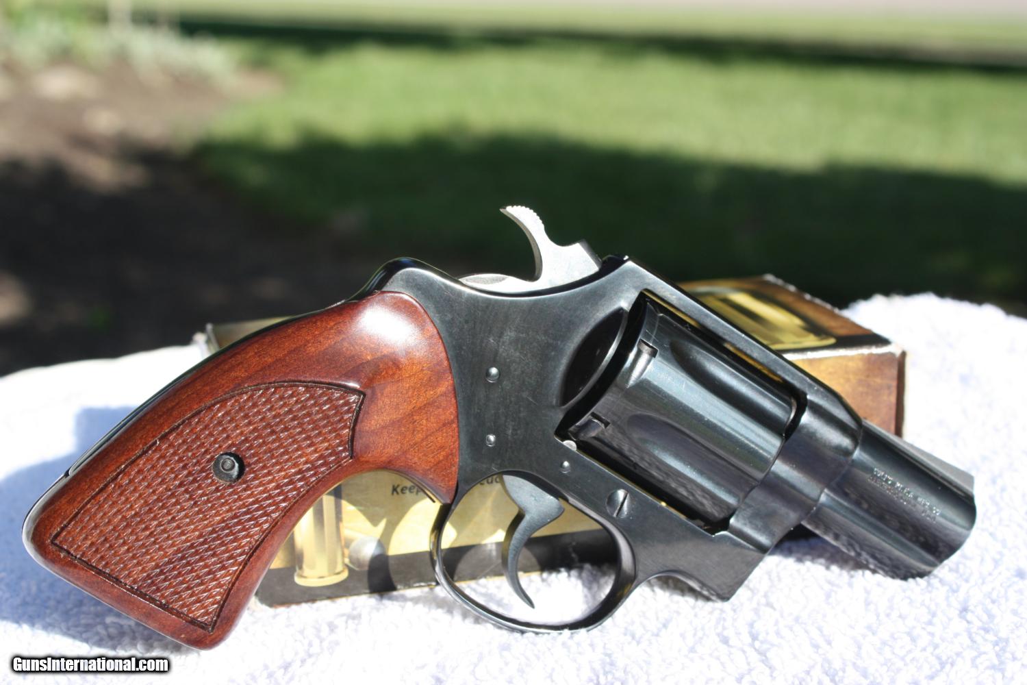 Description: Colt Detective Special chambered in .38 special. Original blue finish in excellent condition. Original factory wood grips near perfect condition. Screw heads are sharp. Crane and crane cut serial numbers match are match the box. Excellent Third Issue Detective Special. No Calif sales or where illegal. 50 Ship Fee SOLD |