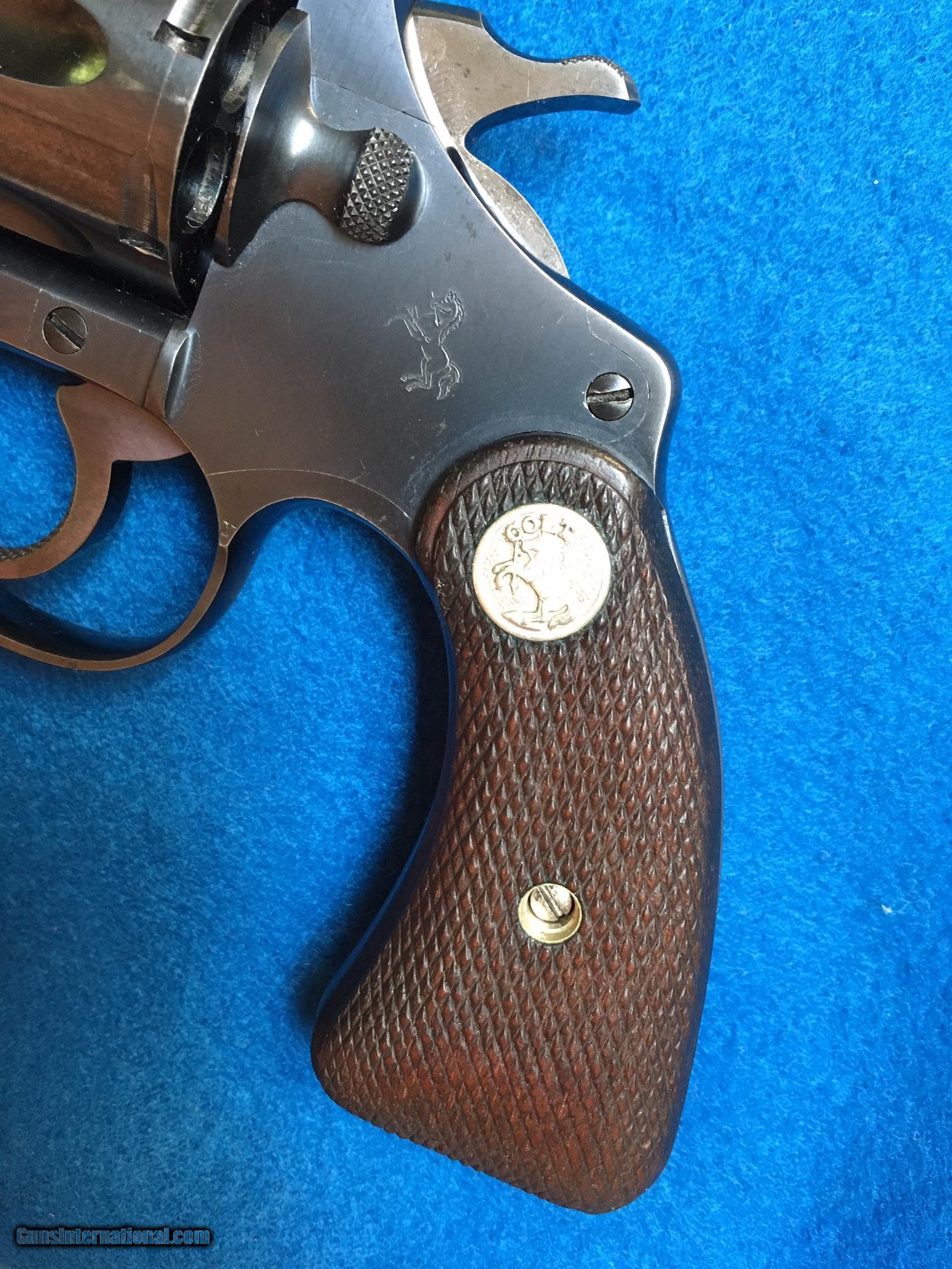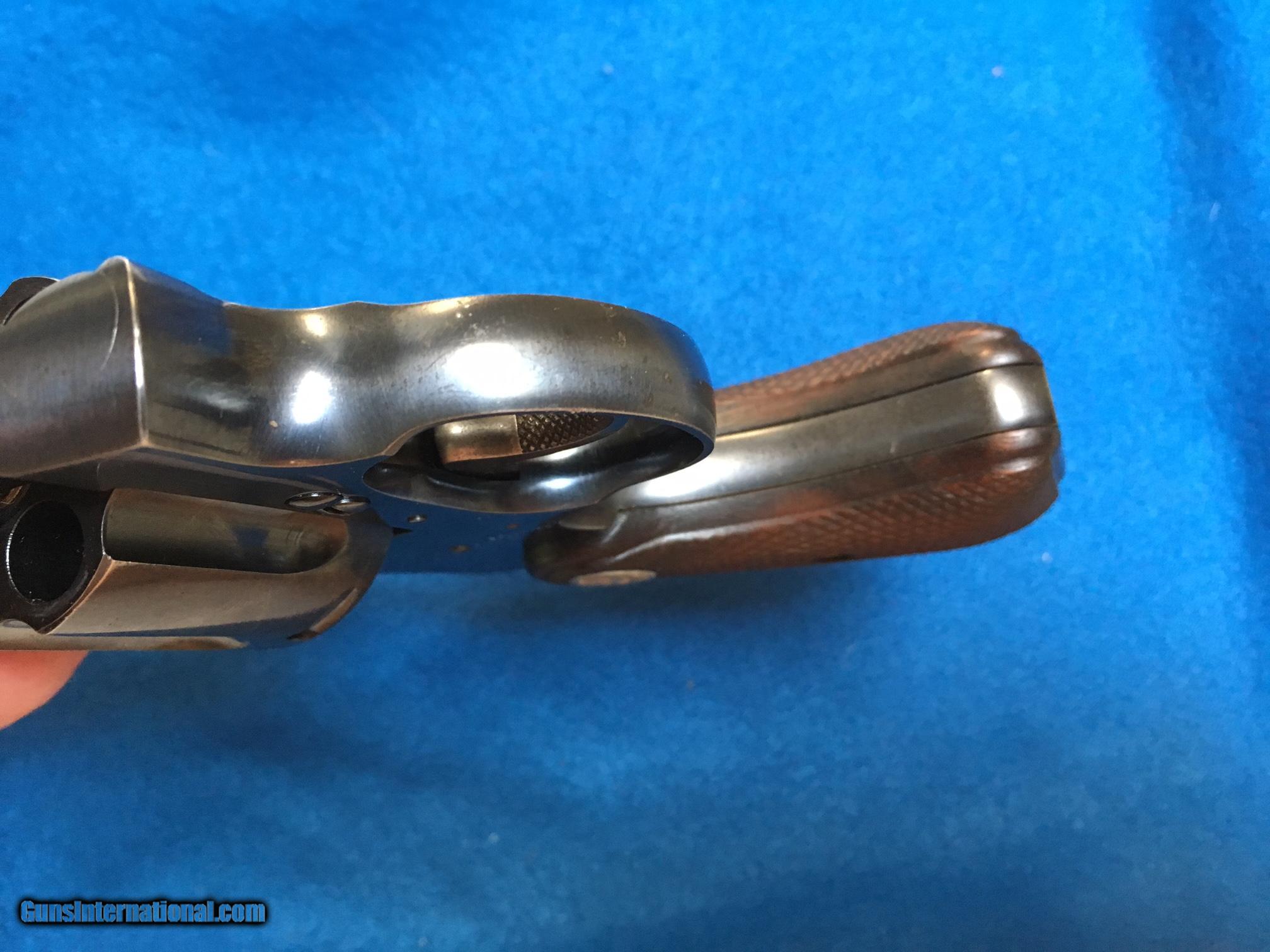 Description: Colt Detective Special, MFG in 1937, Ser# 453,488, Round Butt. .38 Special Cal. Checkerd Grips. This piece has a mint bore and cylinder, Locks up perfect in both single and double action.The grips a very nice with no ships or cracks and a percect fit. The finish is all original and in about 93 to 95 % A few freckles on the right side of the frame, a little strap wear on the front and back straps and some sharp edge wear as a gun 81 years might have. Mechanically tight and it looks as though it was not shot much as you can see on the breech and the front of the cylinder. A very nice example of a Dective Special in original condition from the 1930's. Call with any questions. Tom 612 859 5673 sorry no cal. sales SOLD Curio/Relic: Yes |
