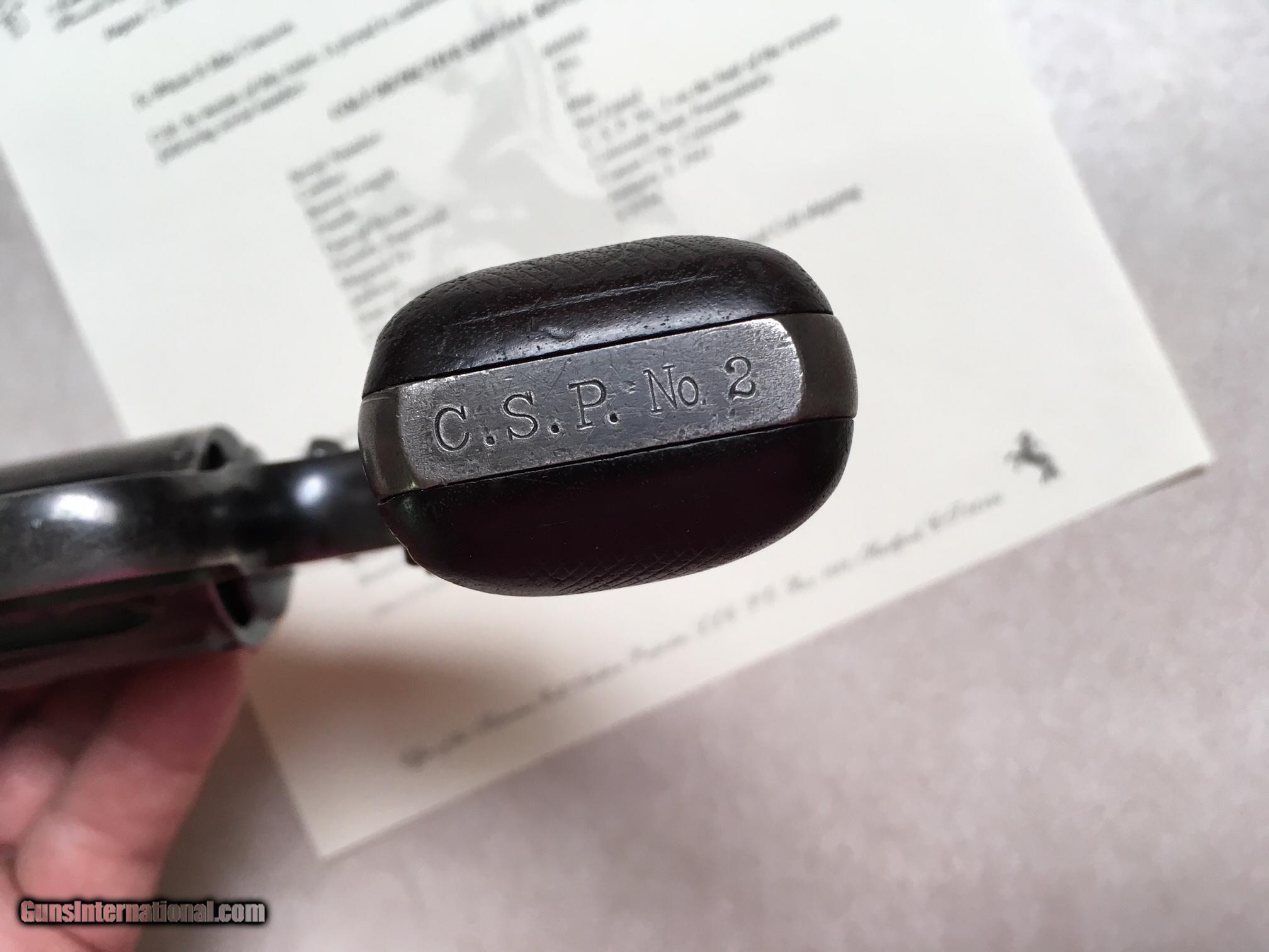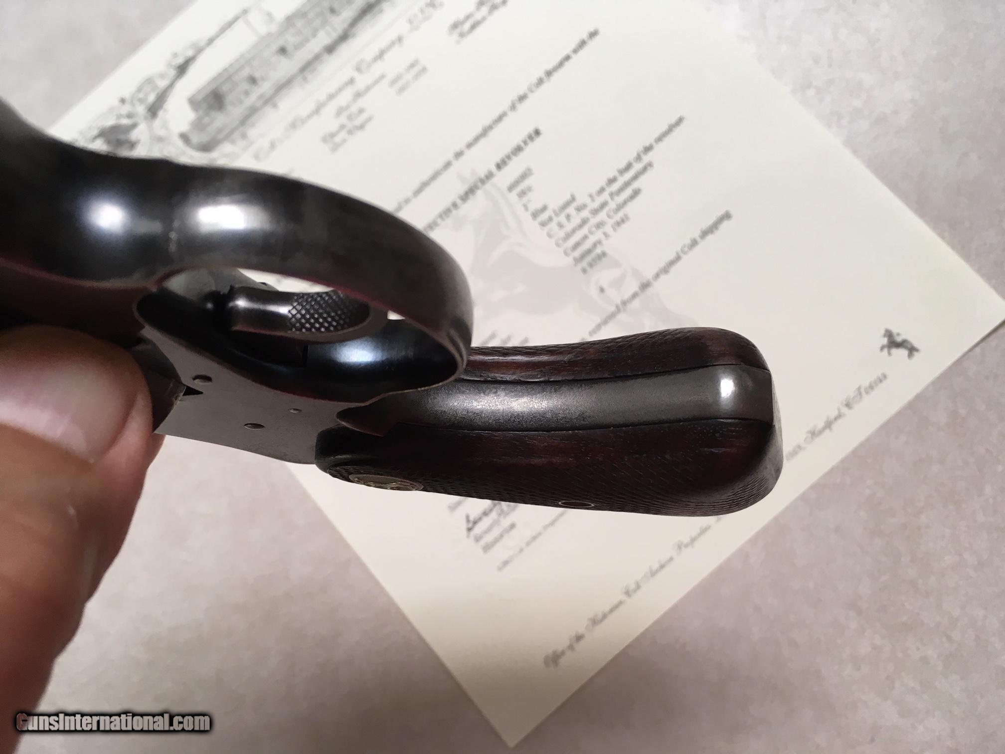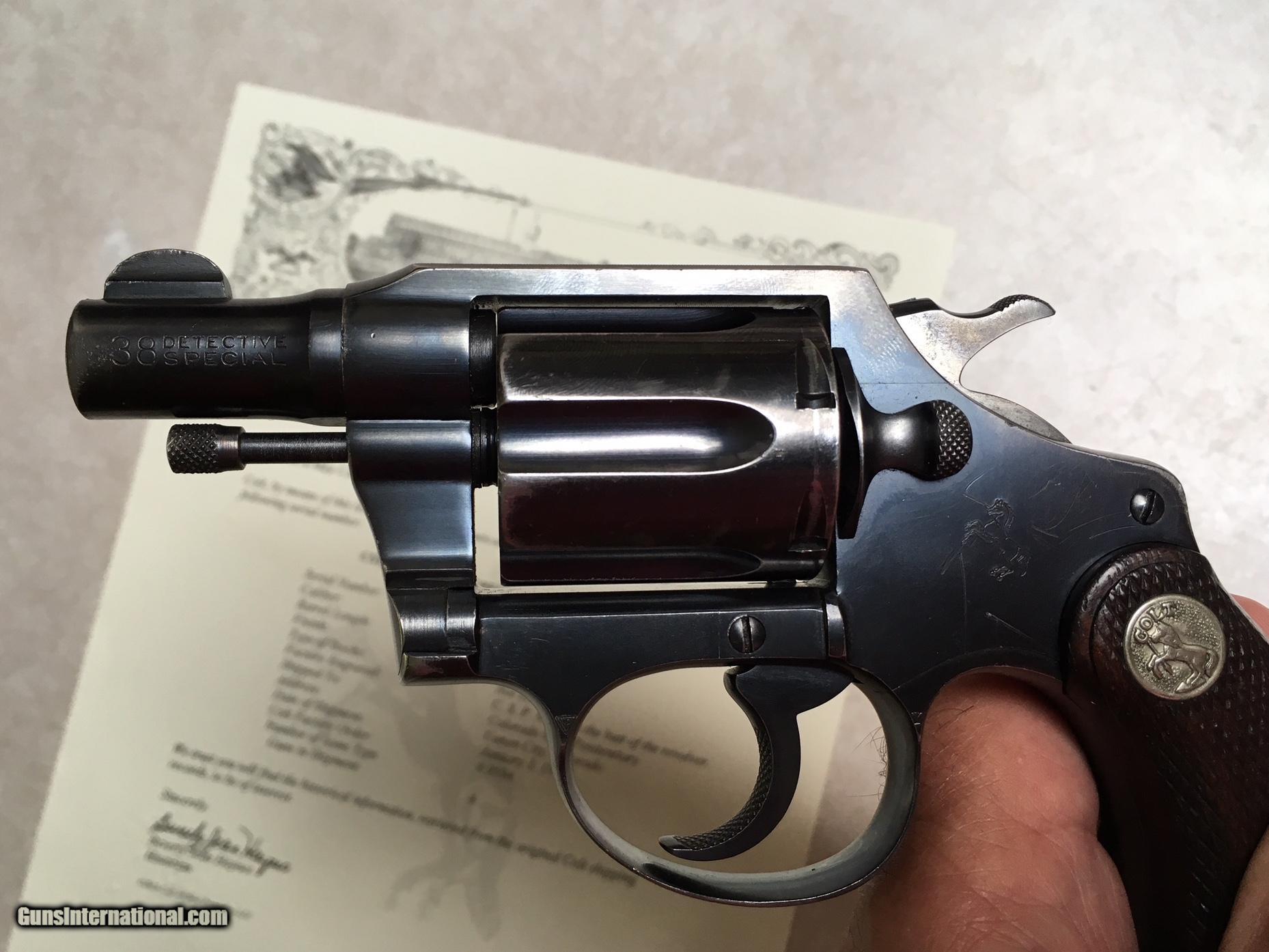 Description: This is a Colt Detective Special , Lettered to Colorado State Penitentiary Jan, 3 1941. Its a prison gun with Colt Factory Stamping on the butt, C.S.P.#2 . Canon City Colorado. in a shipment of 4 pieces. Its a well used piece on the front strap and back strap but the rest of the gun is in pretty nice condition. The cylinder and bore are excellent indicating it was not shot much at all, the breach looks almost new.the grips are warn but in solid shape. All in all a very shootable gun with some Prison history and Factory letter. Mfg in 1938 but shipped in 1941. Call with any questions Tom 612 859 5673 I do have 2 more Prison pieces if you are interested, call One Detective, one Bankers special SOLD Curio/Relic: Yes |