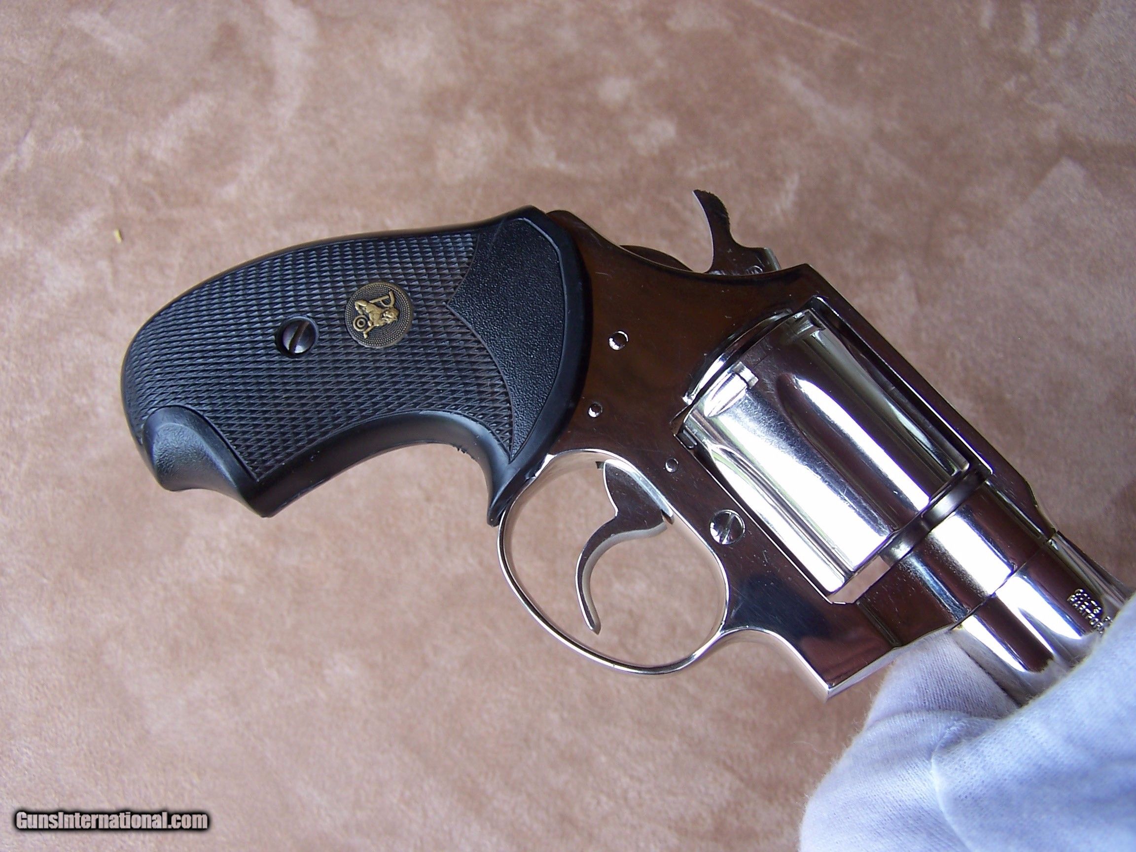 Description: A perfect carry gun for these times. Offered is a 4th Model Nickel Colt Detective Special from 1974. The gun remains in 98% condition and is mechanically perfect with an excellent bore and is equipped with a set of Pachmayr grips. There is a slight rub on the front right side of the barrel and this is shown in photo #5. In 1973 Colt released the Fourth Issue of the iconic Detective Special. This was the first major redesign of the Detective Special including changing the barrel to a new heavy version that added a shroud to cover the ejector rod and a long ramped front sight. The grips were changed with this 4th model to a new wrap-around style that completely covered the frame for a better feel. I offer a three day non-firing inspection period and always want the buyer to be satisfied with their purchase. The gun will be packed correctly and shipped via FedEx Air with insurance to your FFL dealer in the continental United States for $55 (California is extra because I have to ship through my local dealer). This gun requires an FFL license for transfer. I ship the following day after the payment arrives and provide tracking information. Please see my other Colts and various collectible firearms that I have listed. Thanks for your interest and please let me know if you have any questions. Price is $975.00 reduced to $850.00 because of a slight rub on the barrel. Please Note: A same as cash price Lay-A-Way plan is available on this gun. Please call to discuss. SOLD Manufacturer: Colt Model: Detective Special Serial Number: F39155 Barrel Length: 2 Caliber Info: .38 Special Condition: 99% Excellent Metal Condition: 99% Excellent Bore Condition: As New Action: Double Action Manufacture Date: 1974 |