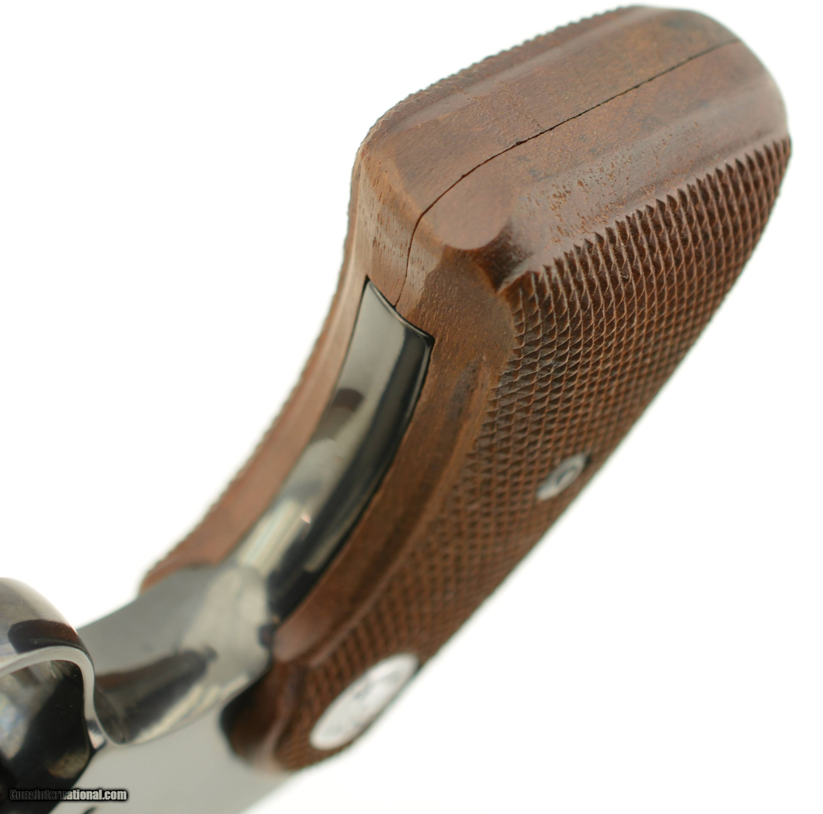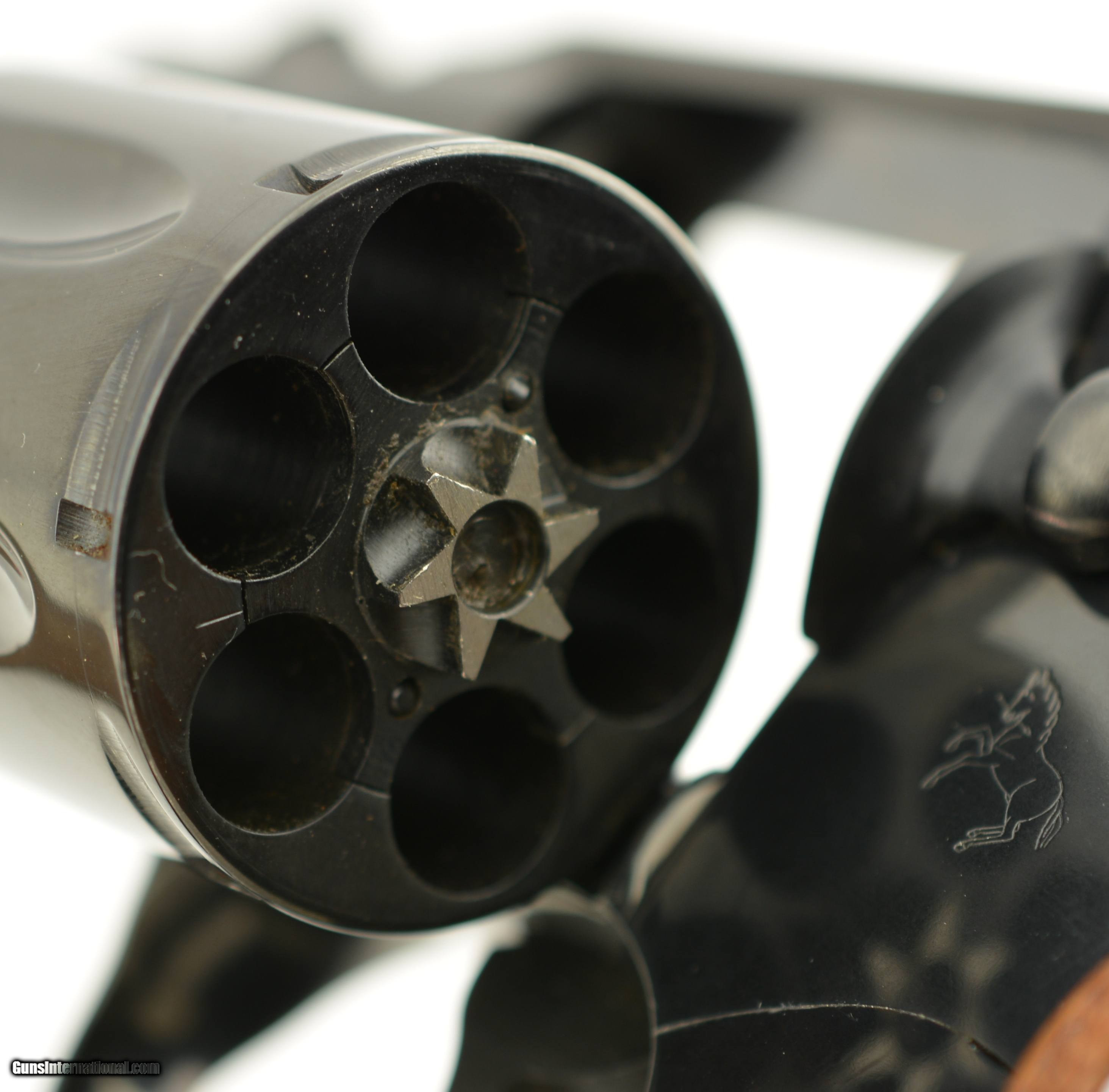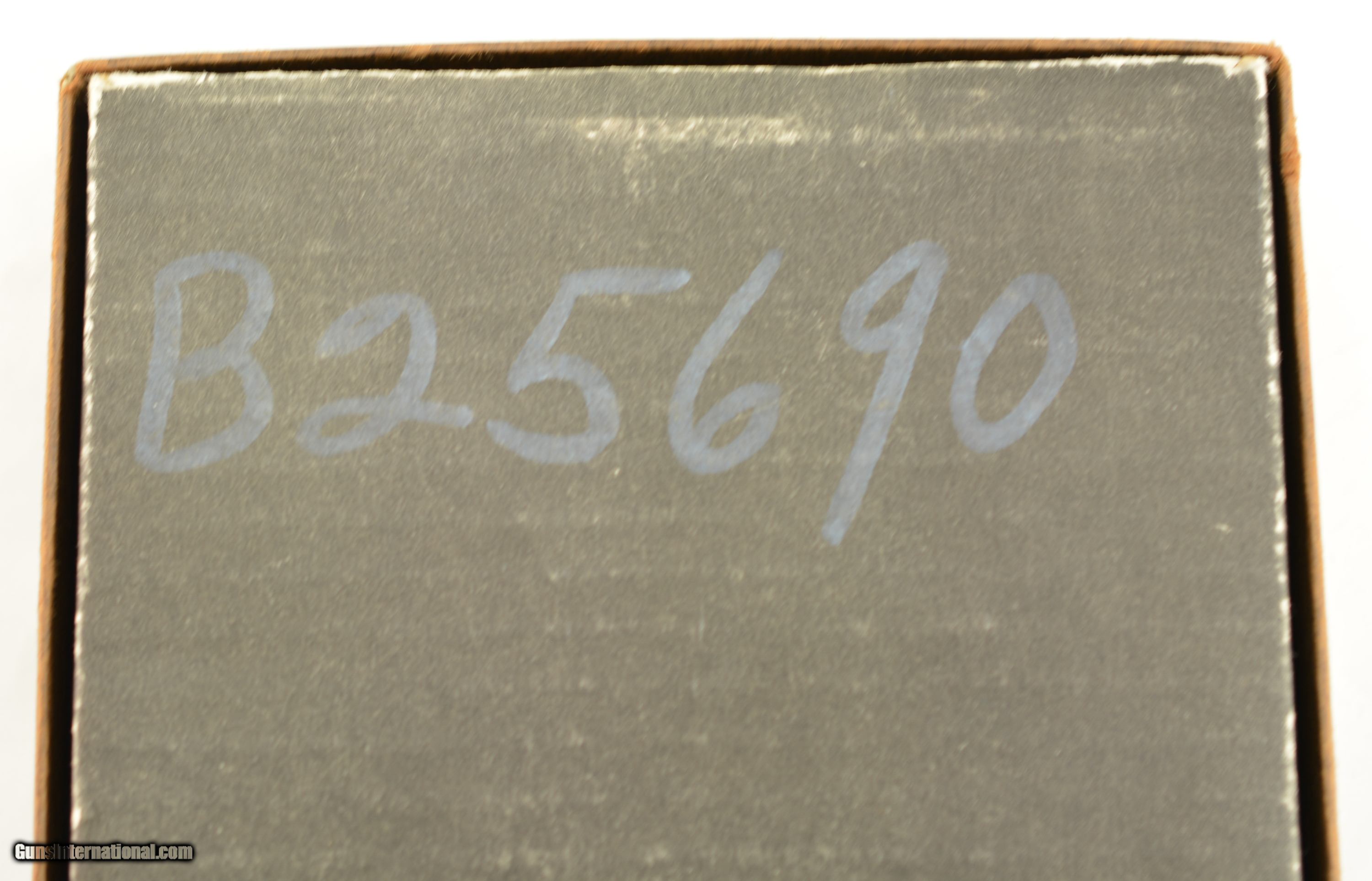 Description: Serial #B25690, .38 Special, 2" barrel with an excellent, bright bore. This is a 1971-made revolver that has retained virtually all of the original blue finish, and has only a very mild turn-ring attesting to any use. The only other finish loss occurs on the ejector rod, and some traces of freckling on the sides of the hammer. The checkered walnut Colt medallion grips are in excellent shape with almost no flattening of the points on either panel. The revolver is housed in the original, numbered Colt two-piece woodgrain box without papers, and is a simply excellent example of a desirable 2nd Issue Detective Special overall. FFL or C&R SOLD Curio/Relic: Yes Manufacturer: Colt Model: Detective Special Serial Number: B25690 Caliber Info: .38 Gauge Info: .38 |