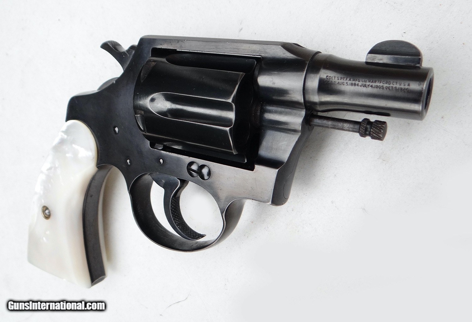 Description: An excellent original early - 1929 - example of the famous Colt 'Detective Special' .38 revolver. The ‘Detective Special’ was designed by Colt to fill the needs of police detectives and plainclothes officers in need of a compact sidearm in .38 special caliber. The first examples were produced in 1928 making this 1929 Colt is therefore an early example of its type. The ‘Detective Special’ became very popular with Lawmen and also developed quite a following among assorted gangsters, bootleggers, and others on both sides of the law during the ‘Roaring Twenties’ and throughout the dangerous cops & robbers days off the 1930s. The 'Detective Special' became famous as the ‘Snub-Nose-Colt’ in the folk lore of the period both in print and on movie screens. The great majority of early Colt ‘Detective Specials’ were the working guns of whatever side of the law their owners favored and consequently excellent original condition examples are pretty scarce. This 1929 ‘Detective Special’ is in excellent original condition. The steel surfaces retain 98% original factory blued finish with the slightest bit of high edge wear and pinpoint aging. The bore and mechanics are in excellent condition. The of-the-period genuine mother of pearl grips have especially fine color, graining, and patina. This deluxe ’Snub-Nose-Colt’ could have been the pet of someone who liked bullet proof Cadillacs and Stutz Bearcat roadsters. These days it would go well in any collection of high condition Colt revolvers and be hard to up-grade. This Colt has been in a private collection since the 1990s. SOLD Curio/Relic: Yes Handgun Caliber: .38 Special Manufacturer: Colt Model: Detective Special Barrel Length: 2 Condition: excellent Metal Condition: excellent Bore Condition: excellent Manufacture Date: 1929 |