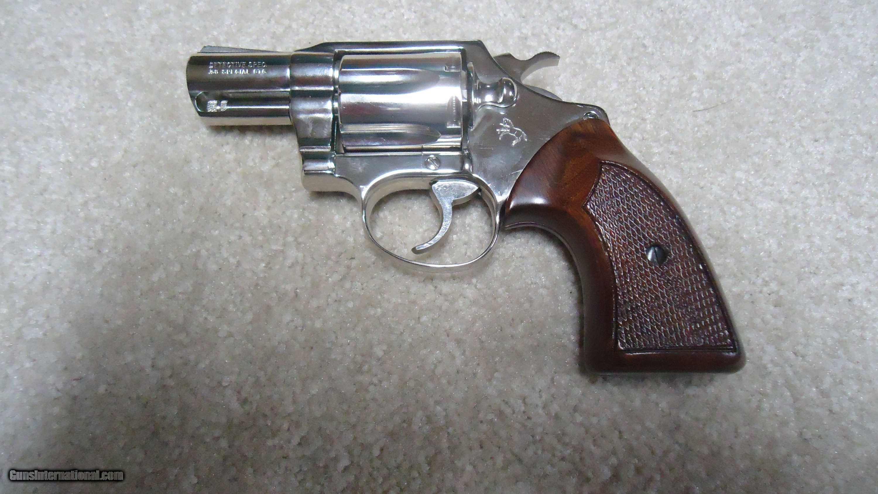 Description: LAST STYLE DETECTIVE SPECIAL .38 SPECIAL IN SCARCE NICKEL FINISH, #SH3XXX, MADE 1973-1986. These fine "Snubby" revolvers don't often show up in nickel and this one is in about new condition inside and out. With their oversize grips and full lug heavy barrel, these have a great feel. Just needs a box! SOLD Manufacturer: COLT Model: DETECTIVE SPECIAL Serial Number: SH3XXX Barrel Length: 2 Condition: LIKE NEW |