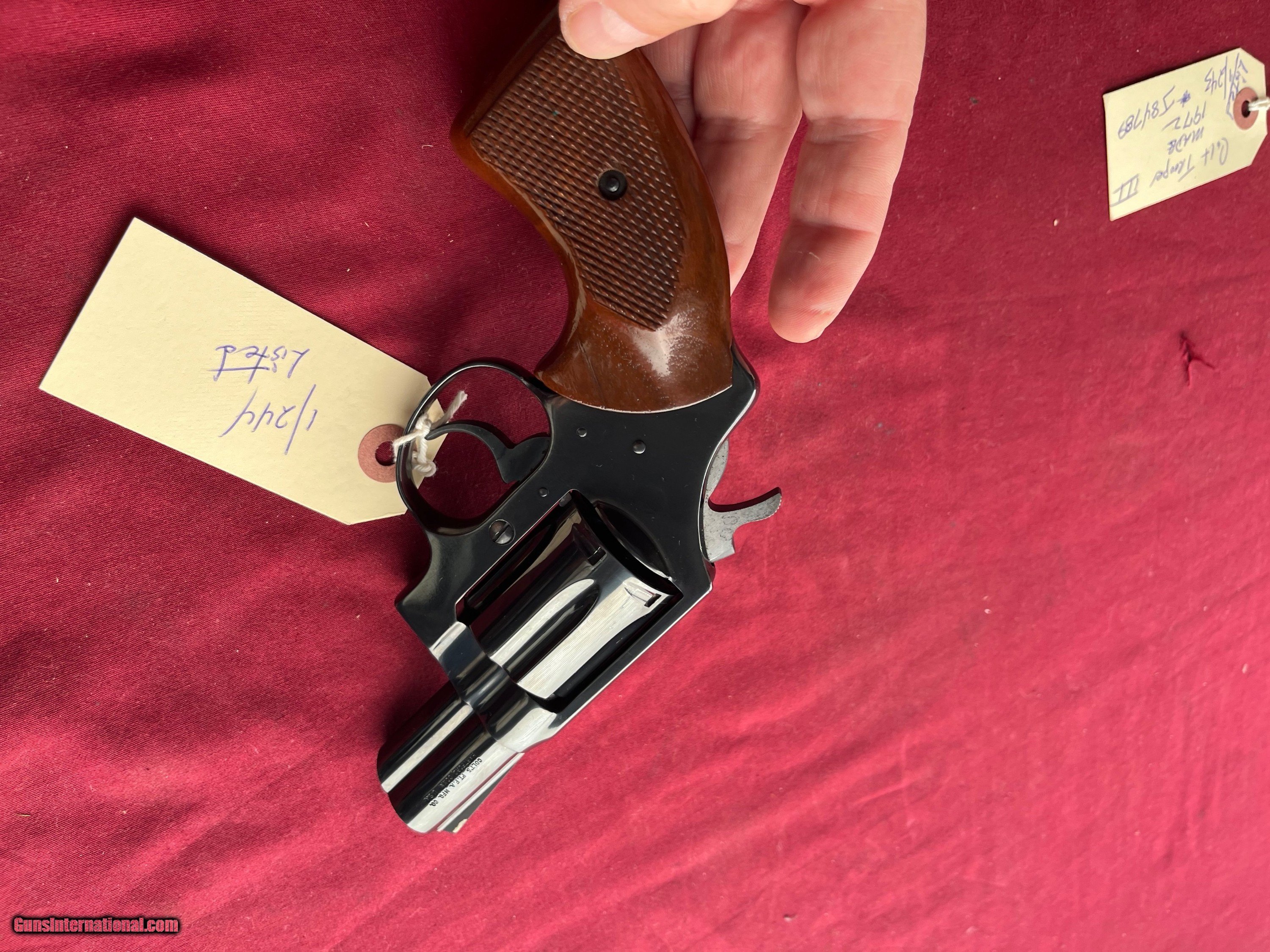 Description: VERY NICE COLT DETECTIVE SPECIAL REVOLVER . SER# 49445 M . MADE IN 1977. CALIBER 38 SPECIAL . VERY NICE ORIGINAL BLUE FINISH . VERY NICE SOLID ORIGINAL GRIPS. TIGHT CRISP ACTION THAT FUNCTIONS FINE. EASTERN BRANCH FIREARMS ADD 35.00 SHIPPING – HANDGUN USPS PRIORTY MAIL ADD 35.00 SHIPPING – LONG GUNS GROUND SHIPPING Questions e-mail or call Glen at Eastern Branch Firearms 207-215-5021 TERMS – PLEASE READ BEFORE I DO NOT HAVE A LAYAWAY OPTION ( WE ACCEPT CREDIT CARDS ) -- I GET ALOT OF REQUEST FOR TRADES, I WOULD PERFER NOT TO DO TRADES ON MY INTERNET LISTINGS PAYMENT OPTIONS- We accept money orders, cashier’s checks , bank checks. sorry no personal checks. We accept all major credit cards please add 3% to the ’s cash discount price.(Maine Residents to pay 5% sales tax) .Handguns and long guns do need to be shipped separate. PLEASE do not send payment via FED EX . USPS & UPS are fine. Thank you. We include a signed copy of our FFL with each firearm shipped. SAFTY NOTICE- Buyer is solely responsible for determining that a used gun is safe to shoot. The firearms offered have not been test fired but have been given a visual inspection only for purposes. It is a requirement that every used firearm is inspected by a qualified gunsmith before firing. By , the buyer agrees to hold seller harmless against damages, injury, or death caused by defective merchandise. RETURN POLICY- All firearms come with a 3-day non firing , non messing with ( turning srews ,taking apart,removing parts, scoping. firing, cleaning or messing with in anyway) inspection/return privilege.Inspection is based on a visual review of the gun to confirm the gun is in the condition stated. In the case of a return, buyer pays all shipping charges & if paid for with a credit card buyer absorbs the 3% credit card charges . So please ask questions BEFORE you bid. Thanks for Looking and Good Luck!! U.S. sales only, no exports…this includes antiques. I will ship to third party for exporting SOLD |