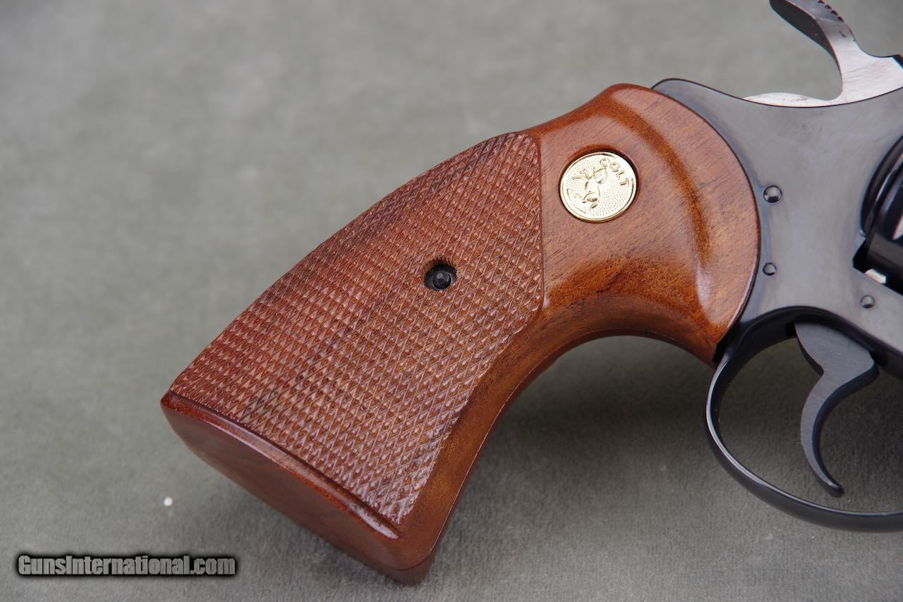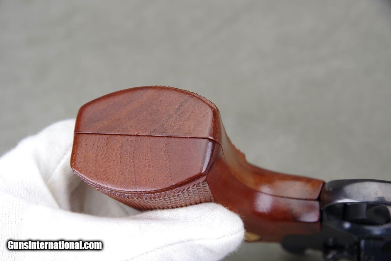 Description: 1981 Colt Diamondback chamberred in .22LR with a 4 inch barrel and factory blue finish. This revolver is new in the original box numbered to the gun with all of the paperwork. It is a no excuses collector great example. You will still see some of the factory grease on it in the photos as we only lightly wiped it down. It only shows a very slightest of superficial handling and overall the finish rates 99% + The factory target grips are in the same excellent condition as the gun itself with sharp checkers throughout. This is a package that really can not be upgraded. SOLD Handgun Caliber: .22 Long Rifle Manufacturer: Colt Model: Diamondback Barrel Length: 4 |