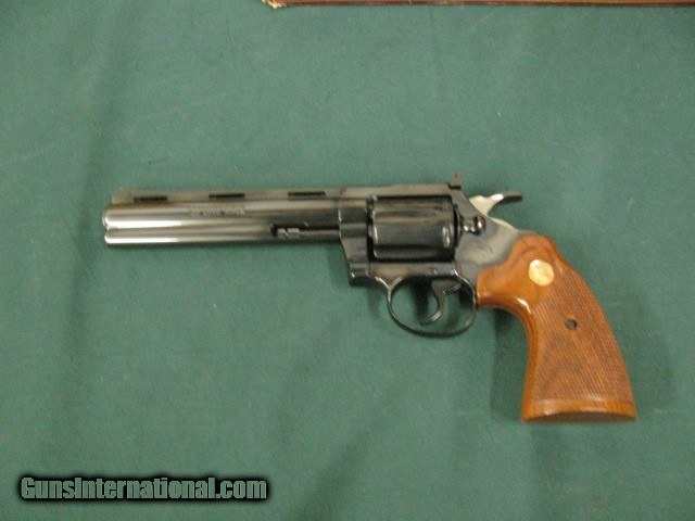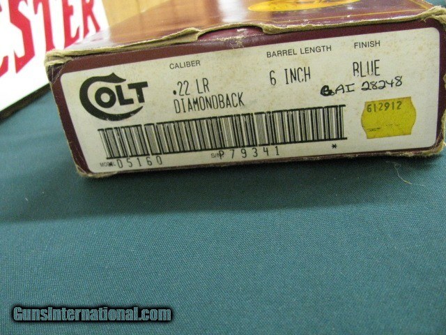 6971 Colt Diamondback 22 Long Rifle 6 inch barrel, blue, wood grips, NEW IN BOX, NOT A MARK ON IT. cylinder never turned,box end cap matches revolver