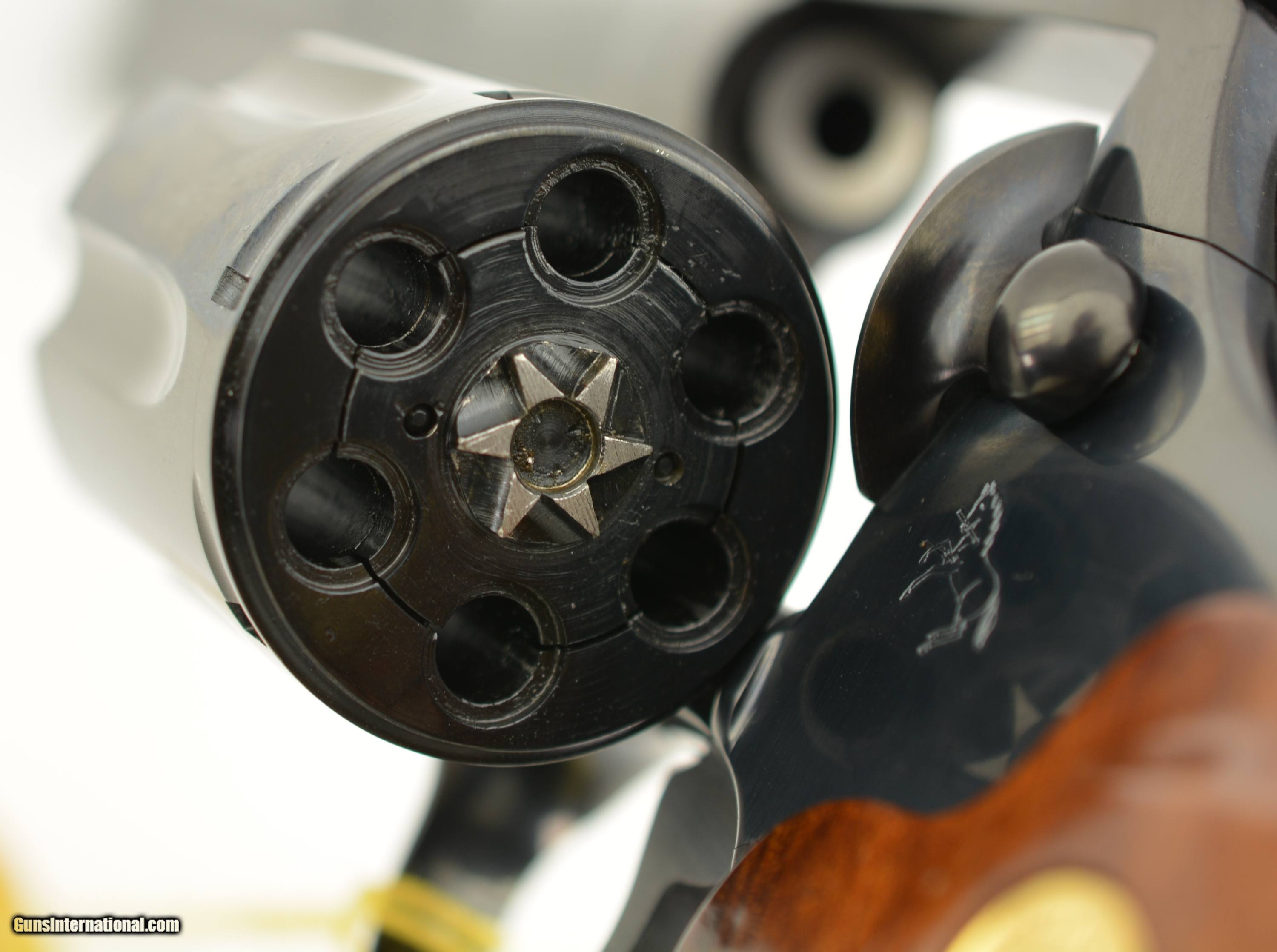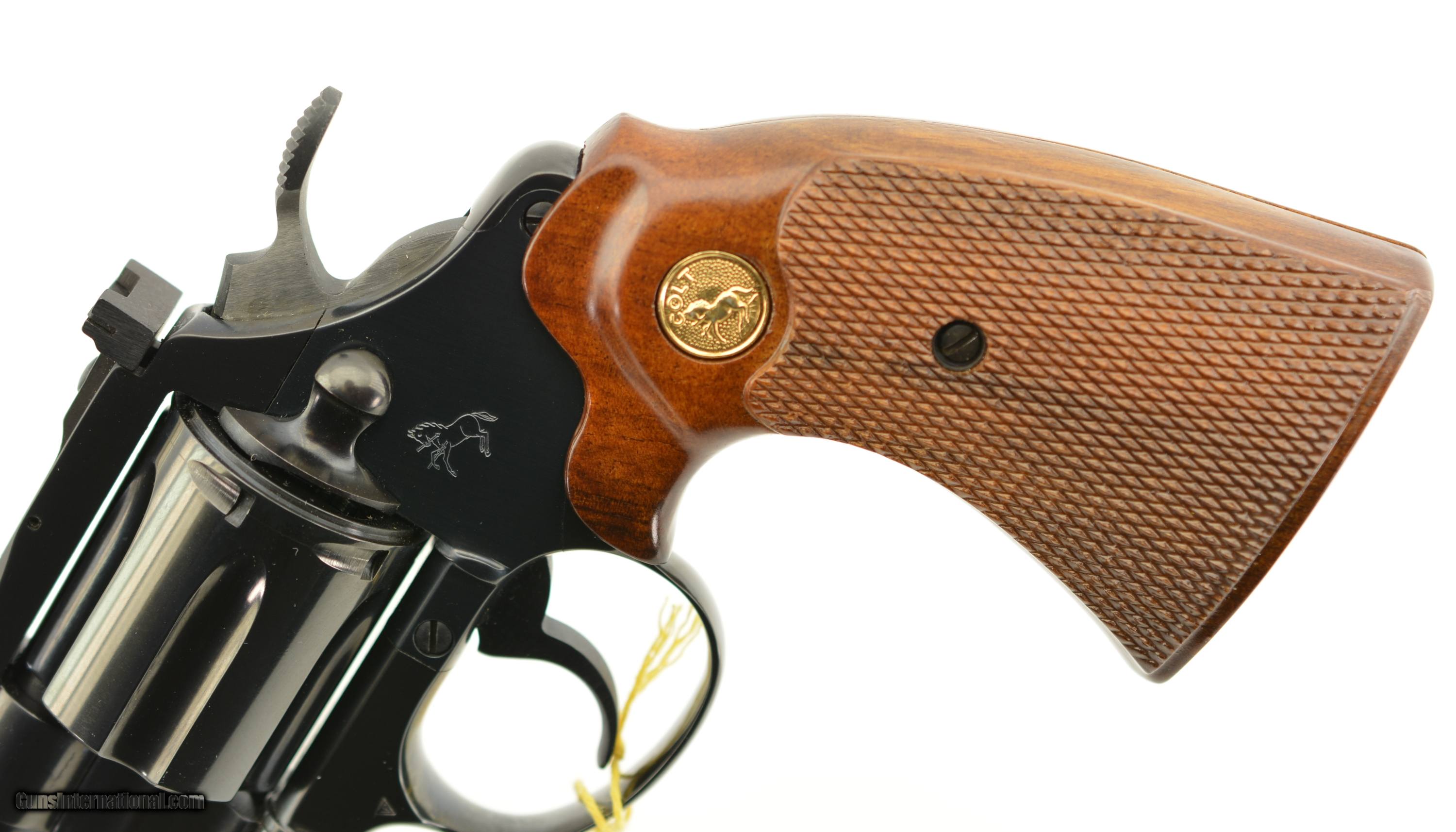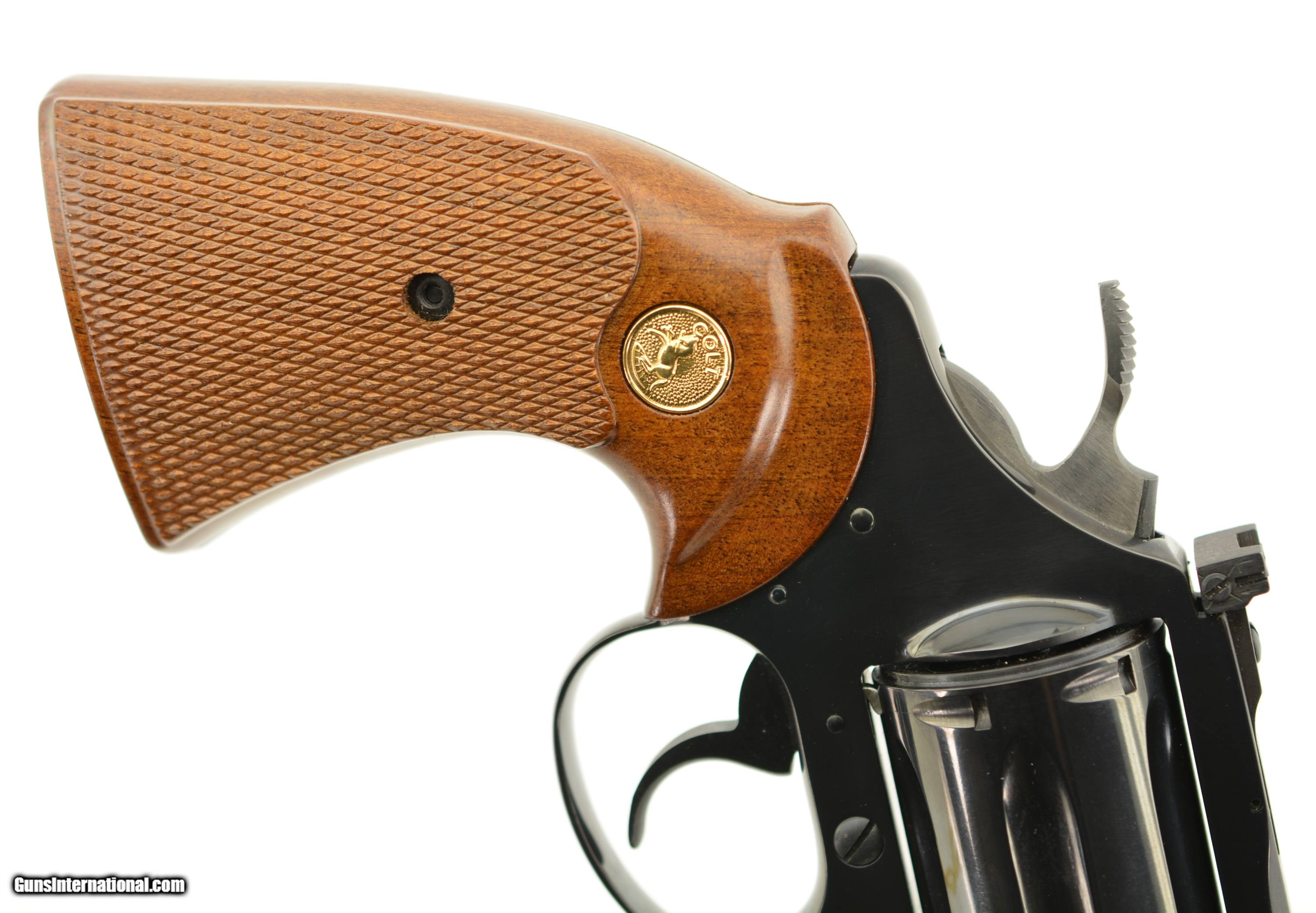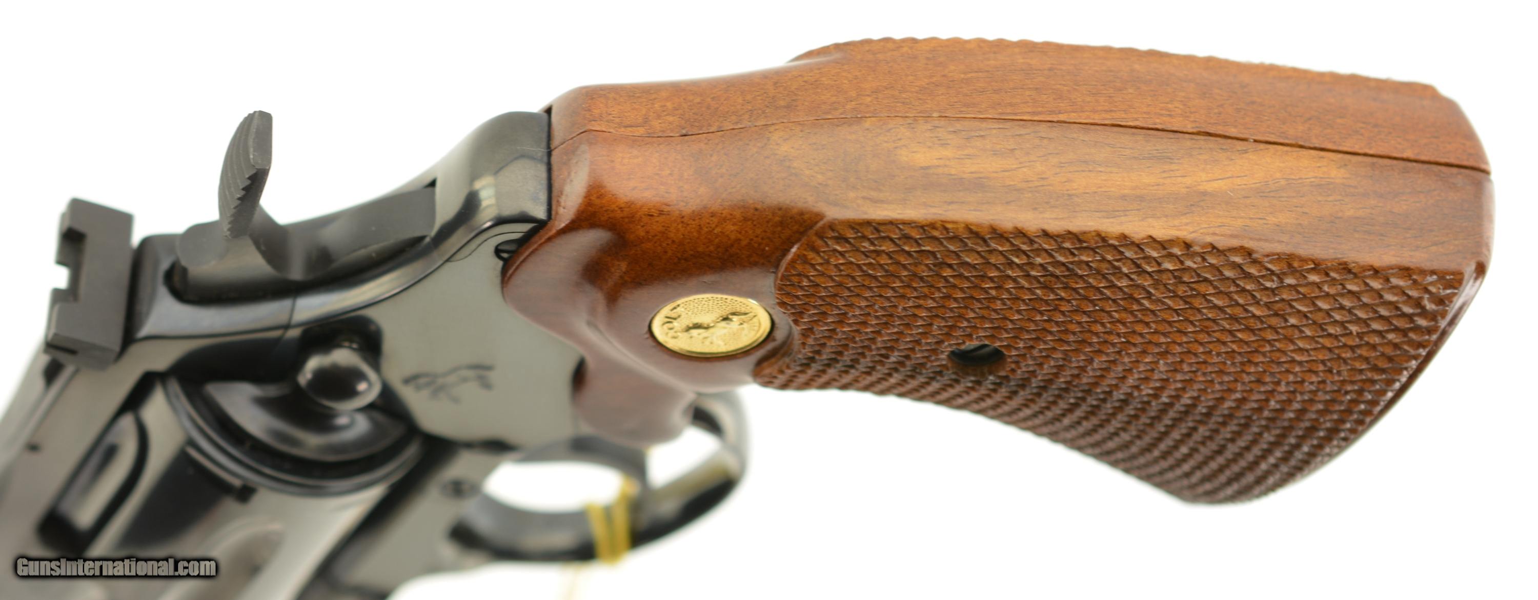 Description: Serial #R47872, .22 LR, 6" barrel with an excellent, bright bore. This is a late production revolver that retains practically all of the original blue finish with only a very mild turn-ring on the cylinder attesting to any use. The checkered walnut Colt medallion grips are likewise in practically new condition without any noticeable wear or handling marks. The lock-up is tight and the action functions flawlessly. The revolver comes with the original Colt woodgrain cardboard and styrofoam box with original papers and hang-tag. This is simply a superb .22 caliber Diamondback in little-used condition. FFL or C&R SOLD Manufacturer: Colt Model: Diamondback Serial Number: R47872 Caliber Info: .22 Gauge Info: .22 |
