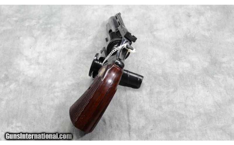 Description: SOLD Caliber Info: .22 long rifle Chambers: 6 shot revolver. Metal Condition: Excellent, Wood Condition: Excellent Bore Condition: Bright and shiny Barrels: 4 Inch. Stock: Checkered walnut Weight: 2 lbs -2 oz Sights: Post and adjustible notch. Extras: Box, manual Item Location: Rogers,, MN |