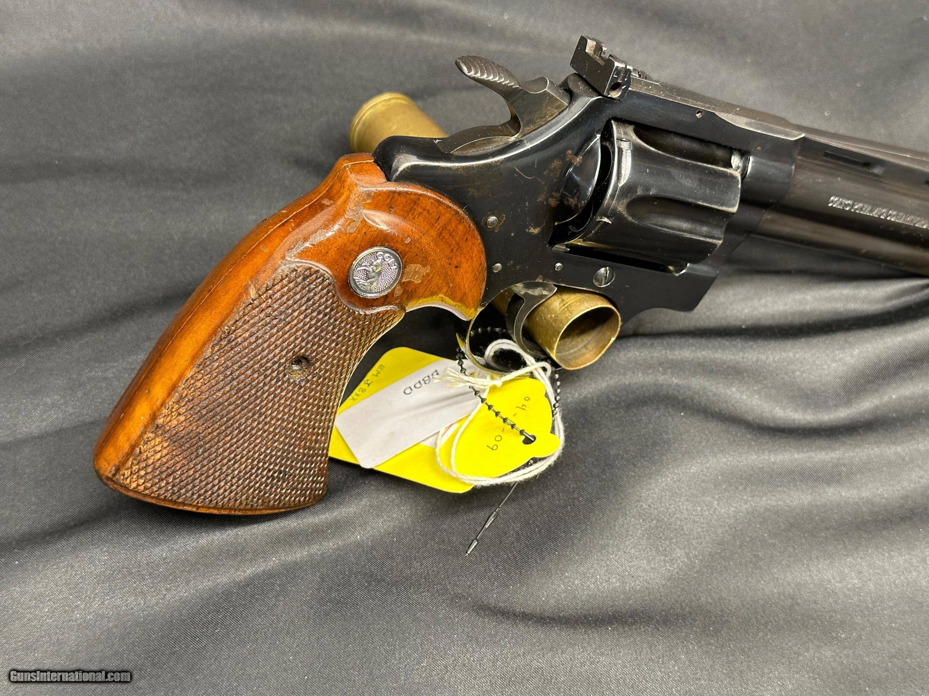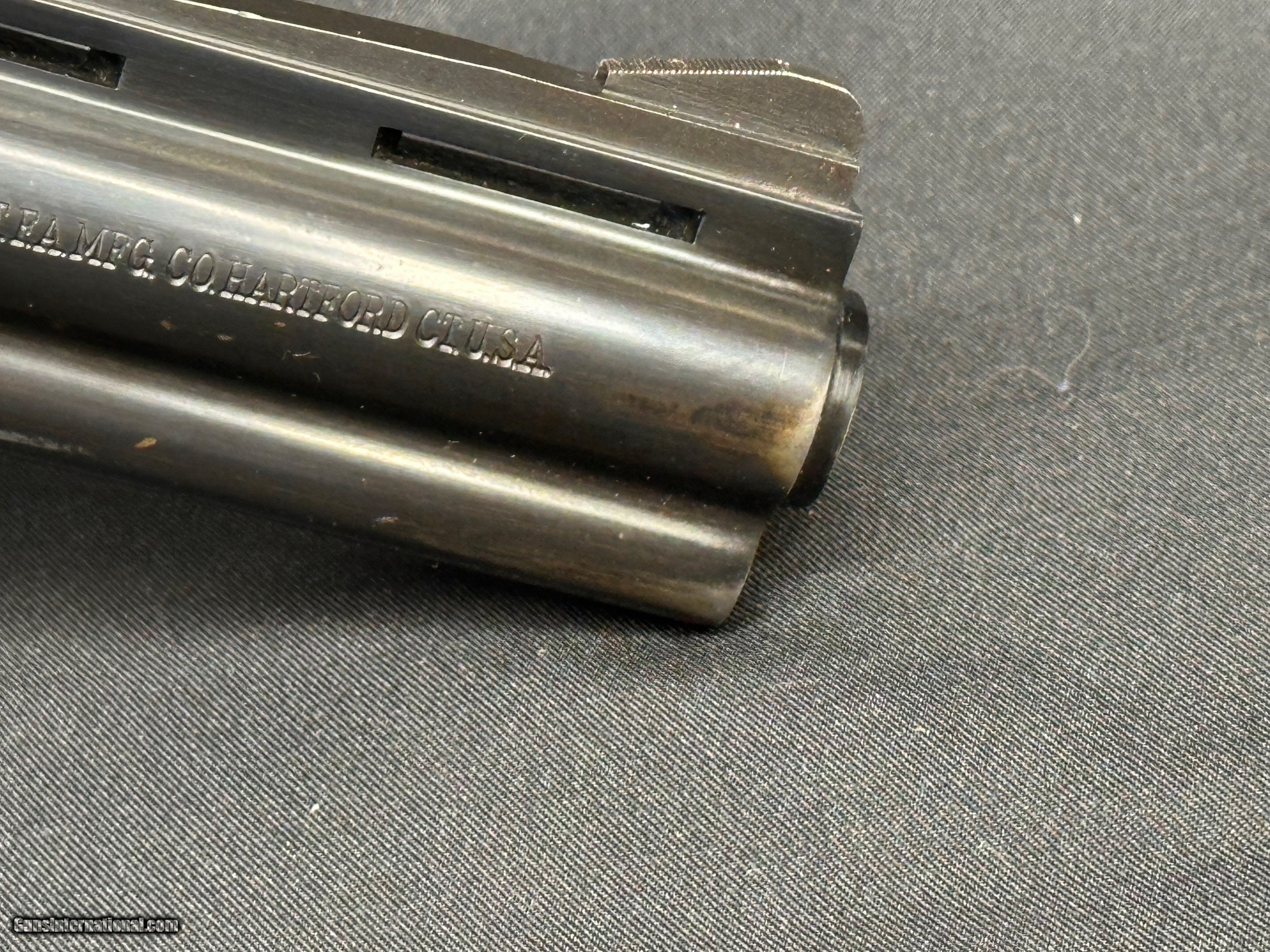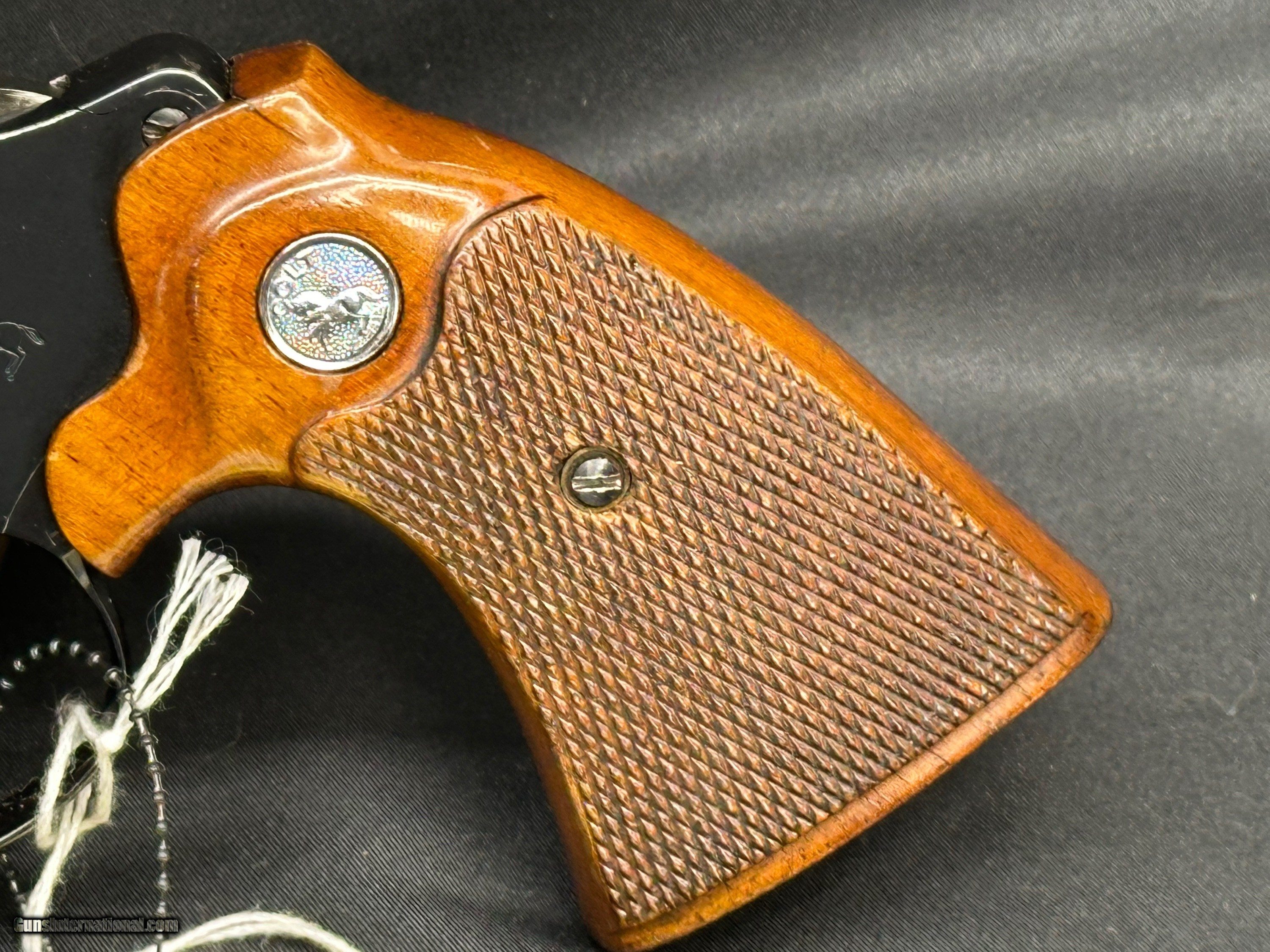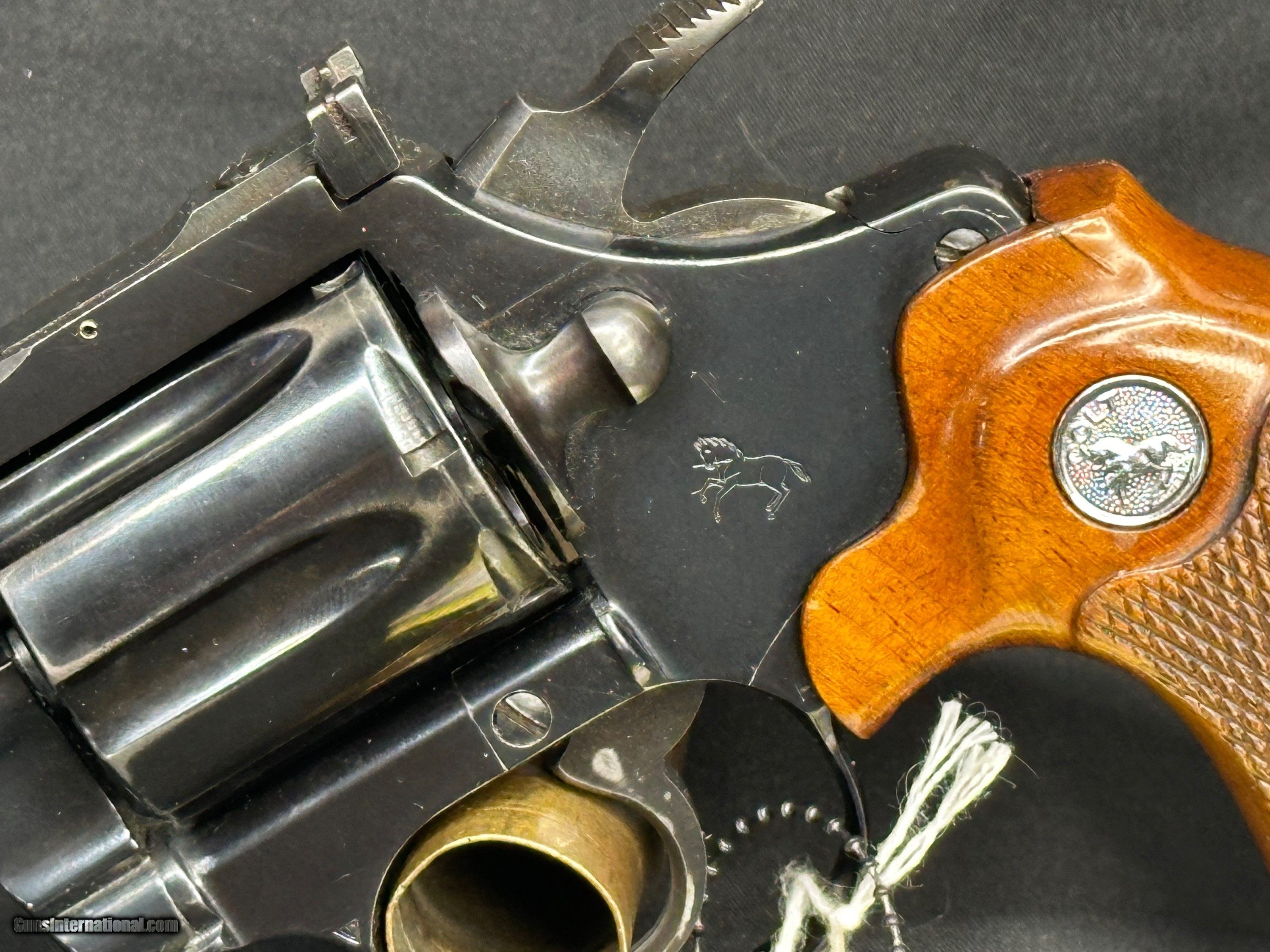 Description: This is a Colt Diamondback manufactured in 1970 Timed perfectly, Nice smoth double action trigger pull and crisp single action. bluing has some holster muzzle wear and cylender wear and some light rust pitting on the right side of the frame. The grips are in good condition with some small finish chips on the right side and light handling marks on both sides. Mechanically excellent. Looks to have been caried more than shot. The bore is in excellent condition with a bright mirror like internal finish. Flat 25.00 shipping fee Price reflects a 3% cash discount. Maine residents must add 5.5% sales tax SOLD Handgun Caliber: .38 Special Manufacturer: Colt Model: Diamondback Serial Number: D41810 Barrel Length: 4 Condition: Good- Very Good Metal Condition: Good- Very Good Wood Condition: Good- Very Good Bore Condition: Excellent Action: Single - Double Manufacture Date: 1970 Item Location: Buxton Maine |