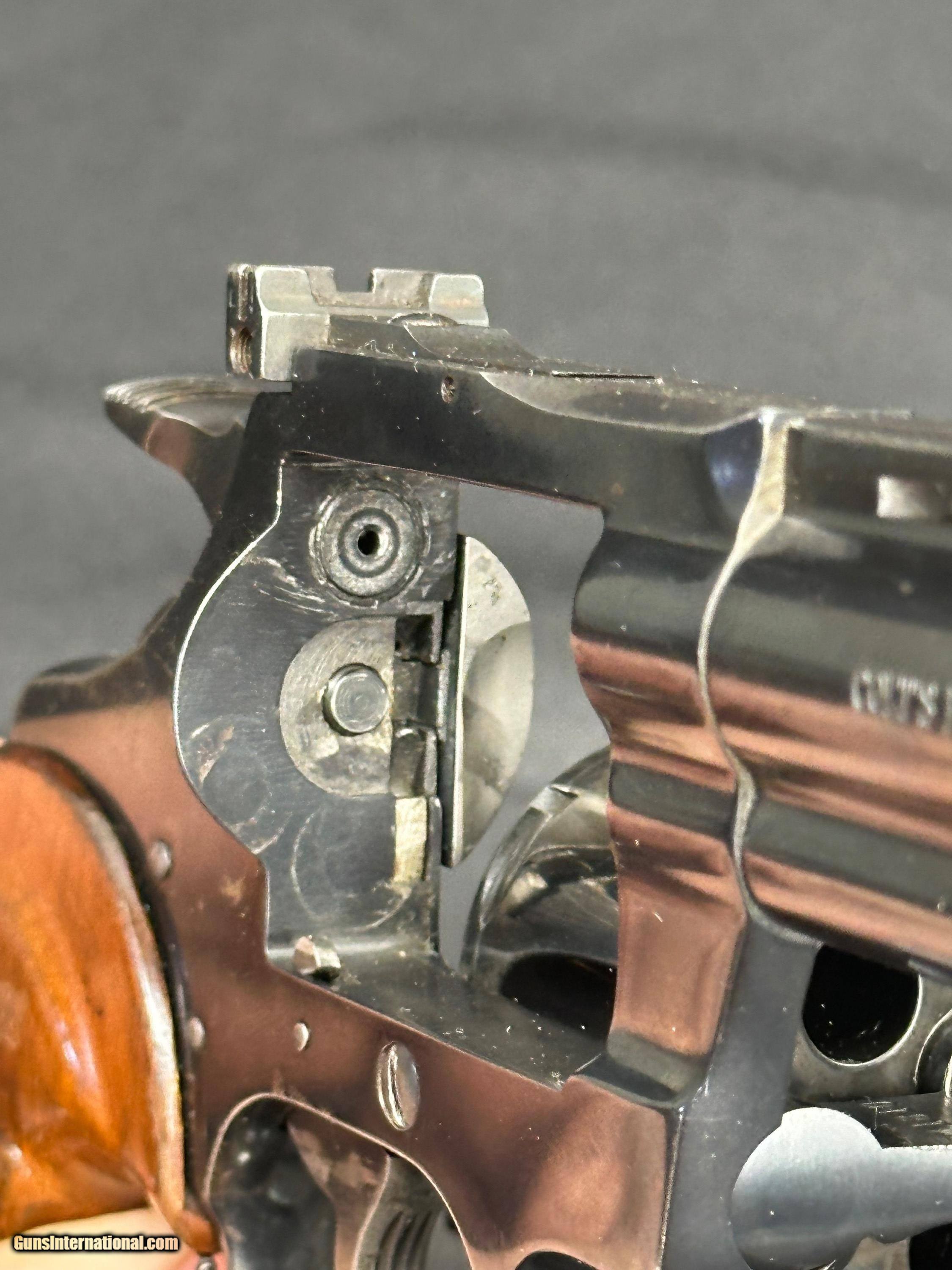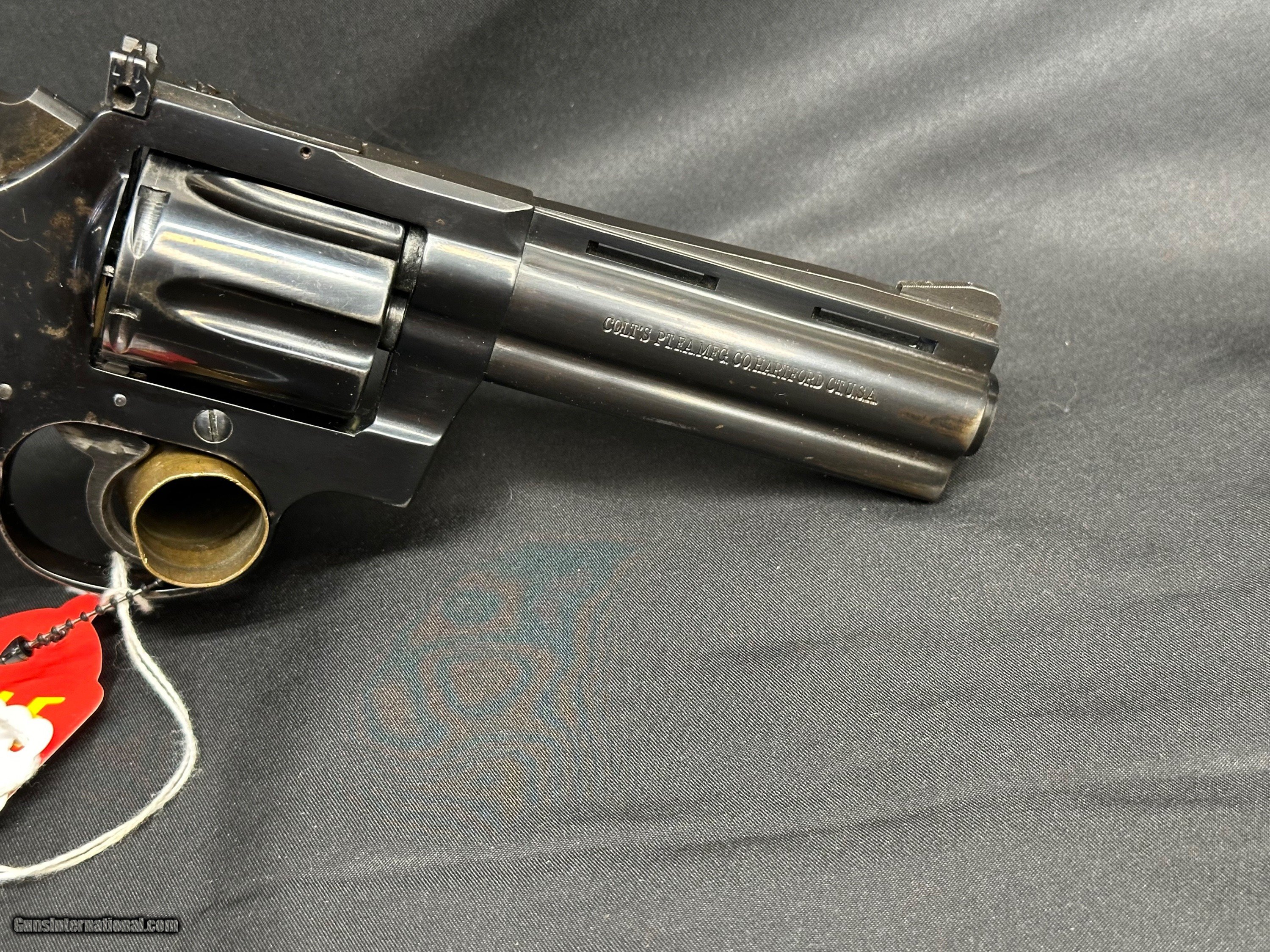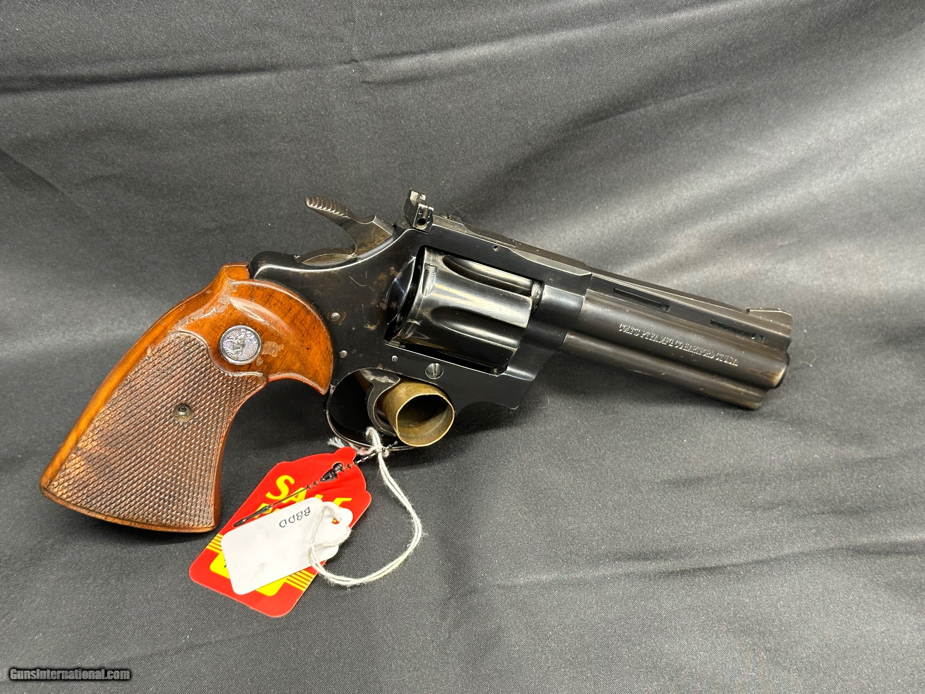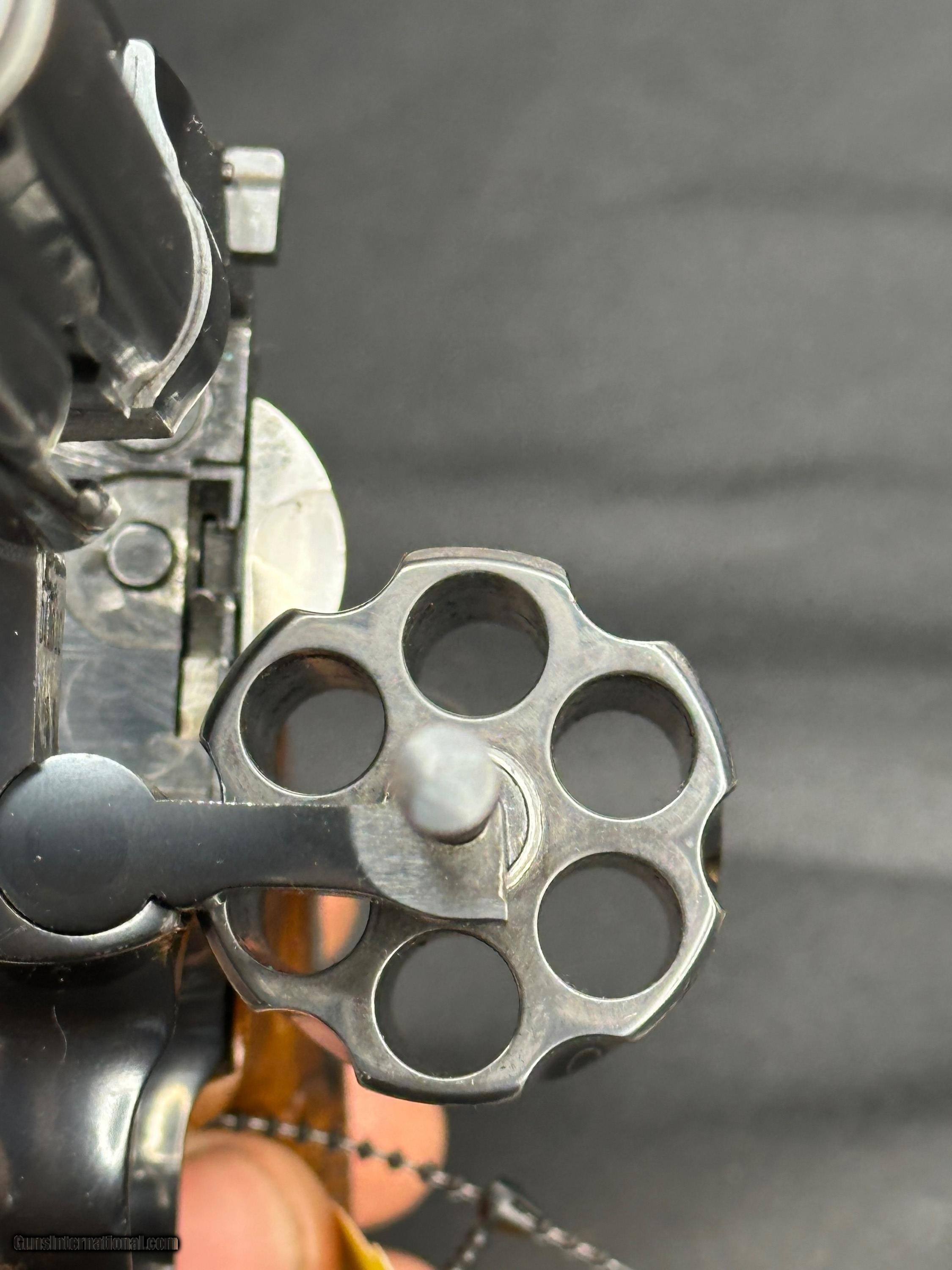 Description: This is a Colt Diamondback manufactured in 1970 Timed perfectly, Nice smoth double action trigger pull and crisp single action. bluing has some holster muzzle wear and cylender wear and some light rust pitting on the right side of the frame. The grips are in good condition with some small finish chips on the right side and light handling marks on both sides. Mechanically excellent. Looks to have been caried more than shot. The bore is in excellent condition with a bright mirror like internal finish. Flat 25.00 shipping fee Price reflects a 3% cash discount. Maine residents must add 5.5% sales tax SOLD Handgun Caliber: .38 Special Manufacturer: Colt Model: Diamondback Serial Number: D41810 Barrel Length: 4 Condition: Good- Very Good Metal Condition: Good- Very Good Wood Condition: Good- Very Good Bore Condition: Excellent Action: Single - Double Manufacture Date: 1970 Item Location: Buxton Maine |