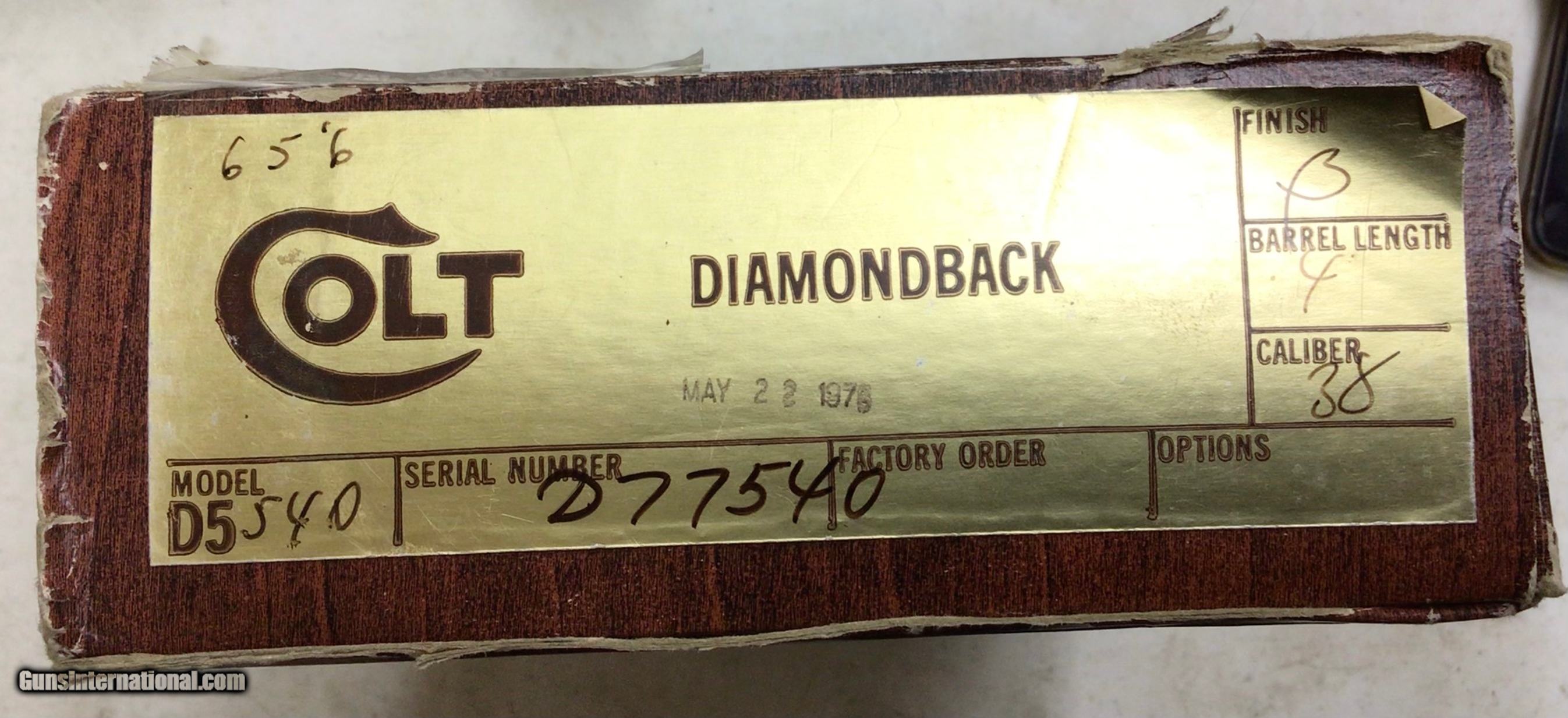Colt Diamondback 1976 .38 Spl. 4” Blued Barrel Original box and papers