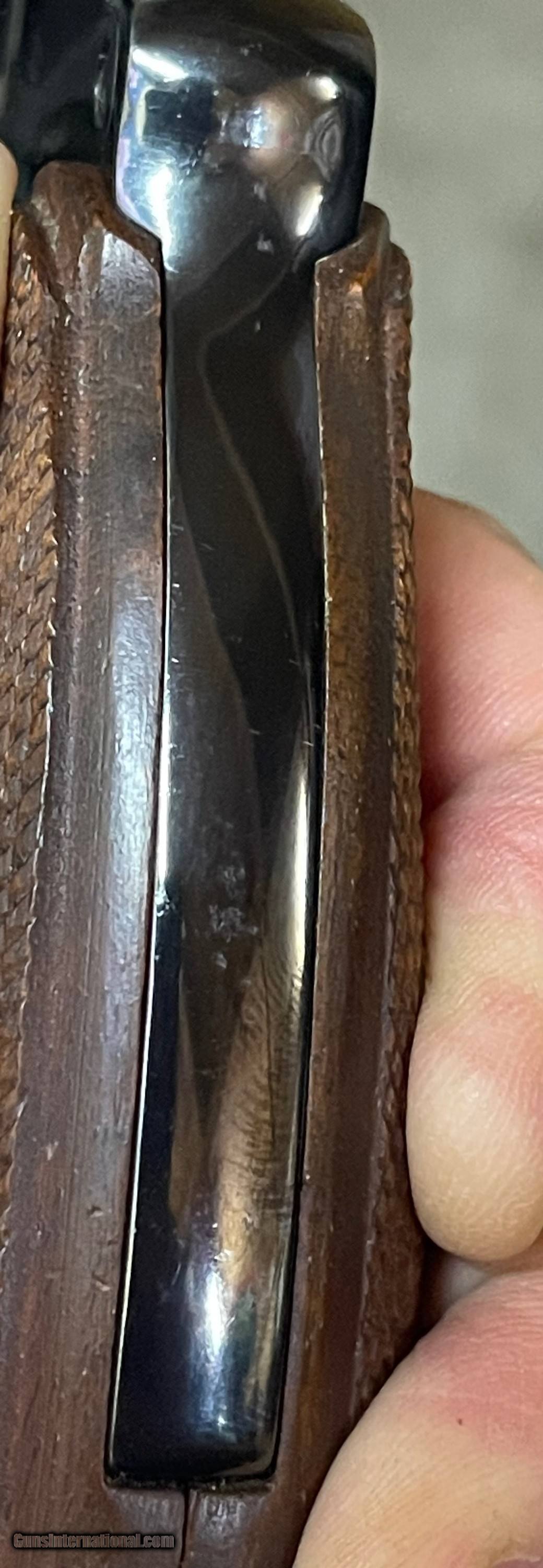 Description: A rare piece to find these days: a snub Diamondback! This .38 special features 2 1/2 in ventilated rib barrel, blue finish, service wood grips, target adjustable sights, and original numbered box. The booklet is dated 1981but the gun is a 1976 model. There is some freckling on the cylinder, backstrap, and left side frame (see pics). Please email with questions. Shipping and insurance included (west coast add $75). Popular payment apps accepted. SOLD Manufacturer: Colt Model: Diamondback Barrel Length: 2 1/2 inch Condition: Used Metal Condition: Very good Wood Condition: Excellent Bore Condition: Excellent Action: Da, sa Rib: Ventilated Finish: Blue Sights: Target Manufacture Date: 1976 Item Location: 37075 |