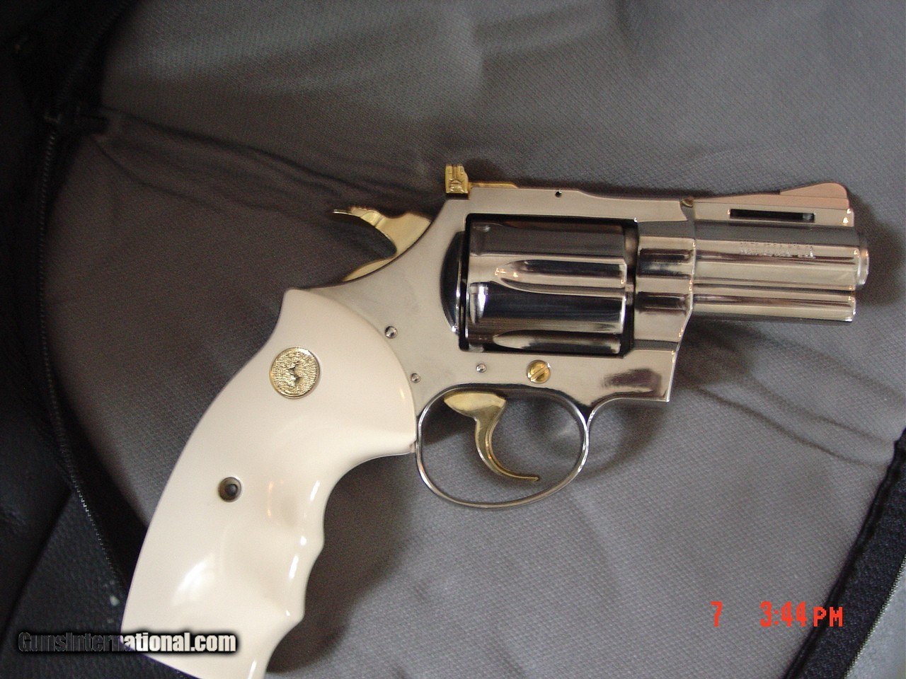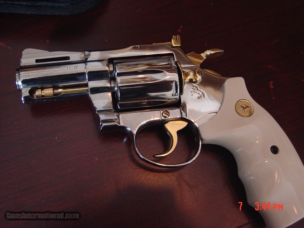 Description: Here is a gorgeous Colt Diamondback made in 1969 & has the very rare 2 1/2" heavy vented rib barrel,newly refinished in bright mirror nickel finish with 24k gold plated hammer,trigger,cylinder release,ejector rod,a screw,& the rear adjustable site, & has bonded ivory griped with finger grooves, & gold Colt medallions,shoots 6 38 special rounds,& action is as smooth as butter.it never looked this good 51 years ago. comes with a soft zipper case. serial # D29521. a lot of gun for only $2995. firm +$35. shipping to your FFL dealer only. I am an FFL dealer.located in the Clearwater,Florida area. I accept bank wire transfers,which is the safest & fastest way. no credit cards or PayPal-sorry. will consider layaway. SOLD Curio/Relic: Yes |