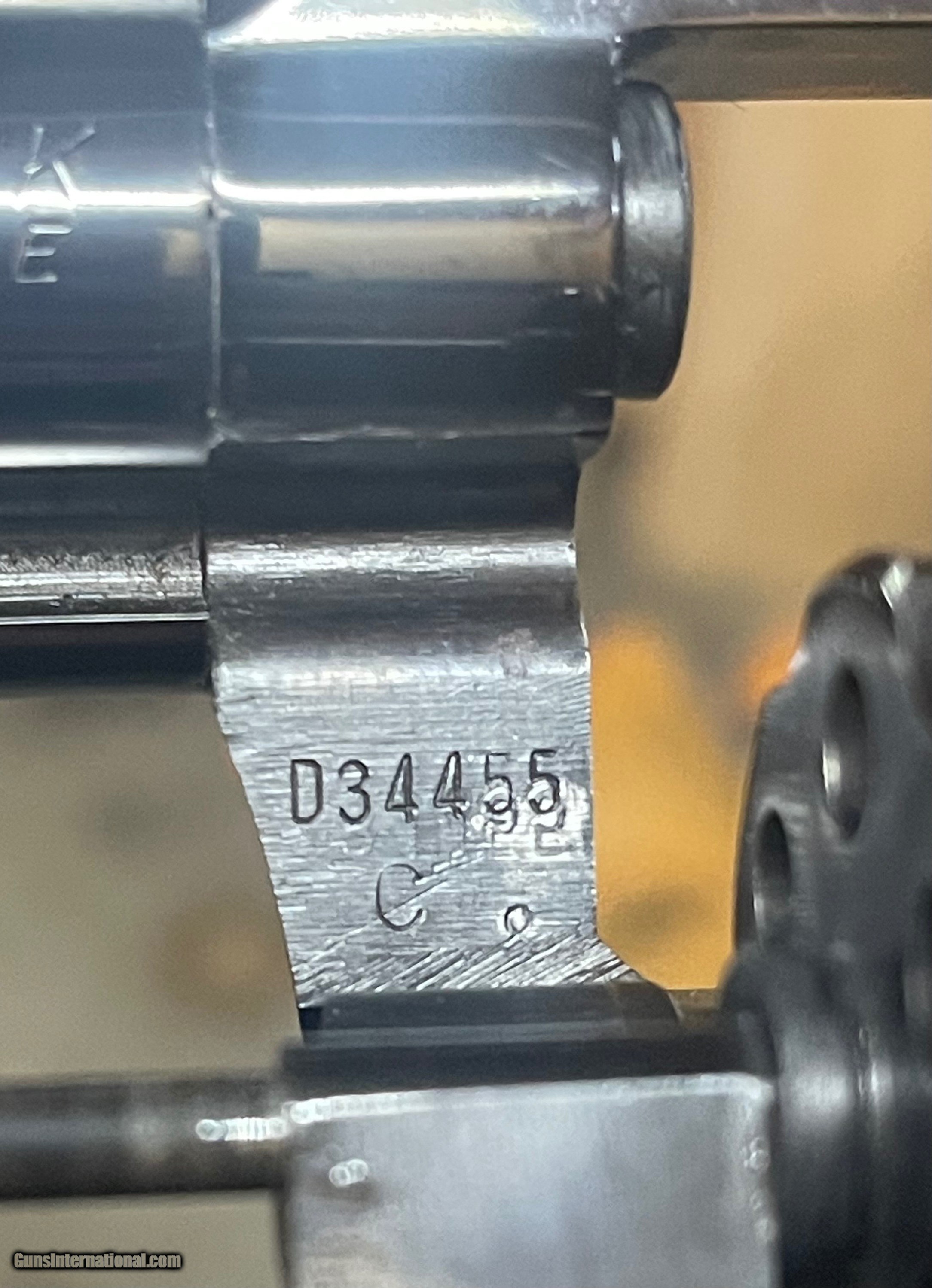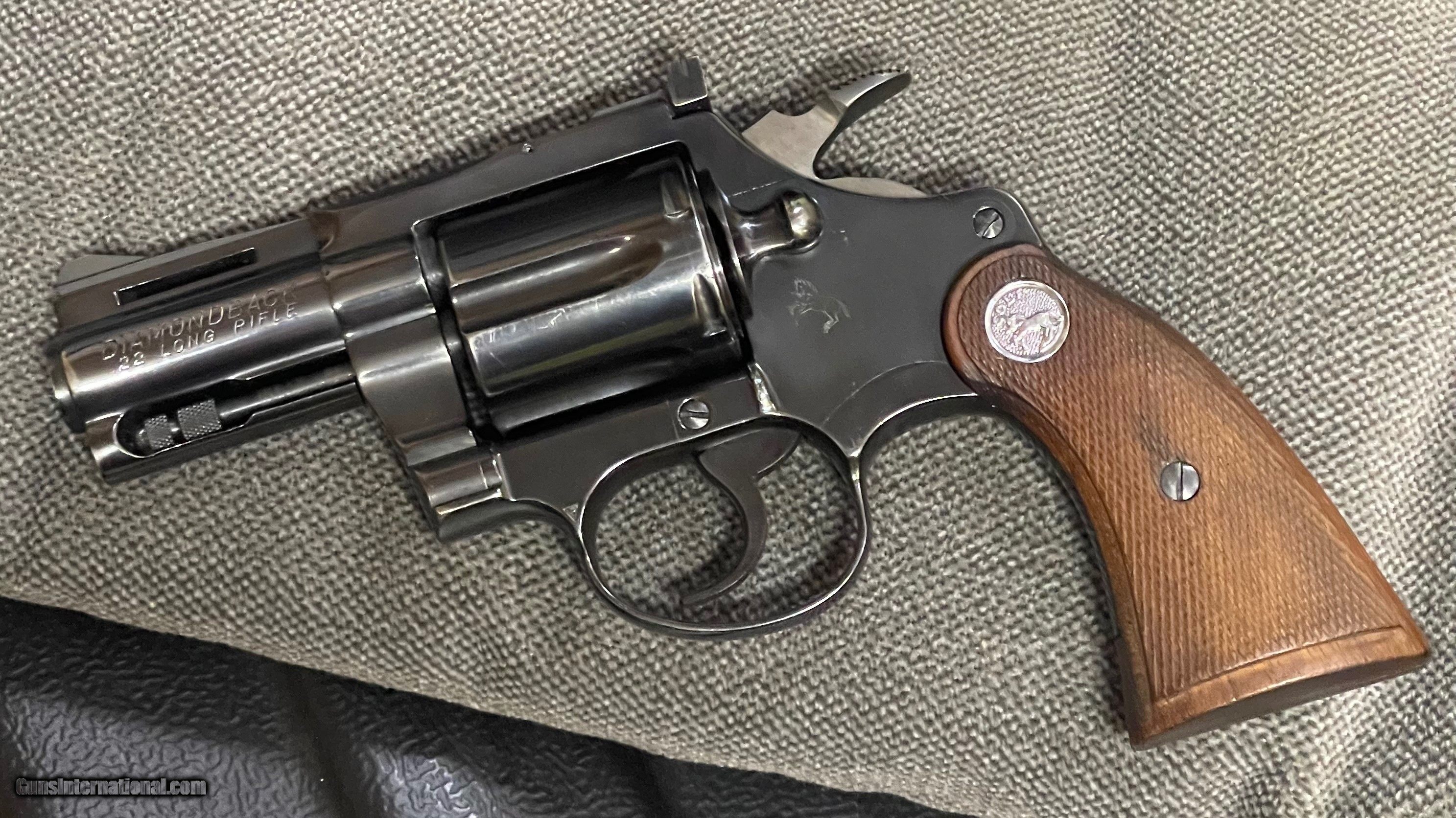 Description: This is the holy grail for Diamondback collectors! This is the super elusive .22 diamondback. 2 inch barrel, blue finish, target sights, and wood grips. Light signs of wear around the cylinder removal screw, a few pecks on each side of the frame, and a little wear on the end of the barrel. However, presents very well. Beautiful and rare gun! No box. Please email with questions. Shipping and insurance included. Cards add 3% Manufacturer: Colt Model: Diamondback Barrel Length: 2 inch Condition: Used Metal Condition: Very good Wood Condition: Excellent Bore Condition: Excellent Finish: Blue Sights: Target Item Location: 37075 Grips: Wood Price: $4,000.00 Contact Seller |