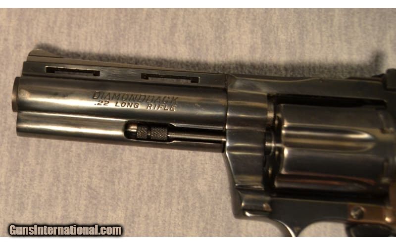 Description: For your consideration is a Colt Diamondback revolver chambered in .22 long rifle. This popular firearm, chambered in .22 long rifle makes it a great gun for the novice shooter. Overall, the gun is in very good condition and would be an excellent addition to any firearm collection. .22 Long Rifle SOLD Chambers: .22 Long Rifle Metal Condition: Very good. No scratches. Some holster wear on front of barrel on both sides. Wood Condition: Excellent Bore Condition: Good. Shows some use. Barrels: 4" rifled barrel Triggers: factory Butt Pad: Checkered wood grips with Colt emblem Weight: 2.1 lbs Sights: Serrated front ramp with U-notch adjustable rear Item Location: Cheektowaga, NY |