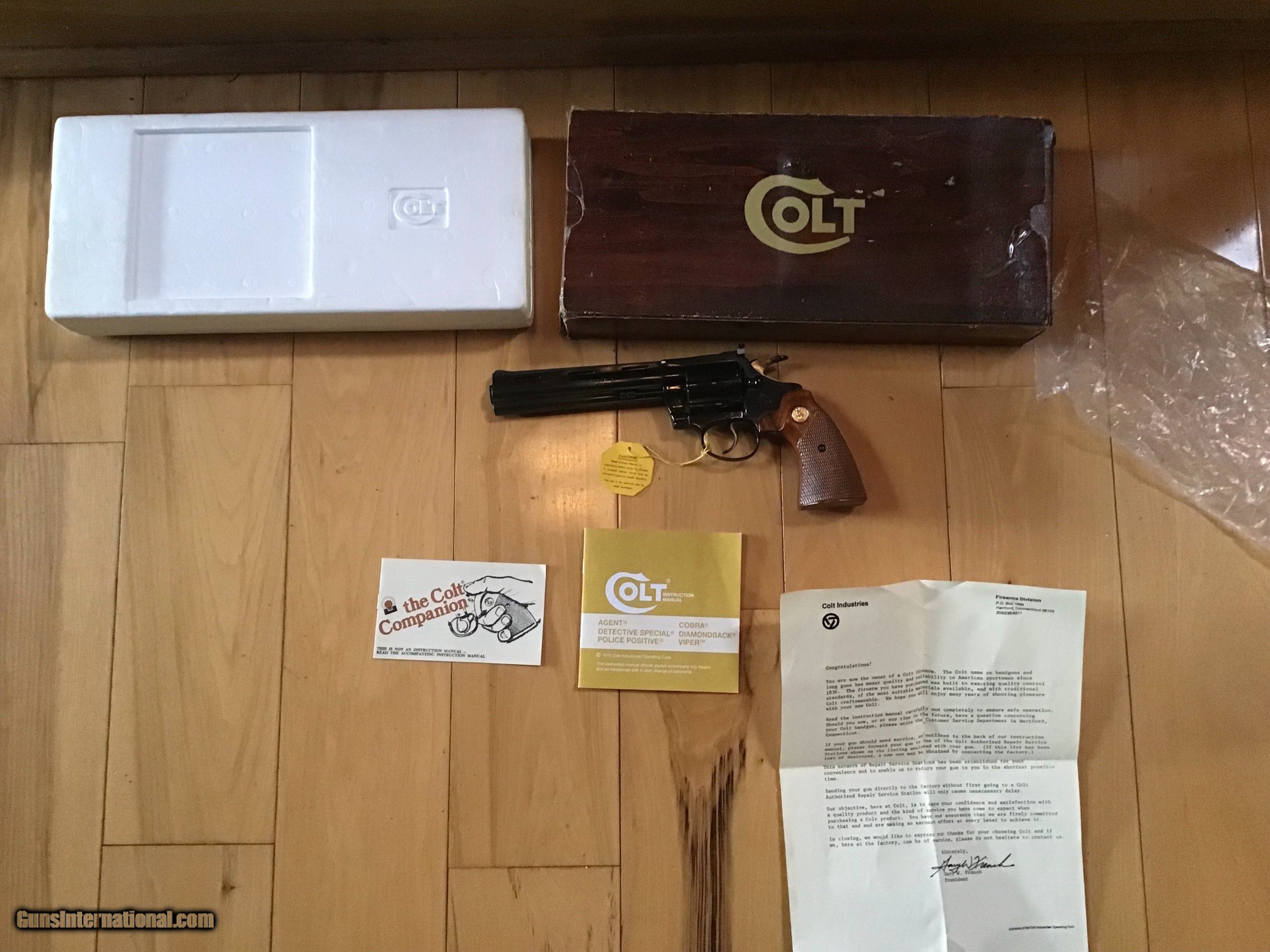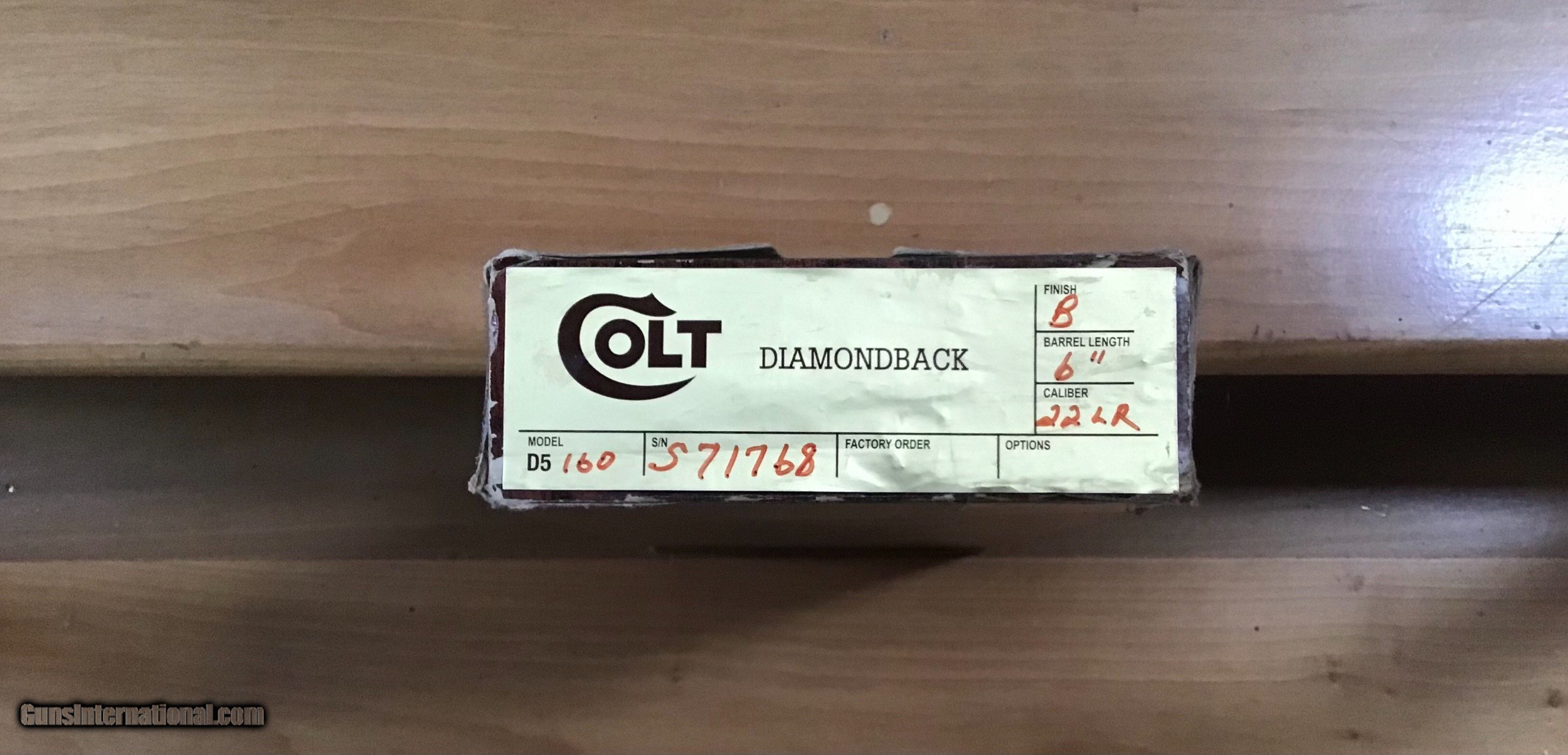 COLT DIAMONDBACK 22 LR., 6” BLUE, MFG. 1981, NEW UNFIRED, 100% COND. IN THE BOX